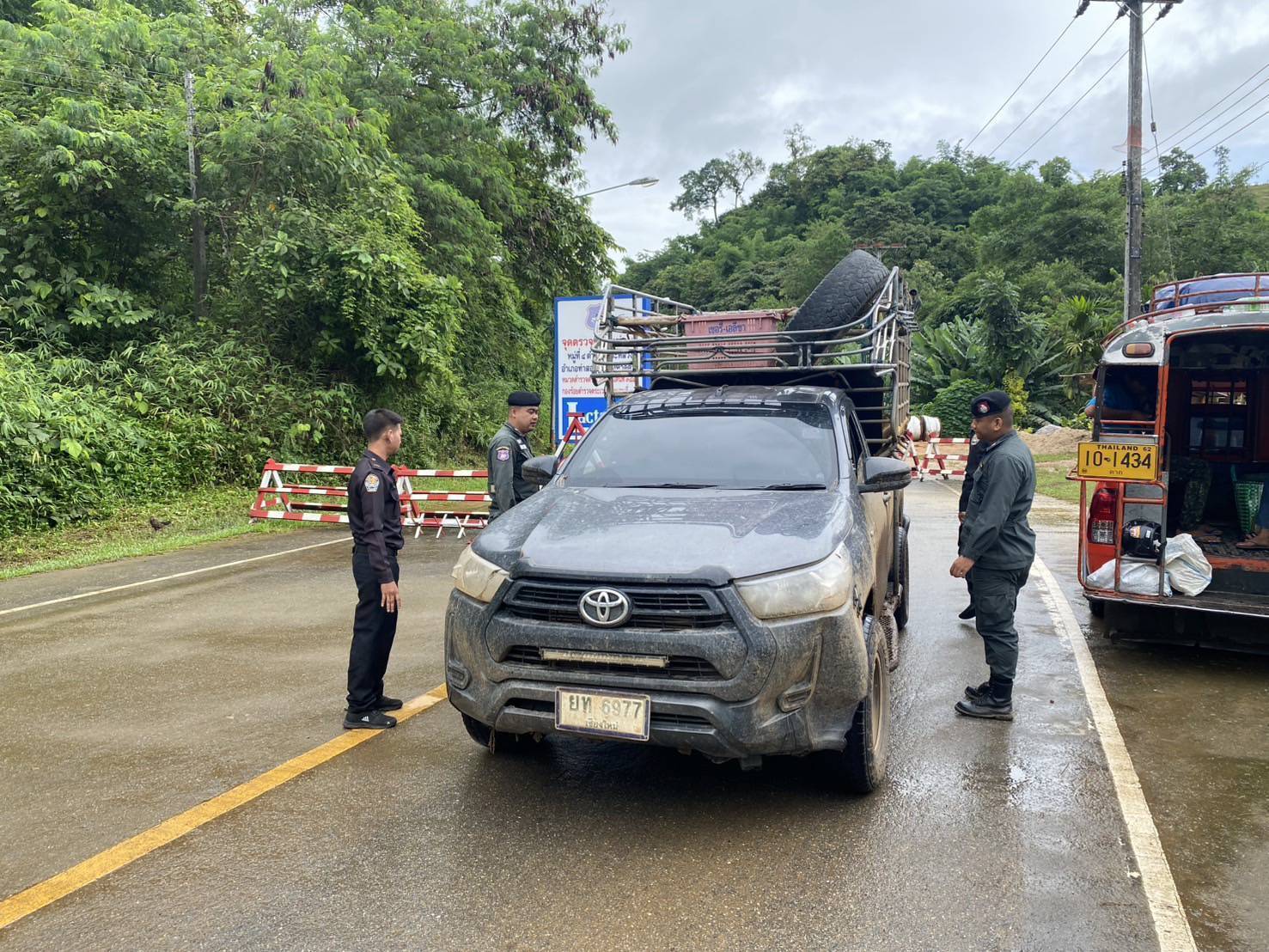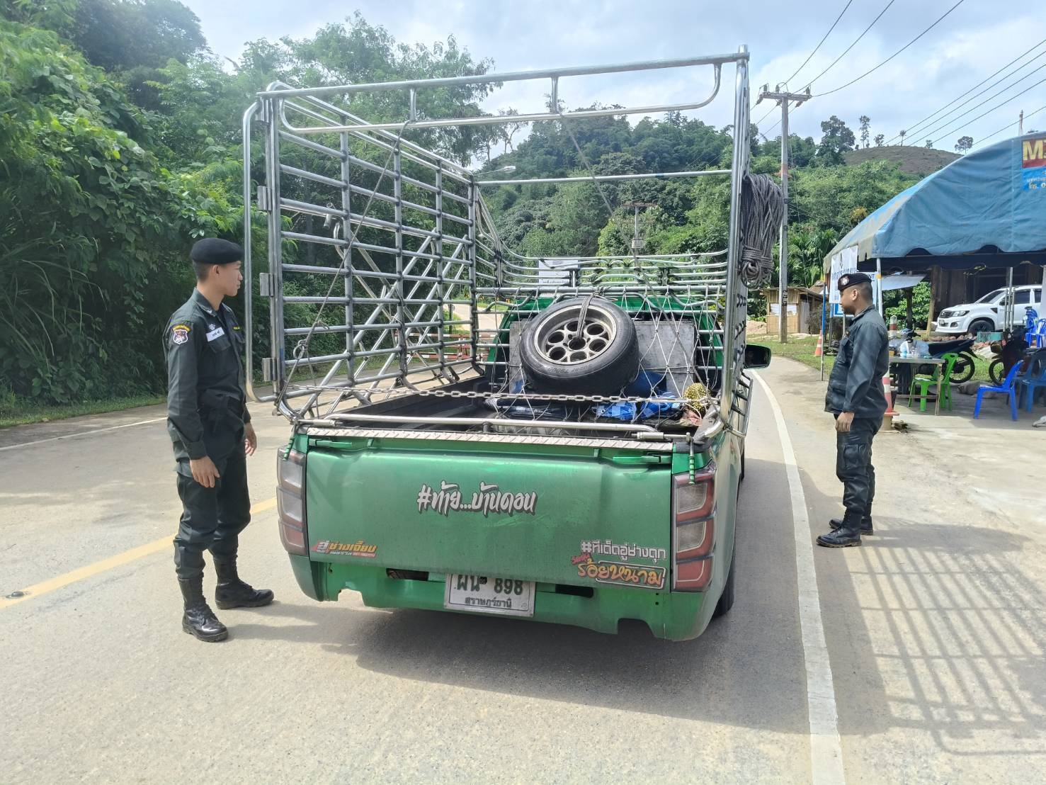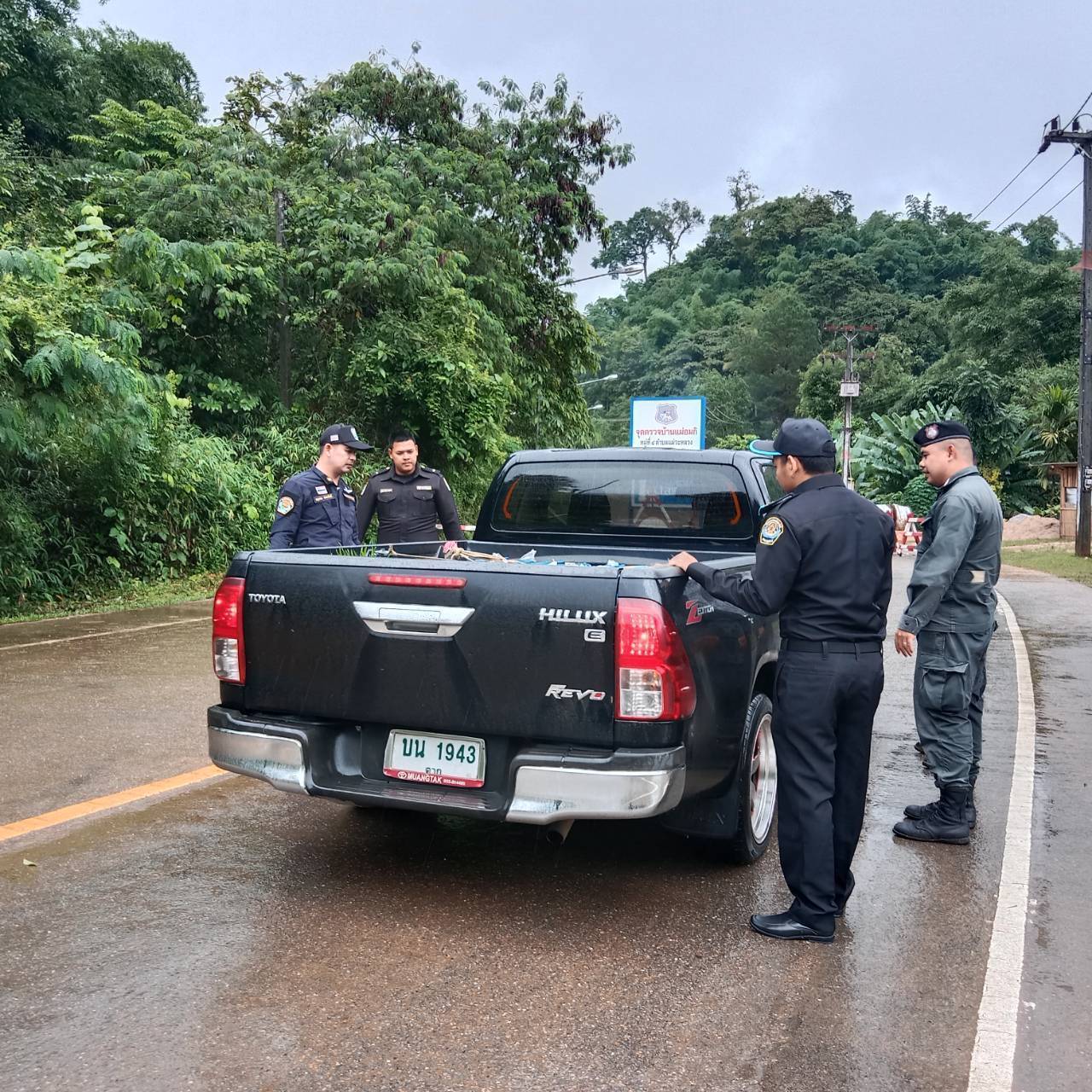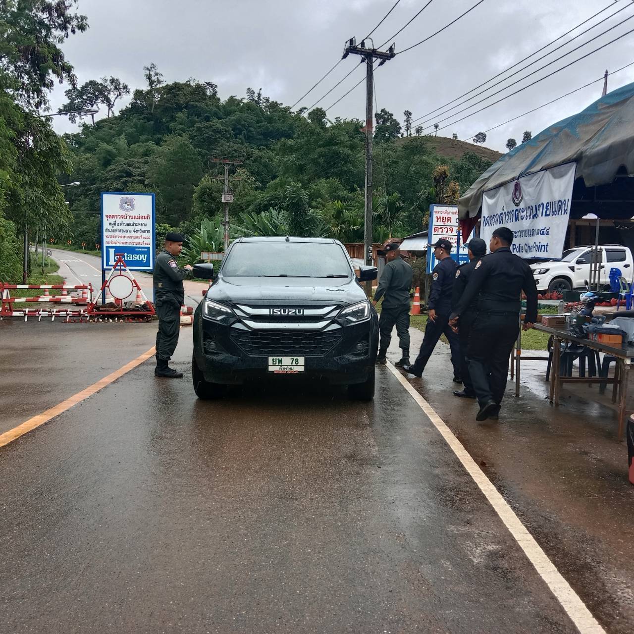 เมื่อ 020800 - 030759 ก.ค.68 ชฝต.บ้านแม่อมกิจัด กพ 3 นาย ร่วมกับ เจ้าหน้าที่สารวัตรปศุสัตว์ จ.เพชรบุรี ทำการตั้งจุดตรวจ-จุดสกัด บนทางหลวงหมายเลข 105 (แม่สอด-แม่สะเรียง) บริเวณหน้าจุดตรวจบ้านแม่อมกิ ม.4 ต.แม่วะหลวง อ.ท่าสองยาง จ.ตาก เพื่อป้องกันปราบปรามอาชญากรรมสำคัญ การลักลอบลำเลียงยาเสพติด สารตั้งต้นและเคมีภัณฑ์,การปราบปรามคนร้ายข้ามชาติและเข้าเมืองโดยผิดกฎหมาย ป้องกันและควบคุมการลักลอบเคลื่อนย้ายสัตว์และซากสัตว์ ประชาสัมพันธ์ให้ประชาชนได้รับทราบ