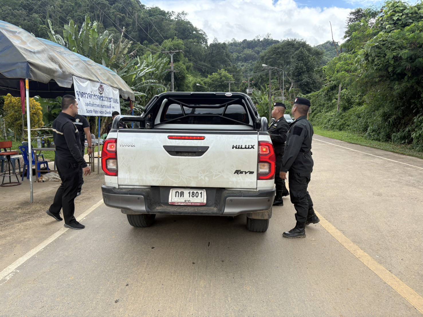 เมื่อ 040800-050759 ก.ค.68 ชฝต.บ้านแม่อมกิจัด กพ 3 นาย ร่วมกับ เจ้าหน้าที่สารวัตรปศุสัตว์ จ.เพชรบุรี ทำการตั้งจุดตรวจ-จุดสกัด บนทางหลวงหมายเลข 105 (แม่สอด-แม่สะเรียง) บริเวณหน้าจุดตรวจบ้านแม่อมกิ ม.4 ต.แม่วะหลวง อ.ท่าสองยาง จ.ตาก เพื่อป้องกันปราบปรามอาชญากรรมสำคัญ การลักลอบลำเลียงยาเสพติด สารตั้งต้นและเคมีภัณฑ์,การปราบปรามคนร้ายข้ามชาติและเข้าเมืองโดยผิดกฎหมาย ป้องกันและควบคุมการลักลอบเคลื่อนย้ายสัตว์และซากสัตว์ ประชาสัมพันธ์ให้ประชาชนได้รับทราบ