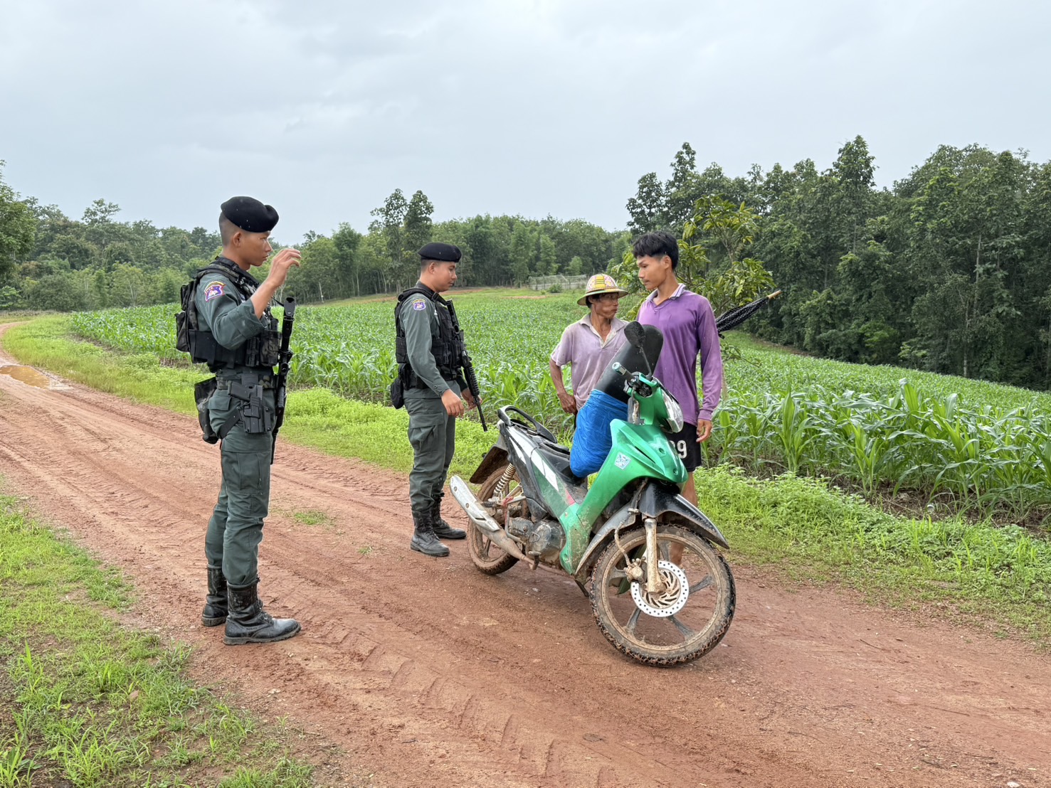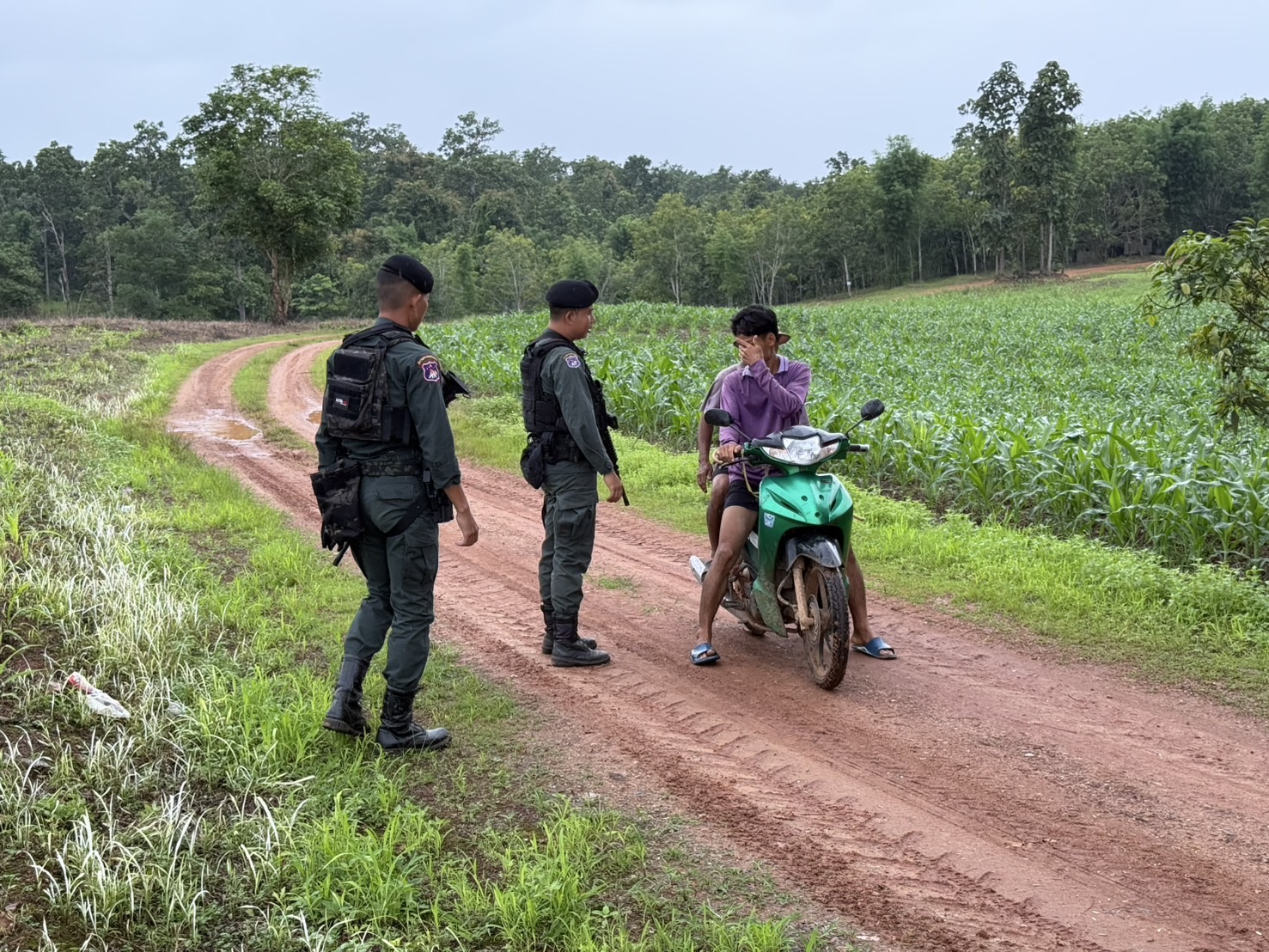 เมื่อ 071400 - 071550 ก.ค.68 มว.ตชด.3442 ชป.ตชด.บ้านแม่หละไทย จัดให้ ส.ต.อ.ธีรพงษ์  ดงดินดำ  พร้อมพวก รวม 4 นาย ออก ลว.หาข่าวพื้นที่แนวชายแดนเพื่อป้องกันการลักลอบนำสินค้าการเกษตร เข้ามาในราชอาณาจักร การลักลอบโจรกรรมรถยนต์-รถจักรยานยนต์ข้ามฝั่ง การกระทำผิดกฎหมายตาม พ.ร.บ.ที่มีโทษทางอาญา การลักลอบหลบหนีเข้าเมืองโดยผิดกฏหมาย ตรวจสอบเครือข่ายแก๊งคอลเซ็นเตอร์ และป้องกันการลักลอบลำเลียงยาเสพติด สารตั้งต้น และเคมีภัณฑ์ บริเวณช่องทางท่าข้ามตามธรรมชาติ พื้นที่บ้านแม่หละไทย หมู่ 1 ต.แม่หละ อ.ท่าสองยาง จ.ตาก