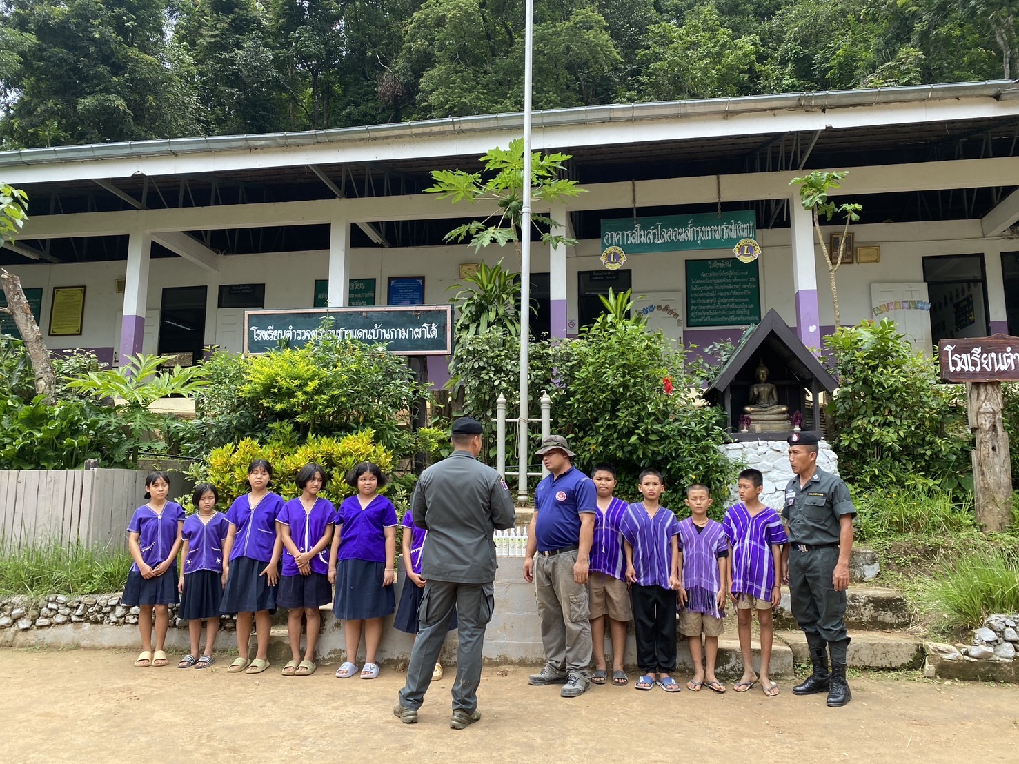 - เวลา 11.30-12.10 น. เดินทางตรวจเยี่ยม รร.ตชด.บ้านกามาผาโด้ ม.5 ต.แม่หละ อ.ท่าสองยาง จ.ตาก พบ ด.ต.บุญมี ครองเพชรแสน ครูใหญ่ พร้อมคณะครู ให้การต้อนรับ โดยได้ให้คำแนะนำและแนวทางการปฏิบัติ ดังนี้