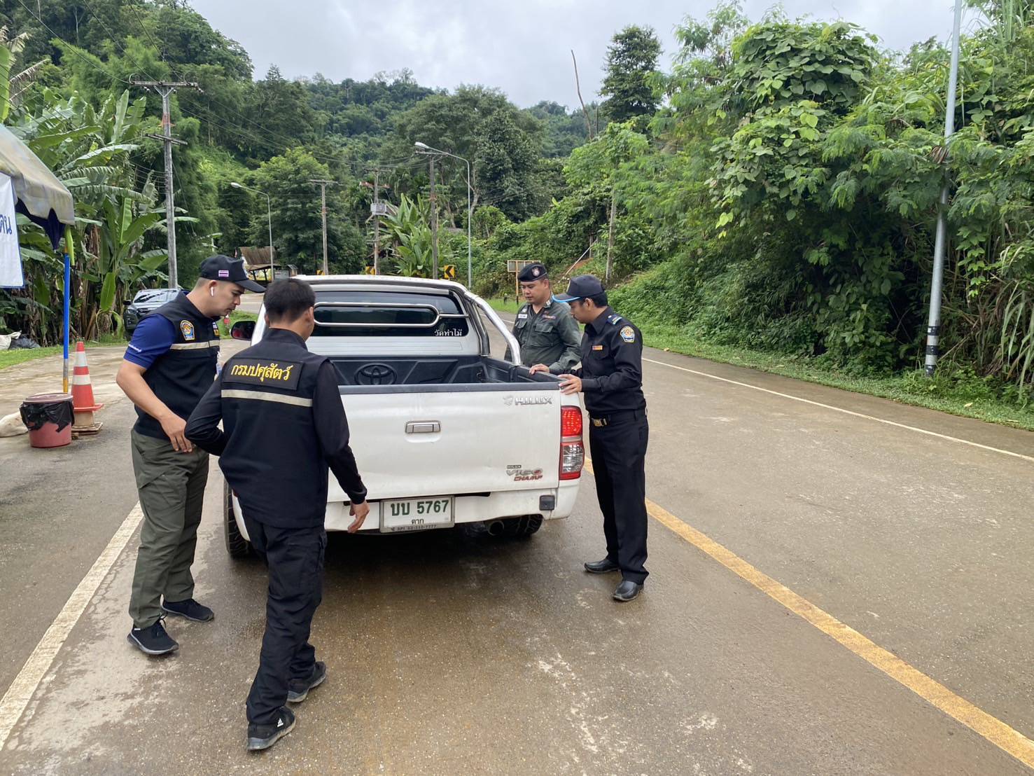 เมื่อ 180800-190759 ก.ค.68 ชฝต.บ้านแม่อมกิจัด กพ 3 นาย ร่วมกับ เจ้าหน้าที่สารวัตรปศุสัตว์ จ.เพชรบุรี ทำการตั้งจุดตรวจ-จุดสกัด บนทางหลวงหมายเลข 105 (แม่สอด-แม่สะเรียง) บริเวณหน้าจุดตรวจบ้านแม่อมกิ ม.4 ต.แม่วะหลวง อ.ท่าสองยาง จ.ตาก เพื่อป้องกันปราบปรามอาชญากรรมสำคัญ การลักลอบลำเลียงยาเสพติด สารตั้งต้นและเคมีภัณฑ์,การปราบปรามคนร้ายข้ามชาติและเข้าเมืองโดยผิดกฎหมาย ป้องกันและควบคุมการลักลอบเคลื่อนย้ายสัตว์และซากสัตว์ ประชาสัมพันธ์ให้ประชาชนได้รับทราบ