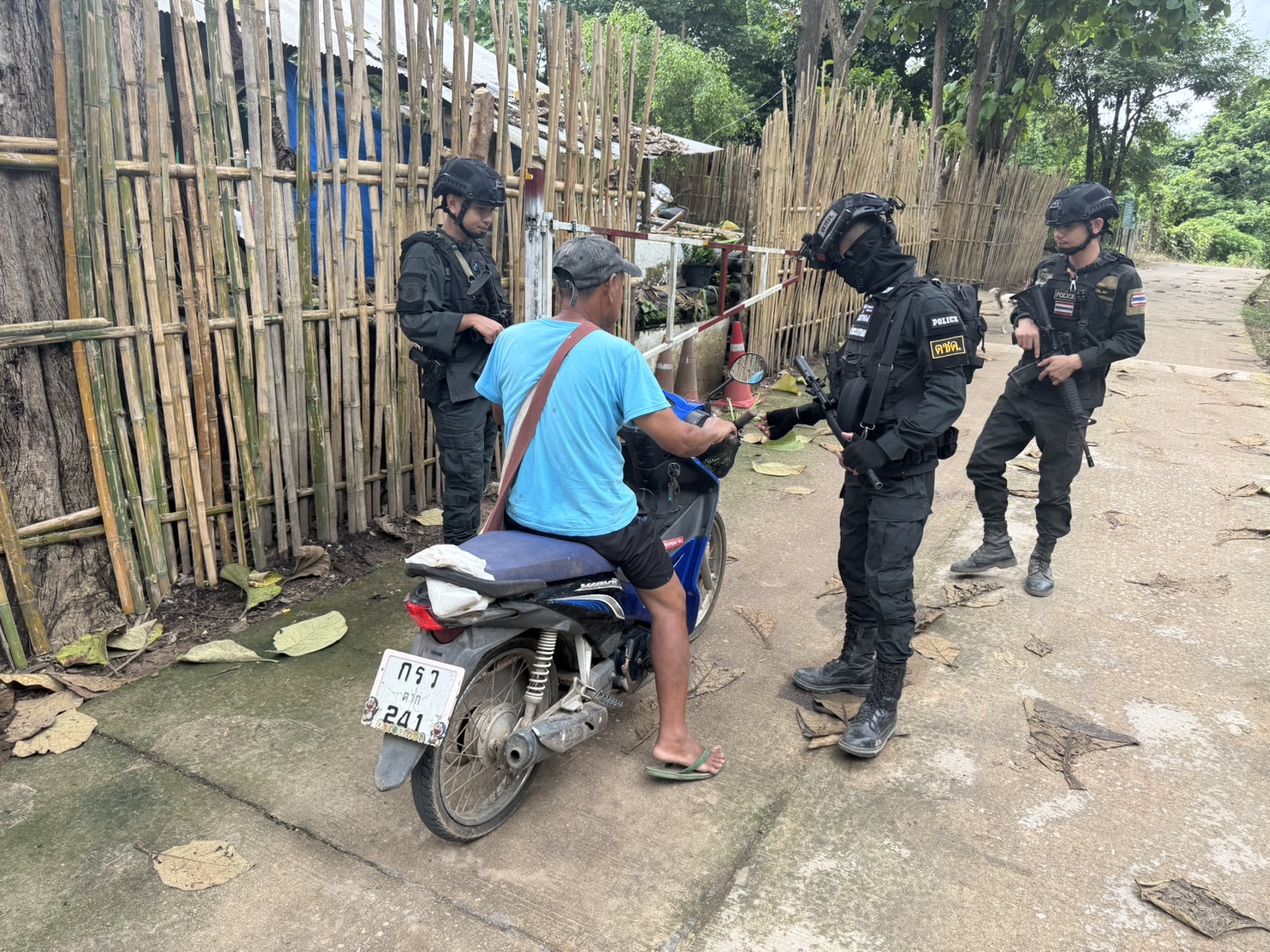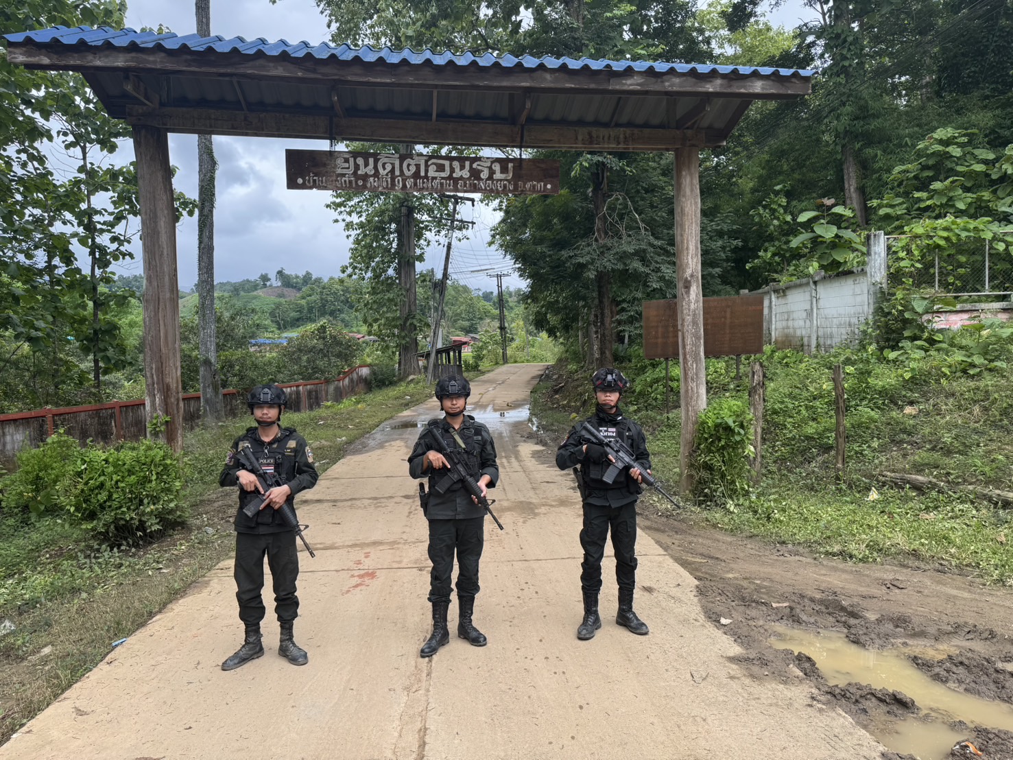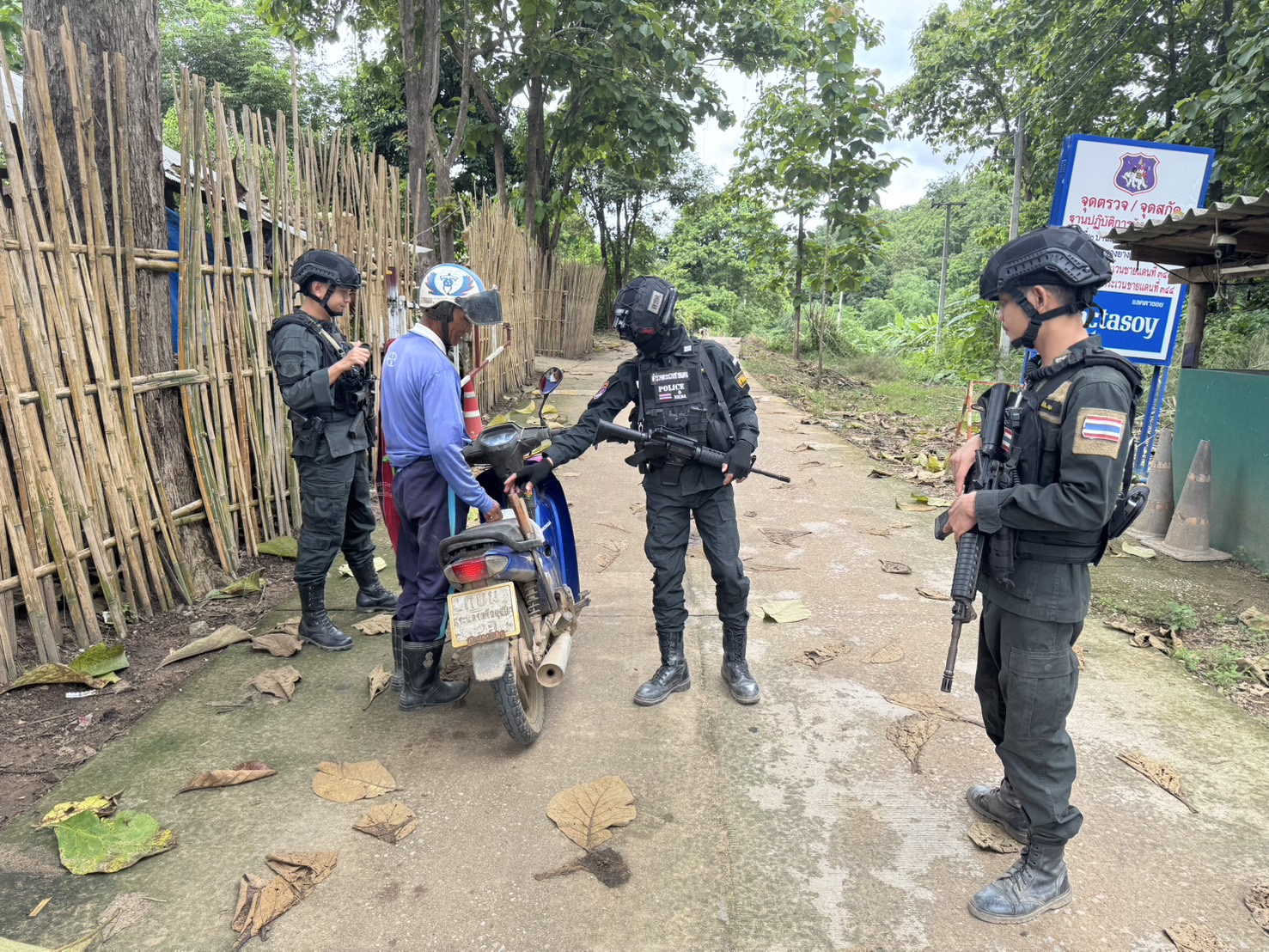 เมื่อ 191600 ก.ค. 68 มว.ตชด.3443 จัดให้ จ.ส.ต.ศิริศักดิ์ เสียงสนั่น พร้อม กพ. รวม 4 นาย ออกตรวจใน พท.ฯ ม.9 บ้านทุ่งถ้ำ ม.1 ต.แม่ต้าน อ.ท่าสองยาง จว.ตาก ตามเส้นทาง/ช่องทาง/ท่าข้าม พร้อมตั้งจุดตรวจจุดสะกัดบริเวณหน้าฐานปฏิบัติการห้วยปางยางหมู่ที่2 ต.แม่ต้านอ.ท่าสองยางจ.ตาก และ พท.สุ่มเสี่ยงก่ออาชญากรรม เพื่อ ตรวจสอบ /ป้องกัน /ป้องปราม การลักลอบนําเข้า - ส่งออก ของโค ,สุกร ,พืชผลทางการเกษตร ,แรงงานต่างด้าว ,เฝ้าระวังการรุกล้ำอธิปไตย ของ กกล. ต่างชาติ และการกระทำผิดตาม พรบ. ที่มีโทษทางอาญา ตรวจสอบเครือข่ายแก็งคอลเซ็นเตอร์ฯ เพื่อป้องกันการลักลอบเข้า/ออกราชอาณาจักรโดยผิดกฎหมาย การลักลอบขนน้ำมันเชื้อเพลิงออกนอกราชอาณาจักร ป้องกันการลักลอบลำเลียงยาเสพติด สารตั้งต้น และเคมีภัณฑ์