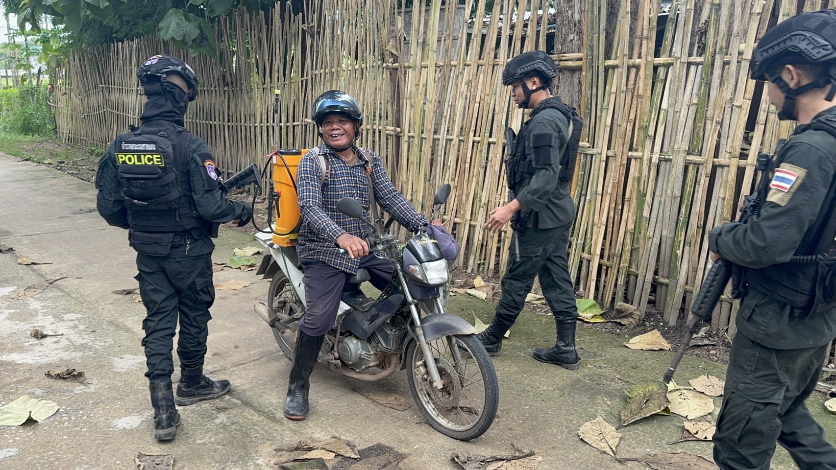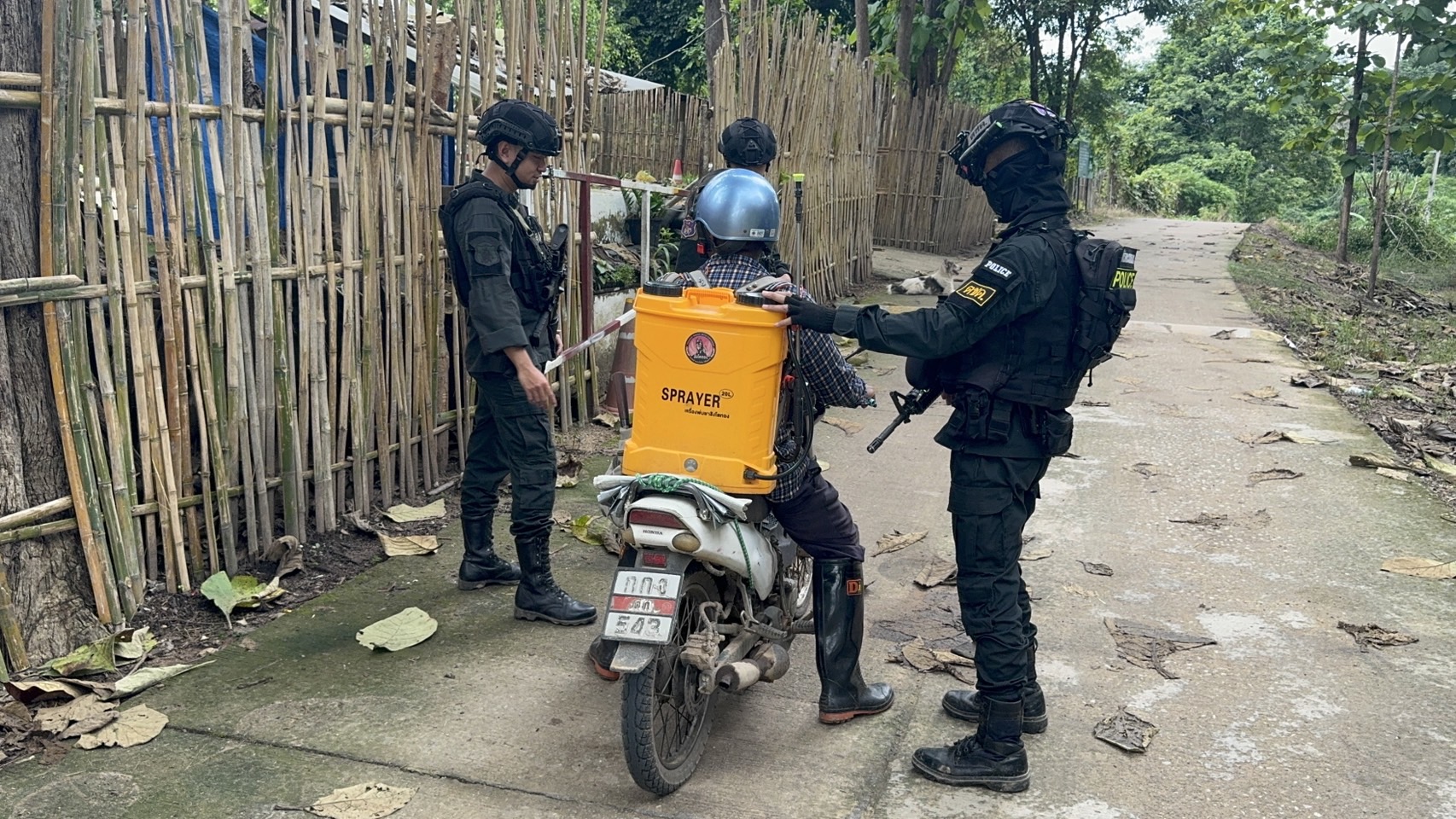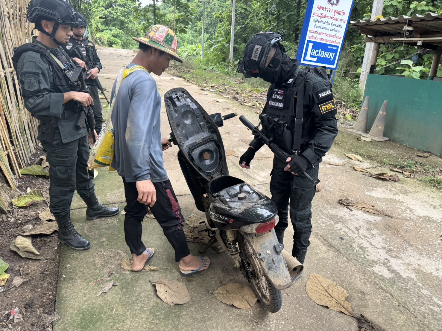 เมื่อ 191600 ก.ค. 68 มว.ตชด.3443 จัดให้ จ.ส.ต.ศิริศักดิ์ เสียงสนั่น พร้อม กพ. รวม 4 นาย ออกตรวจใน พท.ฯ ม.9 บ้านทุ่งถ้ำ ม.1 ต.แม่ต้าน อ.ท่าสองยาง จว.ตาก ตามเส้นทาง/ช่องทาง/ท่าข้าม พร้อมตั้งจุดตรวจจุดสะกัดบริเวณหน้าฐานปฏิบัติการห้วยปางยางหมู่ที่2 ต.แม่ต้านอ.ท่าสองยางจ.ตาก และ พท.สุ่มเสี่ยงก่ออาชญากรรม เพื่อ ตรวจสอบ /ป้องกัน /ป้องปราม การลักลอบนําเข้า - ส่งออก ของโค ,สุกร ,พืชผลทางการเกษตร ,แรงงานต่างด้าว ,เฝ้าระวังการรุกล้ำอธิปไตย ของ กกล. ต่างชาติ และการกระทำผิดตาม พรบ. ที่มีโทษทางอาญา ตรวจสอบเครือข่ายแก็งคอลเซ็นเตอร์ฯ เพื่อป้องกันการลักลอบเข้า/ออกราชอาณาจักรโดยผิดกฎหมาย การลักลอบขนน้ำมันเชื้อเพลิงออกนอกราชอาณาจักร ป้องกันการลักลอบลำเลียงยาเสพติด สารตั้งต้น และเคมีภัณฑ์