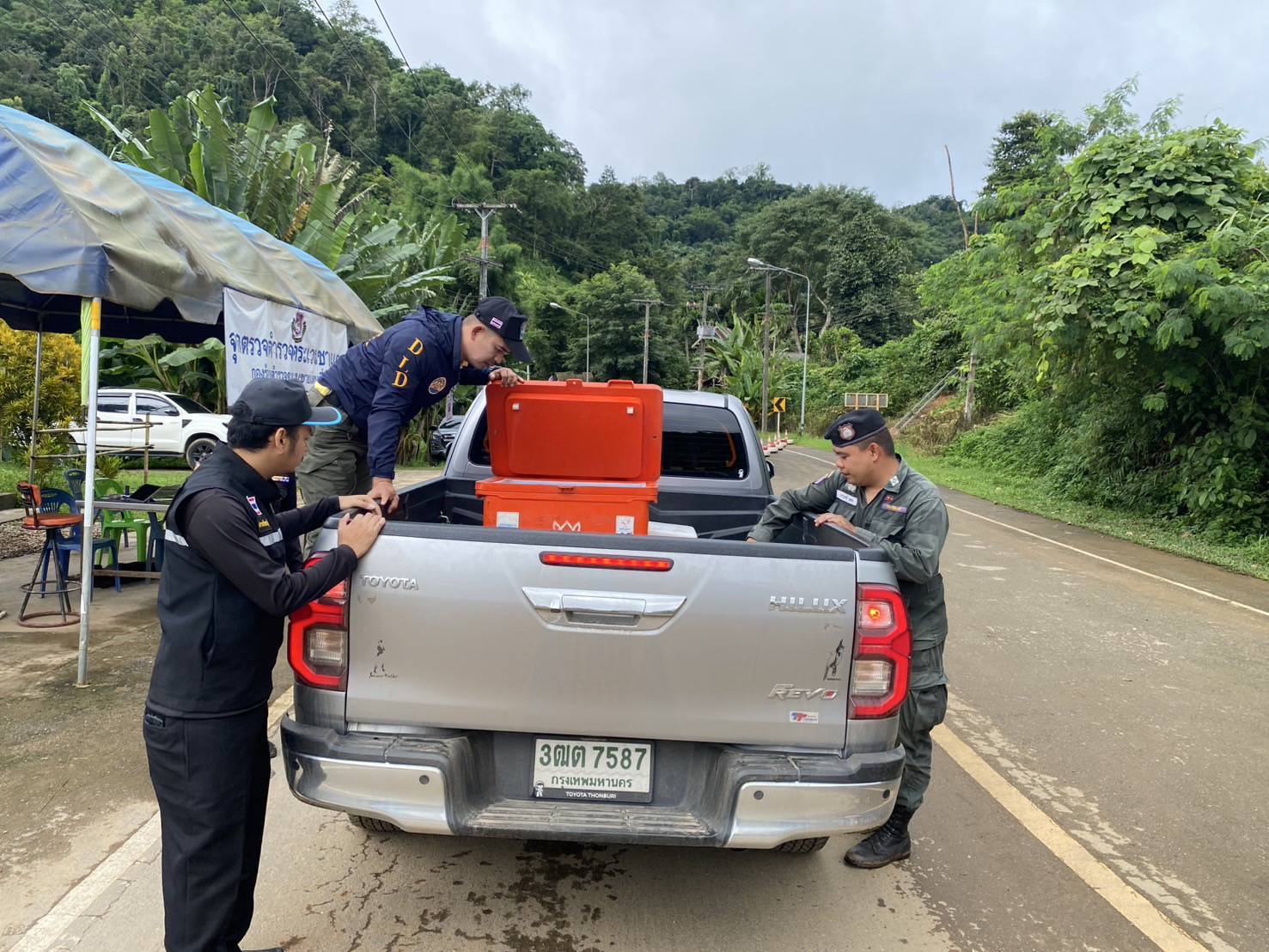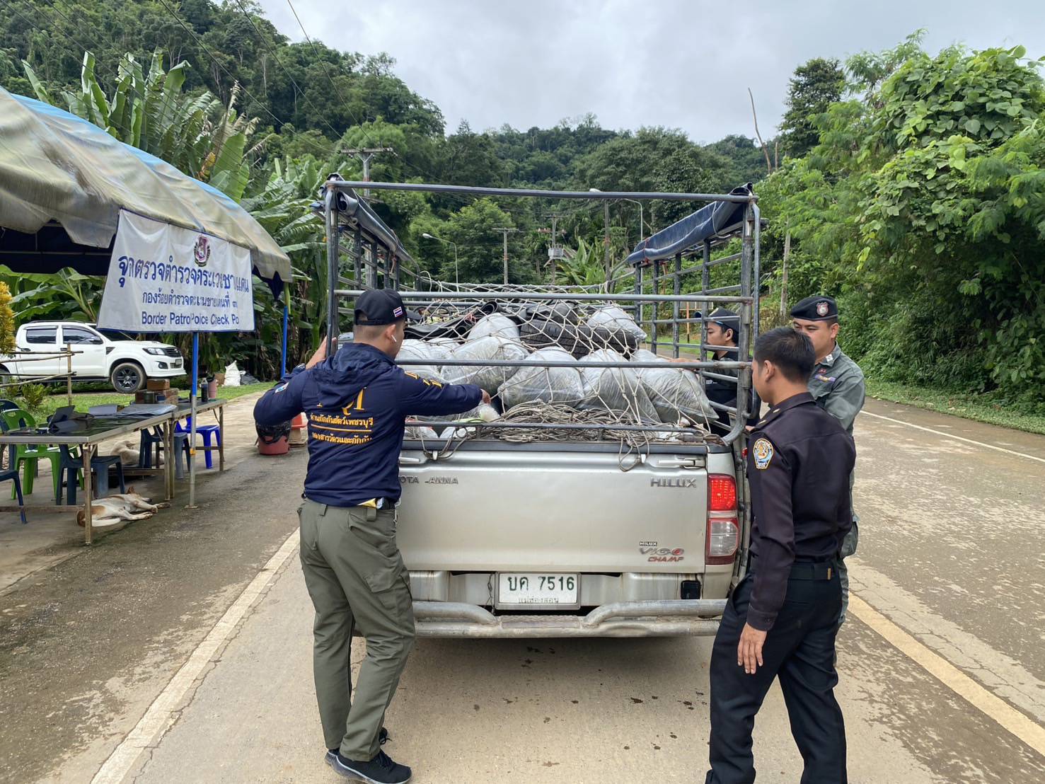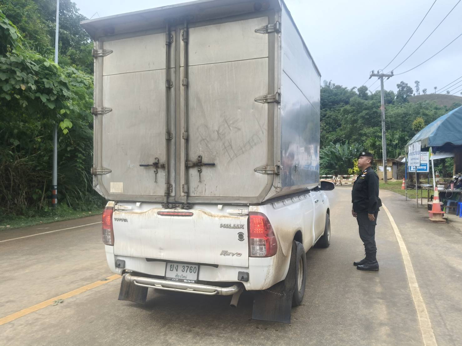 เมื่อ 190800-200759 ก.ค.68 ชฝต.บ้านแม่อมกิจัด กพ 3 นาย ร่วมกับ เจ้าหน้าที่สารวัตรปศุสัตว์ จ.เพชรบุรี ทำการตั้งจุดตรวจ-จุดสกัด บนทางหลวงหมายเลข 105 (แม่สอด-แม่สะเรียง) บริเวณหน้าจุดตรวจบ้านแม่อมกิ ม.4 ต.แม่วะหลวง อ.ท่าสองยาง จ.ตาก เพื่อป้องกันปราบปรามอาชญากรรมสำคัญ การลักลอบลำเลียงยาเสพติด สารตั้งต้นและเคมีภัณฑ์,การปราบปรามคนร้ายข้ามชาติและเข้าเมืองโดยผิดกฎหมาย ป้องกันและควบคุมการลักลอบเคลื่อนย้ายสัตว์และซากสัตว์ ประชาสัมพันธ์ให้ประชาชนได้รับทราบ