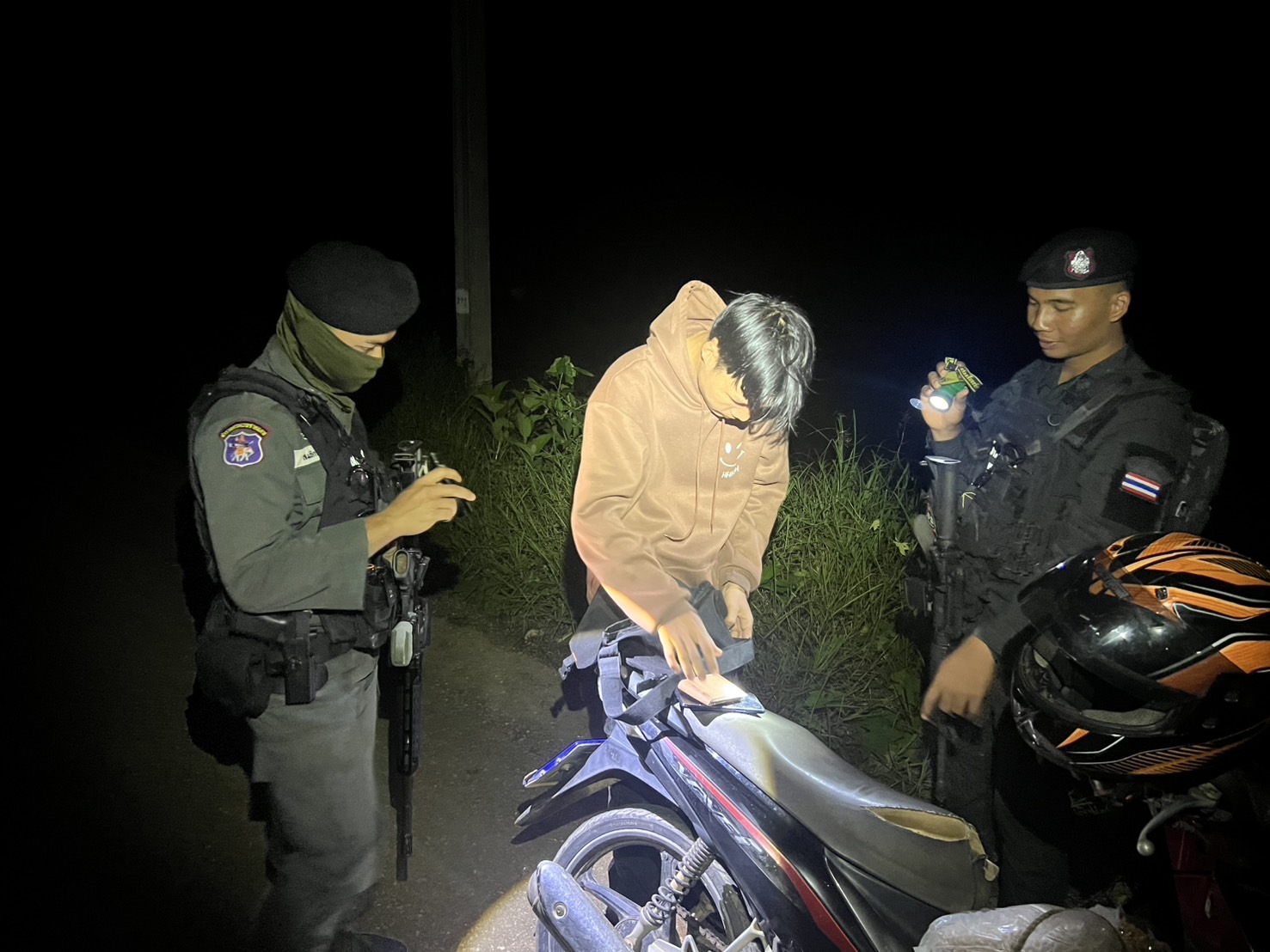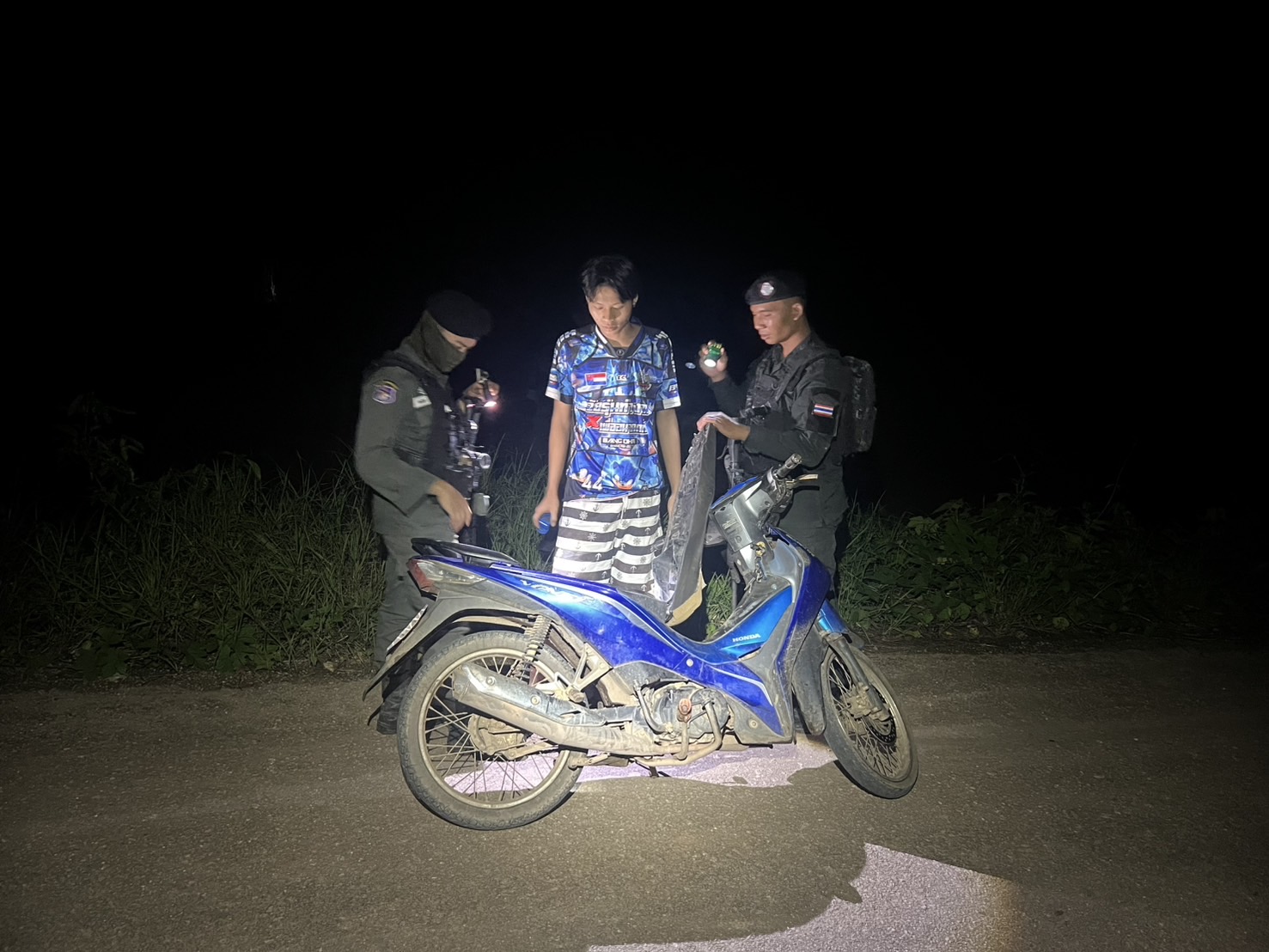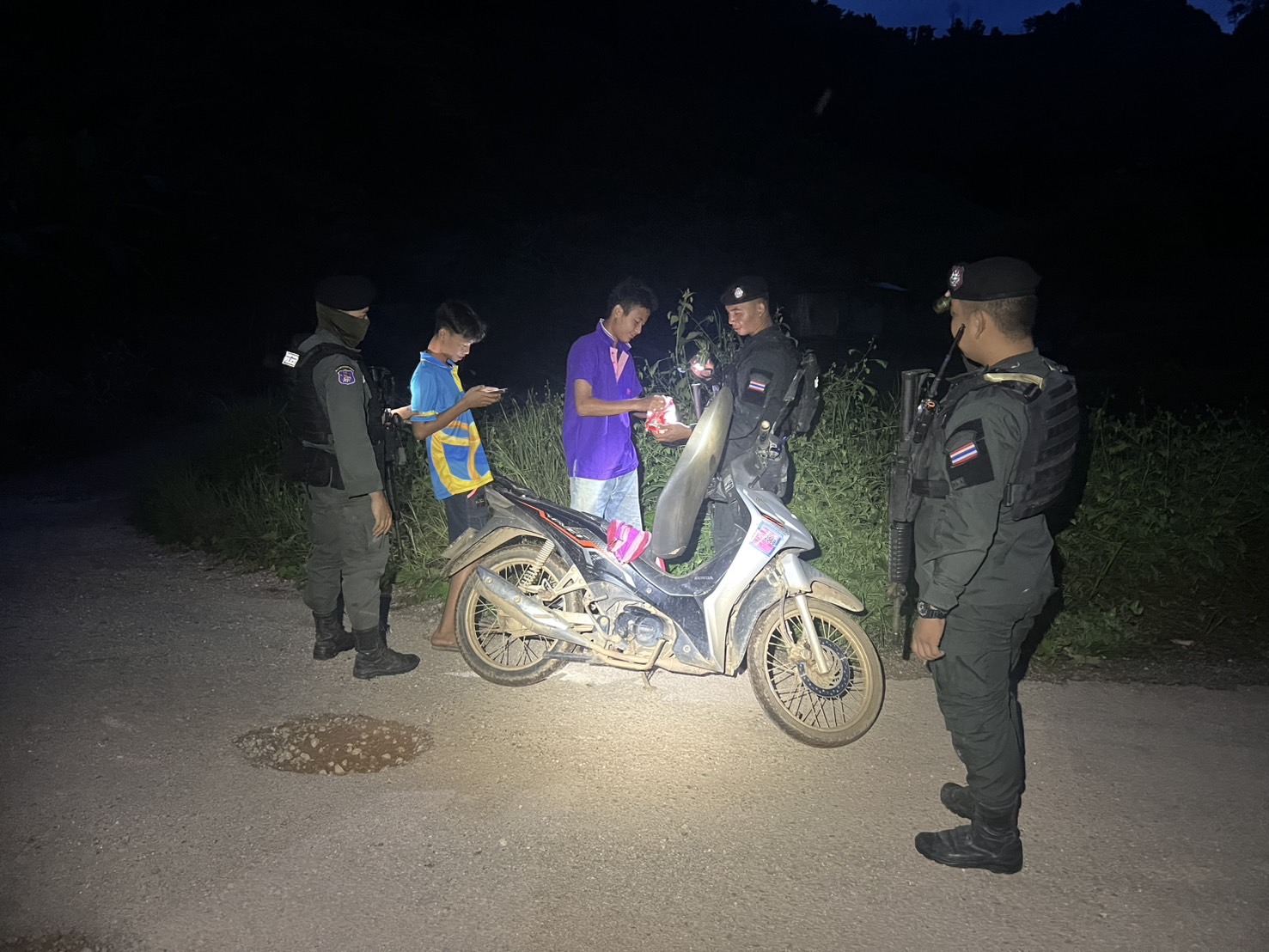 เมื่อ 201830 ก.ค.68 มว.ตชด.3444 จัด ให้ ส.ต.ท.สมจิตร ถวิลเมฆา พร้อม กพ. ใน มว.ฯ รวม 4 นาย ตั้งจุดตรวจ/จุดสกัดในพื้นที่เส้นทางรอง พื้นที่สุ่มเสี่ยงล่อแหลมที่อาจเกิดการลักลอบหลบหนีเข้าเมืองโดยผิดกฎหมายของแรงงานต่างด้าว การกระทำผิดกฎหมายตาม พ.ร.บ.ที่มีโทษทางอาญา ตรวจสอบป้องกันควบคุมการลักลอบเคลื่อนย้ายสัตว์ ซากสัตว์ ป้องกันการลักลอบลำเลียงยาเสพติด สารตั้งต้น และ เคมีภัณฑ์ บริเวณบ้านเรกาติ หมู่๕ ต.แม่อุสุ อ.ท่าสองยาง จ.ตาก