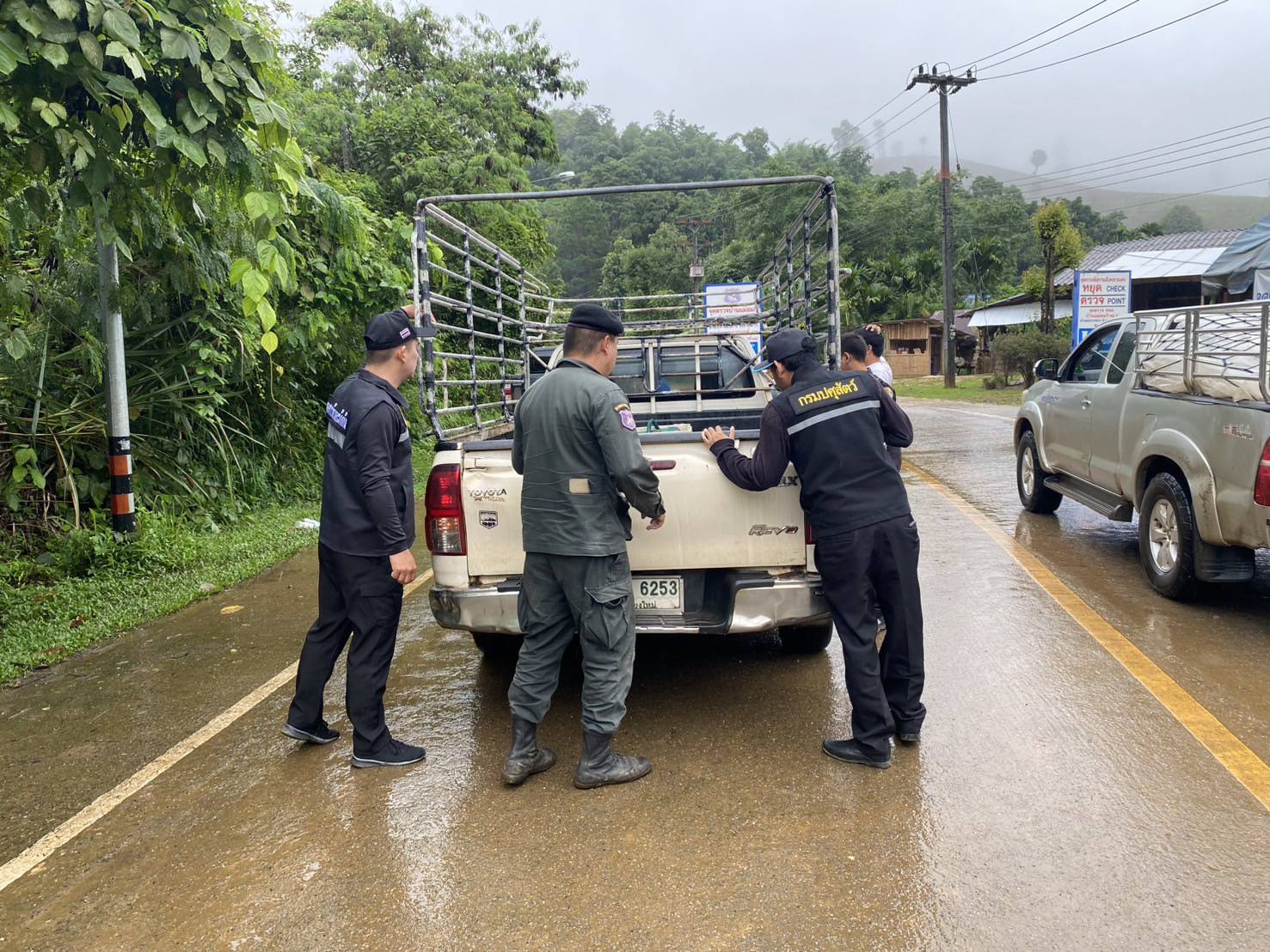 เมื่อ 220800 - 230759 ก.ค.68 ชฝต.บ้านแม่อมกิ​จัด กพ.3 นาย ร่วมกับ เจ้าหน้าที่สารวัตรปศุสัตว์ จ.เพชรบุรี ทำการตั้งจุดตรวจ-จุดสกัด บนทางหลวงหมายเลข 105 (แม่สอด-แม่สะเรียง) บริเวณหน้าจุดตรวจบ้านแม่อมกิ ม.4 ต.แม่วะหลวง อ.ท่าสองยาง จ.ตาก เพื่อป้องกันปราบปรามอาชญากรรมสำคัญ การลักลอบลำเลียงยาเสพติด สารตั้งต้นและเคมีภัณฑ์,การปราบปรามคนร้ายข้ามชาติและเข้าเมืองโดยผิดกฎหมาย ป้องกันและควบคุมการลักลอบเคลื่อนย้ายสัตว์และซากสัตว์ ประชาสัมพันธ์ให้ประชาชนได้รับทราบ