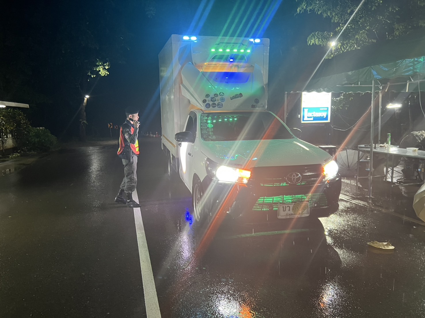 เมื่อ 220800 - 230759 ก.ค.68 มว.ตชด.3444 จัด กพ.1 ชป.(ฐาน ปบ.การบ้านวะแขระโกร) ตั้งจุดตรวจ/จุดสกัด เพื่อป้องกันปราบปรามอาชญากรรมสำคัญ การลักลอบลำเลียงยาเสพติด สารตั้งต้นและเคมีภัณฑ์,การปราบปรามคนร้ายข้ามชาติ เข้าเมืองโดยผิดกฎหมาย และประชาสัมพันธ์ให้ประชาชนได้รับทราบ บริเวณหน้า ฐาน ปบ.การบ้านวะแขระโกร หมู่ 6 ต.แม่อุสุ อ.ท่าสองยาง จ.ตาก
