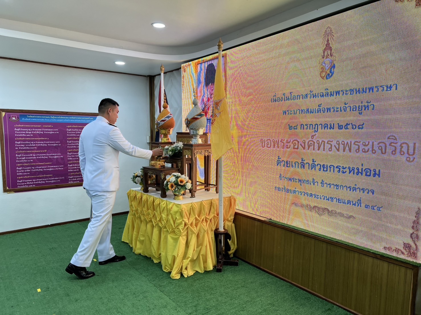 เมื่อ 241300 มิ.ย.68  พ.ต.ท.ฐัตพล  สายโรจน์  ผบ.ร้อย ตชด.344 นำ ขรก.ตร. ร้อย ตชด.344 จัดพิธีถวายพระพรชัยมงคลและถวายสัตย์ปฏิญาณการเป็นข้าราชการที่ดีและพลังของแผ่นดิน เพื่อเฉลิมพระเกียรติพระบาทสมเด็จพระเจ้าอยู่หัว เนื่องในโอกาสมหามงคลเฉลิมพระชนมพรรษา 73 พรรษา  วันที่ 28 กรกฎาคม 2568 ณ  ห้องประชุม ศปก.ร้อย ตชด.344