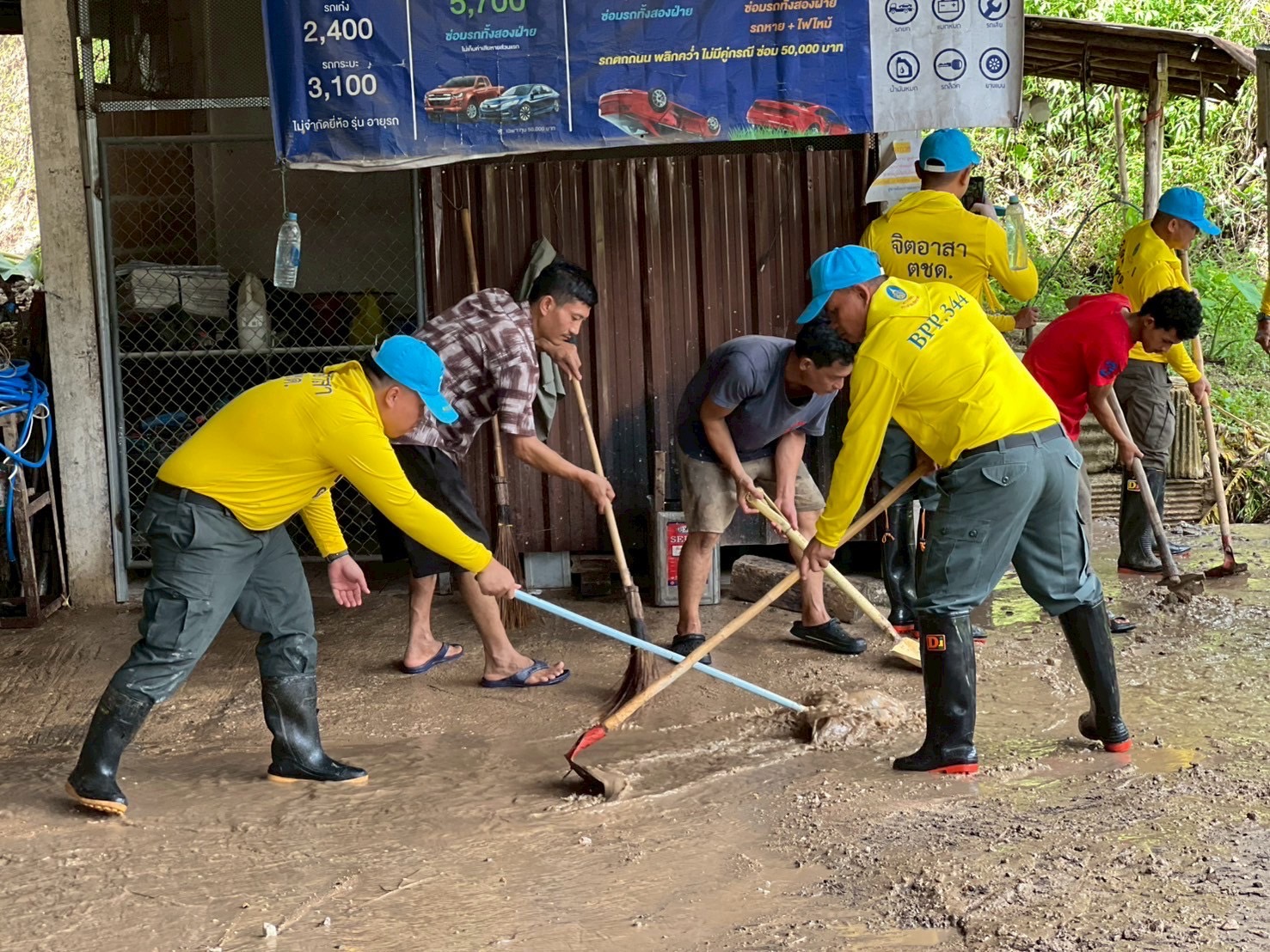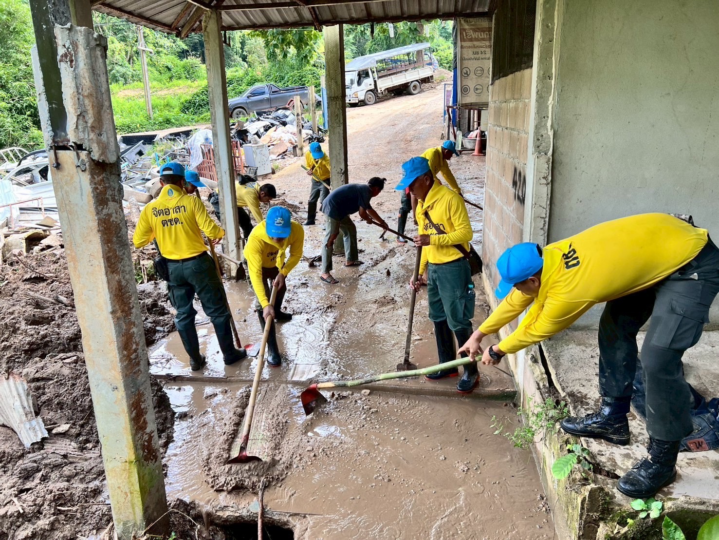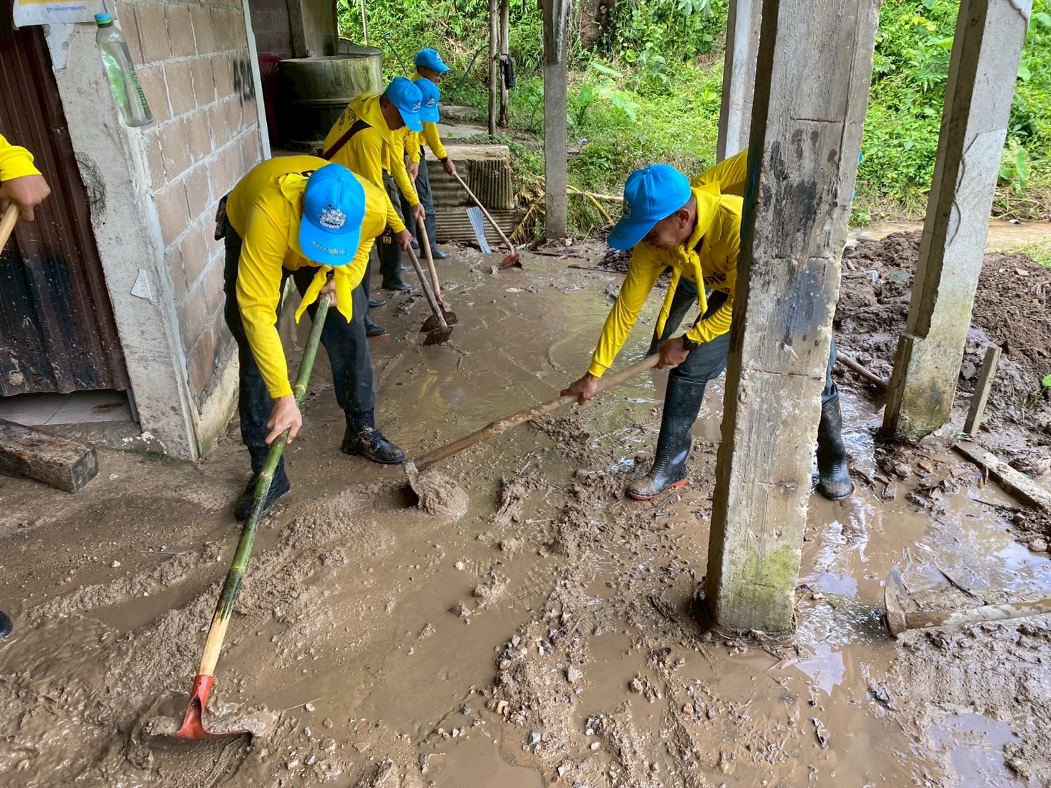 2. เมื่อ 051000 ส.ค.68 นำโดย ร.ต.อ.มิตร สมหมาย รอง สว.(ป) กก.ตชด.34 รรท.ผบ.ร้อย ตชด.344 พร้อม กพ.ชุดจิตอาสาฯ ร้อย ตชด.344 รวม 25 นาย พร้อมรถบรรทุกน้ำขนาด 6,000 ลิตร ออกฟื้นฟู ทำความสะอาด หลังน้ำลด ของบ้านนายธนิสร มูลใจ บ้านเลขที่ 530 หมู่ 2 ตำบลแม่ต้าน อำเภอท่าสองยาง จังหวัดตาก จนถึงเวลา 11.30 น. เสร็จภารกิจ / เดินทางกลับที่ตั้ง