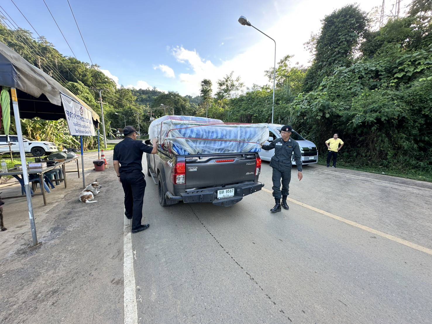 เมื่อ 050800 - 060759 ส.ค.68 ชฝต.บ้านแม่อมกิ​จัด กพ.3 นาย ร่วมกับ เจ้าหน้าที่สารวัตรปศุสัตว์ จ.ตรัง ทำการตั้งจุดตรวจ-จุดสกัด บนทางหลวงหมายเลข 105 (แม่สอด-แม่สะเรียง) บริเวณหน้าจุดตรวจบ้านแม่อมกิ ม.4 ต.แม่วะหลวง อ.ท่าสองยาง จ.ตาก เพื่อป้องกันปราบปรามอาชญากรรมสำคัญ การลักลอบลำเลียงยาเสพติด สารตั้งต้นและเคมีภัณฑ์,การปราบปรามคนร้ายข้ามชาติและเข้าเมืองโดยผิดกฎหมาย ป้องกันและควบคุมการลักลอบเคลื่อนย้ายสัตว์และซากสัตว์ ประชาสัมพันธ์ให้ประชาชนได้รับทราบ