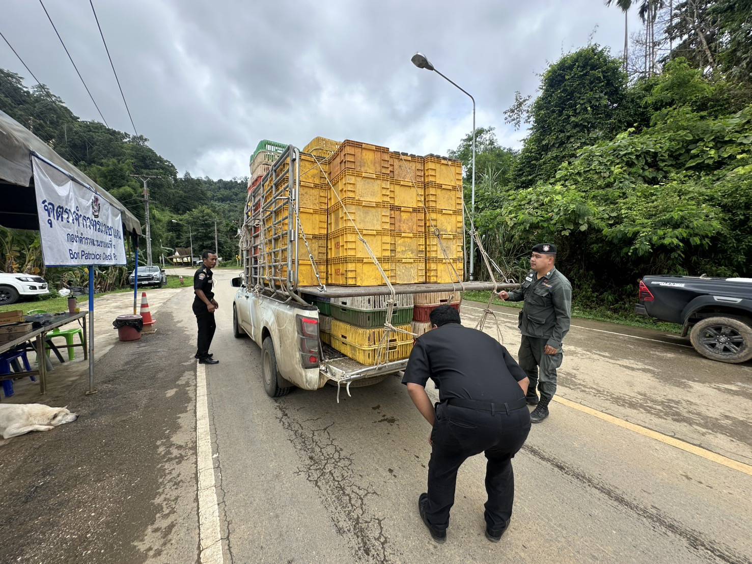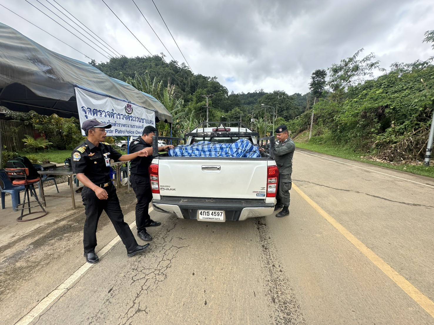 เมื่อ 080800 - 090759 ส.ค.68 ชฝต.บ้านแม่อมกิ​จัด กพ.3 นาย ร่วมกับ เจ้าหน้าที่สารวัตรปศุสัตว์ จ.ตรัง ทำการตั้งจุดตรวจ-จุดสกัด บนทางหลวงหมายเลข 105 (แม่สอด-แม่สะเรียง) บริเวณหน้าจุดตรวจบ้านแม่อมกิ ม.4 ต.แม่วะหลวง อ.ท่าสองยาง จ.ตาก เพื่อป้องกันปราบปรามอาชญากรรมสำคัญ การลักลอบลำเลียงยาเสพติด สารตั้งต้นและเคมีภัณฑ์,การปราบปรามคนร้ายข้ามชาติและเข้าเมืองโดยผิดกฎหมาย ป้องกันและควบคุมการลักลอบเคลื่อนย้ายสัตว์และซากสัตว์ ประชาสัมพันธ์ให้ประชาชนได้รับทราบ