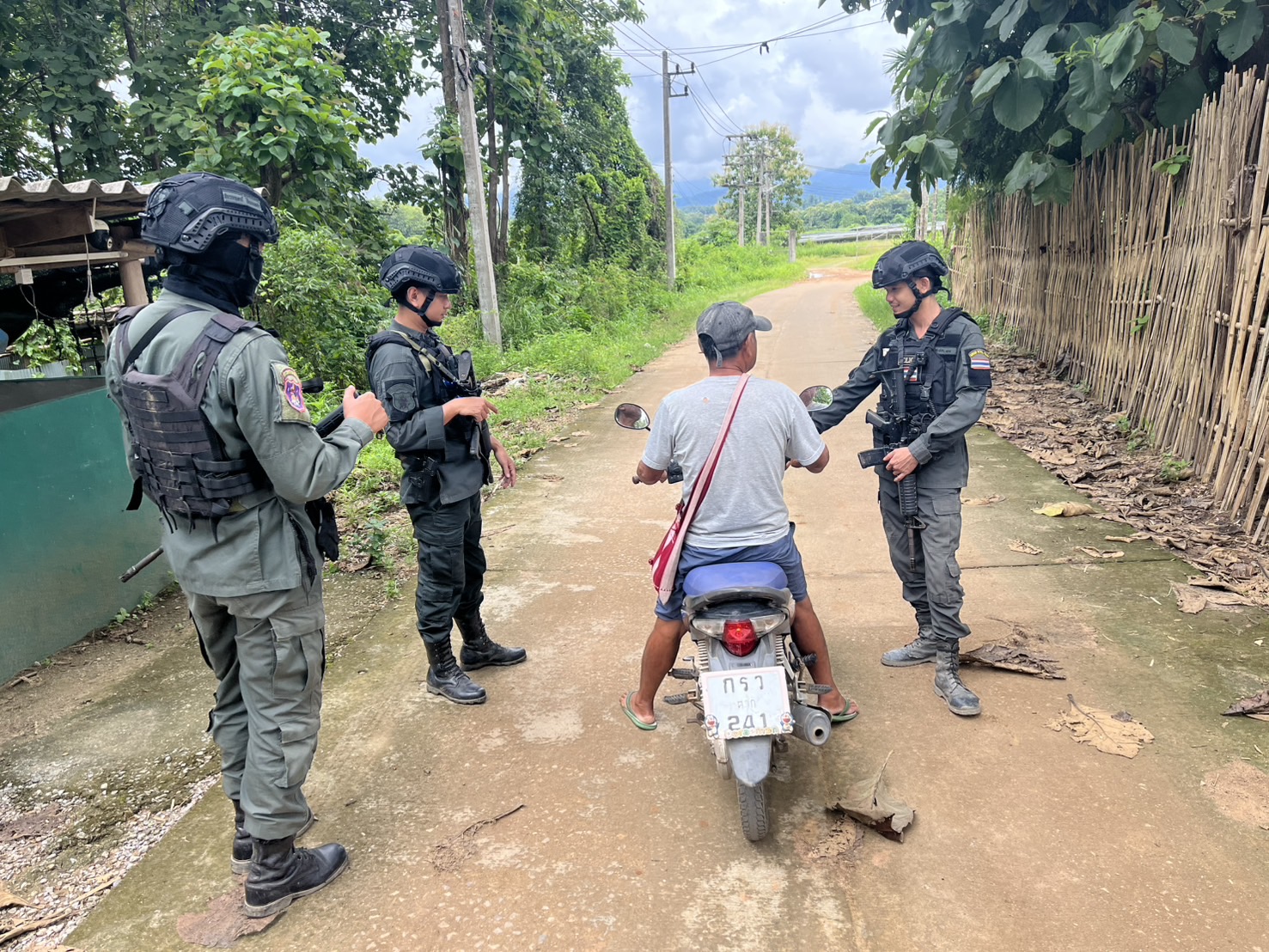 เมื่อ 141000 ส.ค.68 มว.ตชด.3443 จัดให้ จ.ส.ต.ศิริศักดิ์  เสียงสนั่น พร้อม กพ. รวม 4 นาย ตั้งจุดสกัด บริเวณหน้าฐานปฏิบัติการ ม.2 ต. แม่ต้าน อ.ท่าสองยาง จว.ตาก พร้อมออกตรวจใน พท.ฯ ม.1,ม.2 ต.แม่ต้าน อ.ท่าสองยาง จว.ตาก ตามเส้นทาง/ช่องทาง/ท่าข้าม และ พท.สุ่มเสี่ยงก่ออาชญากรรม เพื่อป้องปรามการกระทำผิดกฎหมายตาม พ.ร.บ.ที่มีโทษทางอาญา สกัดกั้นการลักลอบนำเข้า -ส่งออก พืชผลทางการเกษตร สินค้าหนีภาษี และแรงงานต่างด้าวเข้าเมืองโดยผิดกฎหมาย ตรวจสอบเครือข่ายแก๊งคอลเซ็นเตอร์ และป้องกันการลักลอบลำเลียงยาเสพติด สารตั้งต้น และเคมีภัณฑ์