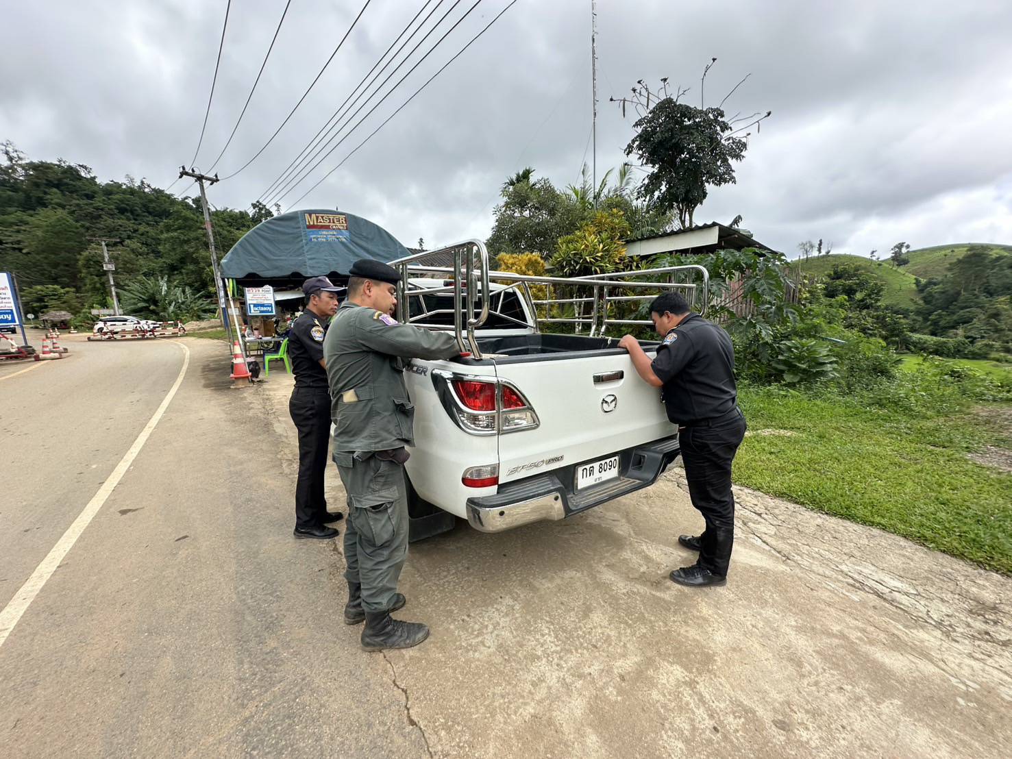 เมื่อ 140800-150759 ส.ค.68 ชฝต.บ้านแม่อมกิจัด กพ 3 นาย ร่วมกับ เจ้าหน้าที่สารวัตรปศุสัตว์ จ.ตรัง ทำการตั้งจุดตรวจ-จุดสกัด บนทางหลวงหมายเลข 105 (แม่สอด-แม่สะเรียง) บริเวณหน้าจุดตรวจบ้านแม่อมกิ ม.4 ต.แม่วะหลวง อ.ท่าสองยาง จ.ตาก เพื่อป้องกันปราบปรามอาชญากรรมสำคัญ การลักลอบลำเลียงยาเสพติด สารตั้งต้นและเคมีภัณฑ์,การปราบปรามคนร้ายข้ามชาติและเข้าเมืองโดยผิดกฎหมาย ป้องกันและควบคุมการลักลอบเคลื่อนย้ายสัตว์และซากสัตว์ ประชาสัมพันธ์ให้ประชาชนได้รับทราบ