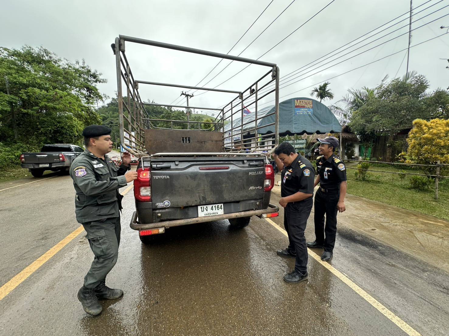 เมื่อ 170800-170759 ส.ค.68 ชฝต.บ้านแม่อมกิจัด กพ ๓ นาย ร่วมกับ เจ้าหน้าที่สารวัตรปศุสัตว์ จ.ตรัง ทำการตั้งจุดตรวจ-จุดสกัด บนทางหลวงหมายเลข 105 (แม่สอด-แม่สะเรียง) บริเวณหน้าจุดตรวจบ้านแม่อมกิ ม.4 ต.แม่วะหลวง อ.ท่าสองยาง จ.ตาก เพื่อป้องกันปราบปรามอาชญากรรมสำคัญ การลักลอบลำเลียงยาเสพติด สารตั้งต้นและเคมีภัณฑ์,การปราบปรามคนร้ายข้ามชาติและเข้าเมืองโดยผิดกฎหมาย ป้องกันและควบคุมการลักลอบเคลื่อนย้ายสัตว์และซากสัตว์ ประชาสัมพันธ์ให้ประชาชนได้รับทราบ