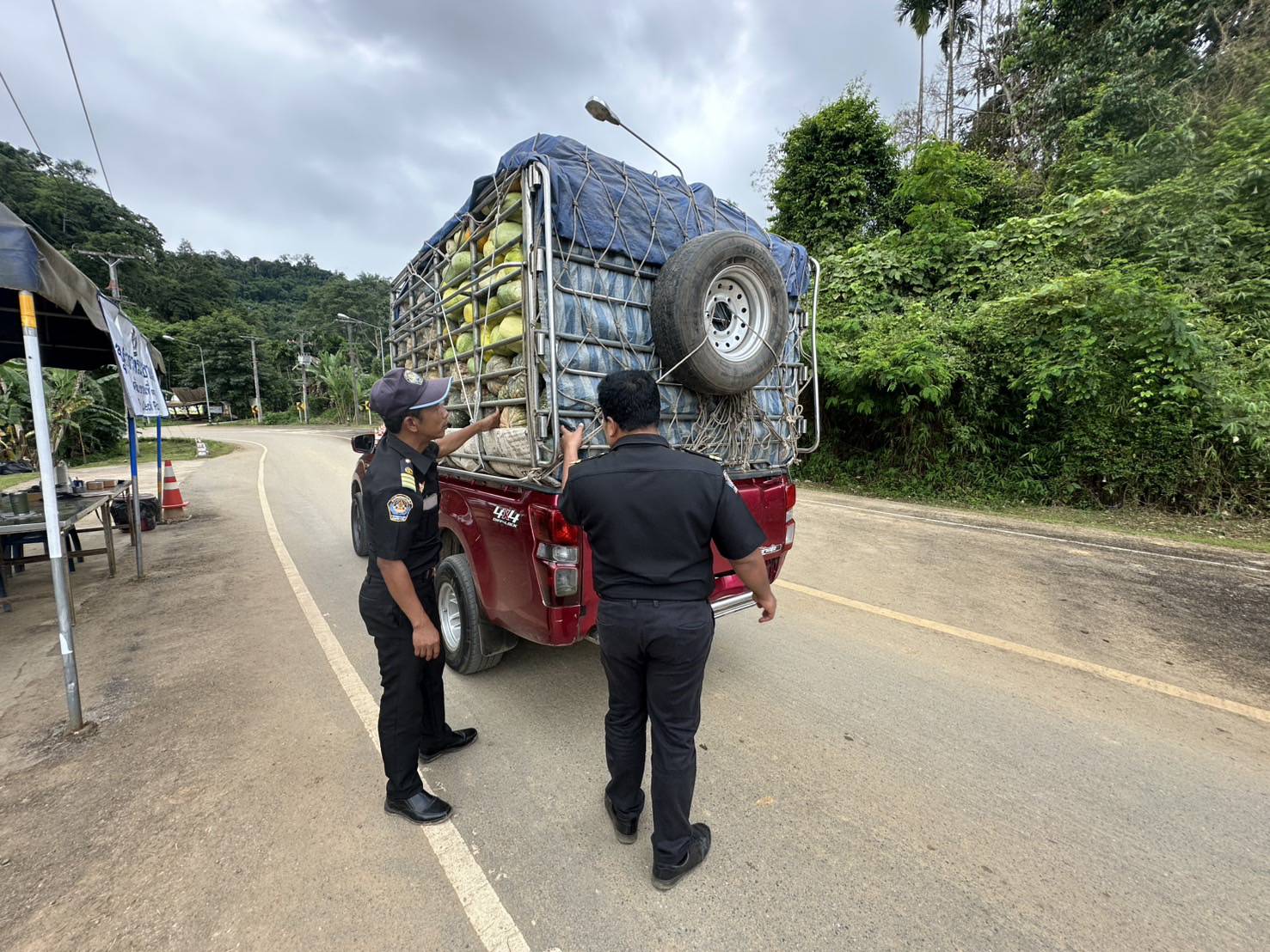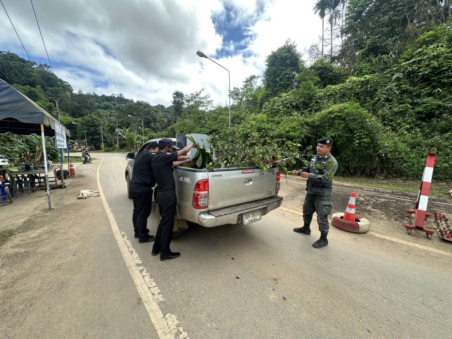 เมื่อ 190800 - 200759 ส.ค.68 ชฝต.บ้านแม่อมกิ​จัด กพ.3 นาย ร่วมกับ เจ้าหน้าที่สารวัตรปศุสัตว์ จ.ตรัง ทำการตั้งจุดตรวจ-จุดสกัด บนทางหลวงหมายเลข 105 (แม่สอด-แม่สะเรียง) บริเวณหน้าจุดตรวจบ้านแม่อมกิ ม.4 ต.แม่วะหลวง อ.ท่าสองยาง จ.ตาก เพื่อป้องกันปราบปรามอาชญากรรมสำคัญ การลักลอบลำเลียงยาเสพติด สารตั้งต้นและเคมีภัณฑ์,การปราบปรามคนร้ายข้ามชาติและเข้าเมืองโดยผิดกฎหมาย ป้องกันและควบคุมการลักลอบเคลื่อนย้ายสัตว์และซากสัตว์ ประชาสัมพันธ์ให้ประชาชนได้รับทราบ