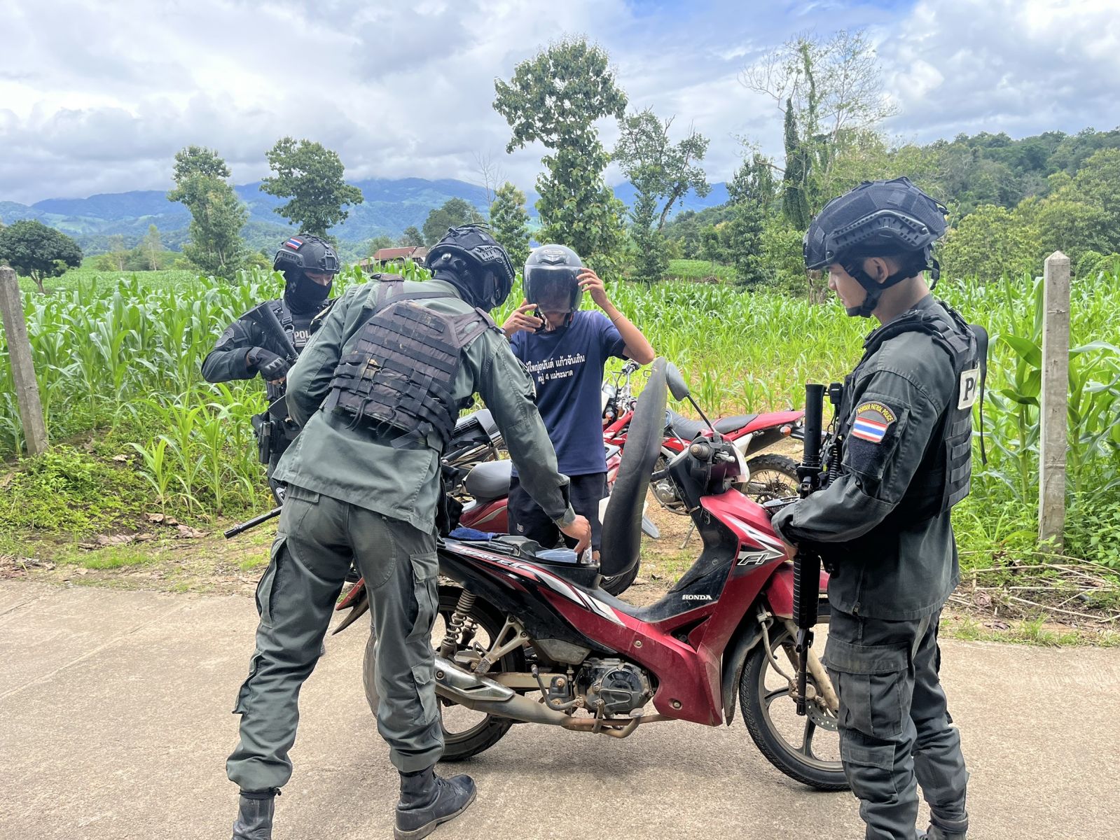 เมื่อ 211300 - 211500 ส.ค.68 มว.ตชด.3443 จัดให้ จ.ส.ต.จักรกฤษณ์ ซ้อนเพชร พร้อม กพ. รวม 4 นาย ตั้งจุดสกัด บริเวณเส้นทางรอง บ.ใหม่ ม.1 - บ.ห้วยแมงบ้ง ม.7 ต. แม่ต้าน อ.ท่าสองยาง จ.ตาก พิกัด 47Q MV1810108480 พร้อมออกตรวจใน พท.ฯ ม.2 ต.แม่ต้าน อ.ท่าสองยาง จ.ตาก ตามเส้นทาง/ช่องทาง/ท่าข้าม และ พท.สุ่มเสี่ยงก่ออาชญากรรม เพื่อป้องปรามการกระทำผิดกฎหมายตาม พ.ร.บ.ที่มีโทษทางอาญา สกัดกั้นการลักลอบนำเข้า -ส่งออก พืชผลทางการเกษตร สินค้าหนีภาษี และแรงงานต่างด้าวเข้าเมืองโดยผิดกฎหมาย ตรวจสอบเครือข่ายแก๊งคอลเซ็นเตอร์ และป้องกันการลักลอบลำเลียงยาเสพติด สารตั้งต้น และเคมีภัณฑ์
