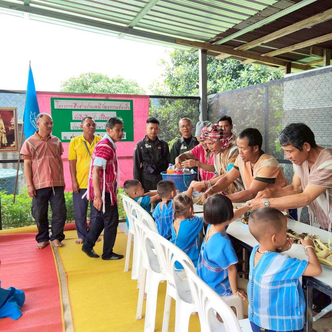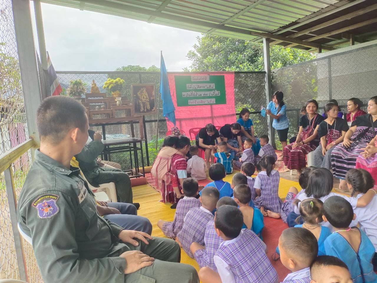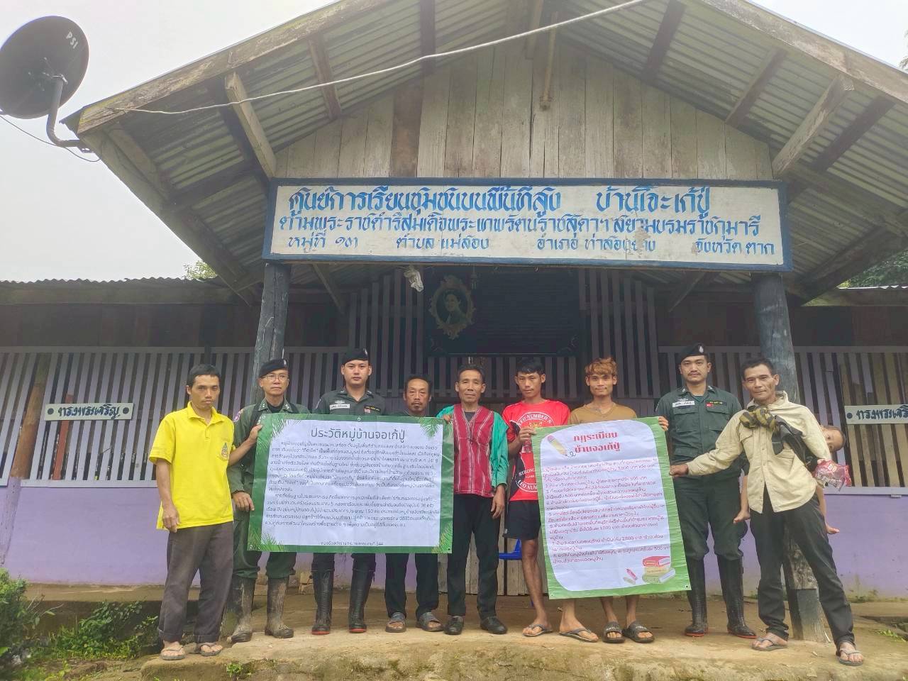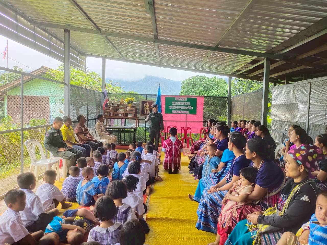 ห้วงวันที่ 21-22 ส.ค.68  ชุดปฏิบัติการ ตชด. กองร้อยที่ 344 นำโดย ร.ต.ท.สมจิตต์ สายชลคีรี หัวหน้าชุดปฏิบัติการ พร้อมกำลังพลรวม 5 นาย ได้เดินทางเข้าพื้นที่เป้าหมายเพื่อดำเนินการตามโครงการป้องกันและยับยั้งการแพร่กระจายพื้นที่ปลูกพืชเสพติด (ฝิ่น) ปี 2568 ในพื้นที่ บ้านปอเล้อ,บ้านทีโบ้คี,บ้านเจาะเก้ปู ต.แม่สอง อ.ท่าสองยาง จ.ตาก เพื่อการป้องกันและแก้ไขปัญหาการลักลอบปลูกฝิ่น และขับได้เคลื่อนการดำเนินงานกุญแจ 9 ดอก โดยได้พบปะพูดคุยกับผู้นำผู้นำหมู่บ้าน ประชาชน เยาวชน แจกจ่ายยาเวชภัณฑ์ประจำบ้าน ให้กับประชาชน ติดป้ายไวนิลกฎระเบียบหมู่บ้านและป้ายไวนิลประวัติหมู่บ้าน บ้านจอเก้ปู และได้ร่วมกิจกรรมวันแม่และงานประเพณีมัดมือกับชาวบ้าน