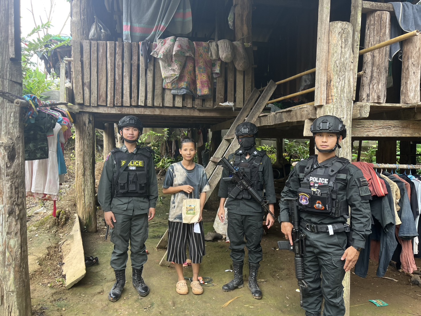 เมื่อ 261430 ส.ค. 68 มว.ตชด.3443 จัดให้ จ.ส.ต.ศิริศักดิ์ เสียงสนั่น  พร้อม กพ. รวม 4 นาย ตั้งจุดสกัดบ้านเเกลมือโจ๊ะและพบปะเยี่ยมเยือน ปชช.ใน พท.รับผิดชอบ/แจกจ่ายยาเวชภัณฑ์ ใน พท. ม.8ต. แม่ต้าน อ.ท่าสองยาง จว.ตาก พิกัด 47QMV 2484603527 พร้อม ออกตรวจ ใน พท.ฯ ม.2,ม.8