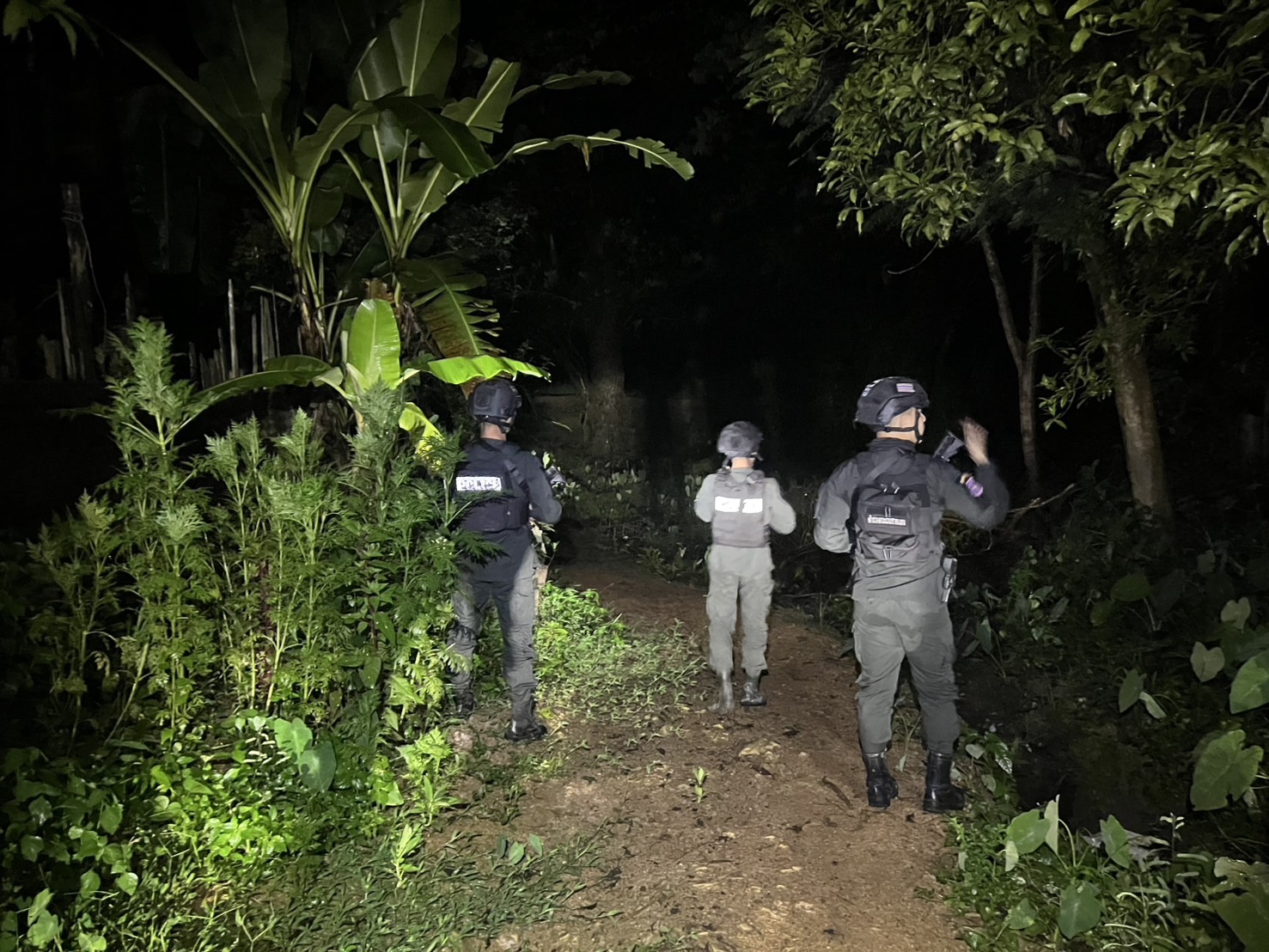 เมื่อ 272000 ส.ค. 68 มว.ตชด.3443 จัดให้ ส.ต.ท.บรรณวิทิต บังเมฆ พร้อม กพ. รวม 4 นาย ออกตรวจใน พท.ฯ ม.1, ม.2 ต.แม่ต้าน อ.ท่าสองยาง จว.ตาก ตามเส้นทาง/ช่องทาง/ท่าข้าม และ พท.สุ่มเสี่ยงก่ออาชญากรรม เพื่อป้องปรามการกระทำผิดกฎหมายตาม พ.ร.บ.ที่มีโทษทางอาญา สกัดกั้นการลักลอบนำเข้า - ส่งออก พืชผลทางการเกษตร สินค้าหนีภาษี และแรงงานต่างด้าวเข้าเมืองโดยผิดกฎหมาย ตรวจสอบเครือข่ายแก๊งคอลเซ็นเตอร์ และป้องกันการลักลอบลำเลียงยาเสพติด สารตั้งต้น และเคมีภัณฑ์
