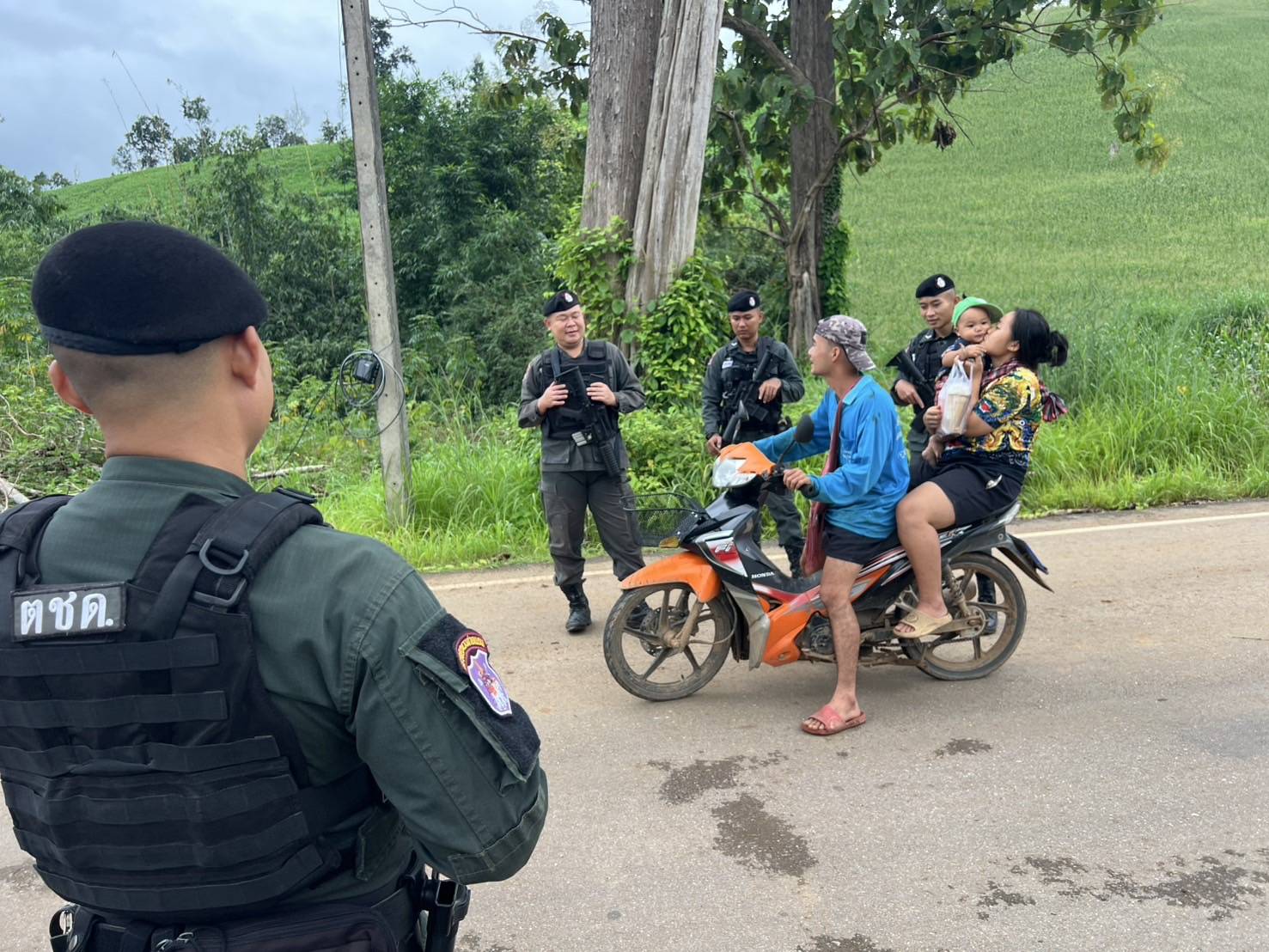 เมื่อ 021200 ก.ย.68 ส.ต.อ.เมธี  ชาลี พร้อมกำลังพล มว.ตชด.3442 รวม 4 นาย ออกตั้งจุดตรวจ/จุดสกัดกั้นชั่วคราว และ ลว.หาข่าว เพื่อป้องปรามการกระทำผิดกฎหมายตาม พ.ร.บ.ที่มีโทษทางอาญา สกัดกั้นกลุ่มขบวนการนำพาแรงงานต่างด้าวหลบหนีเข้าเมืองอย่างผิดกฏหมาย ป้องกันการลักลอบลำเลียงยาเสพติด สารตั้งต้น-เคมีภัณฑ์ ออกนอกราชอาณาจักร บริเวณเส้นทางบ้านพะน๊อคี หมู่ 10 ต.แม่หละ  อ.ท่าสองยาง  จว.ตาก ผลการปฏิบัติไม่พบการกระทำผิดกฎหมายแต่อย่างใด