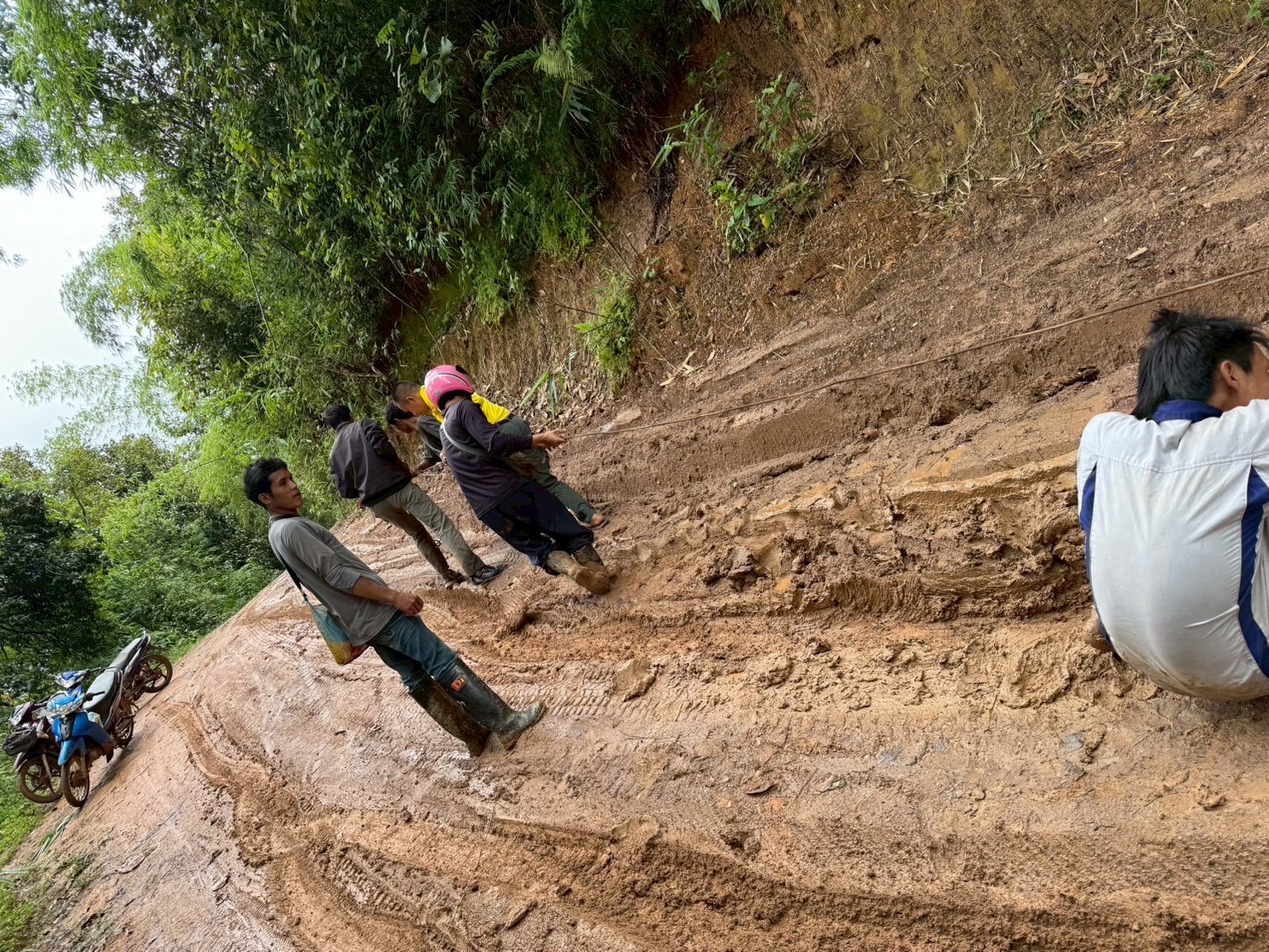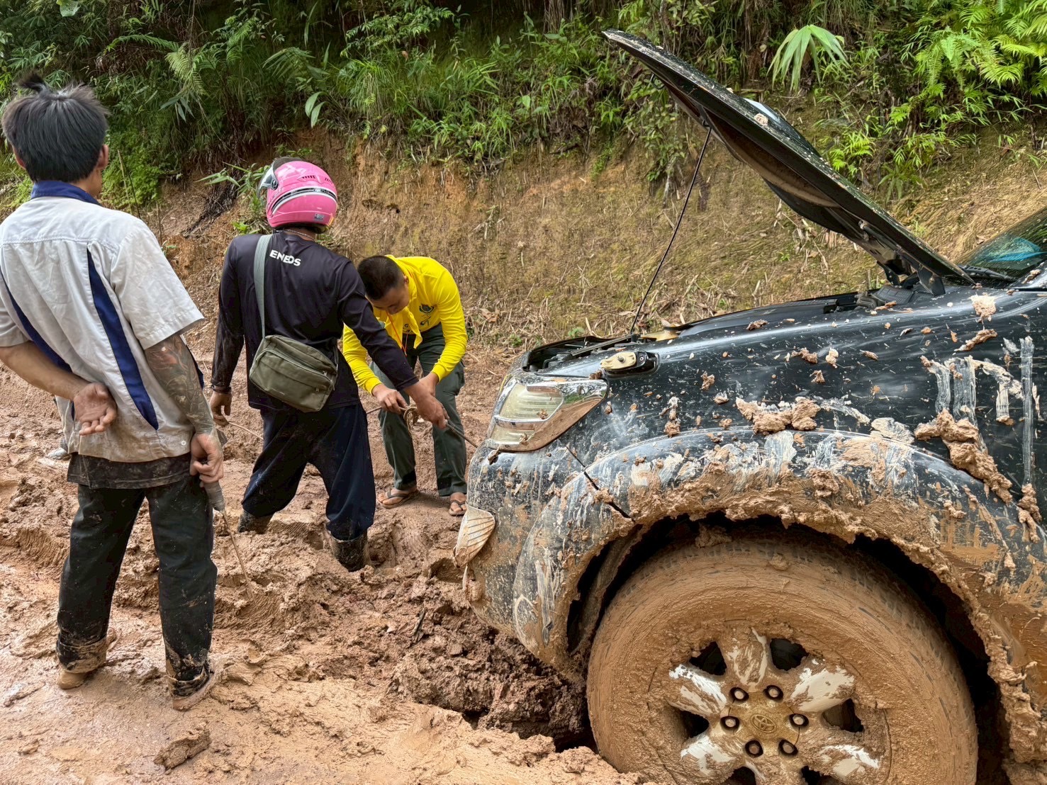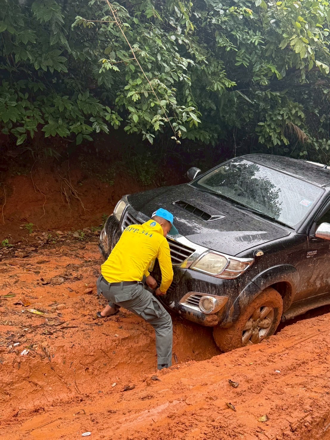 เพื่อนำส่งยังโรงพยาบาลท่าสองยาง ม.1 ต.แม่ต้าน อ.ท่าสองยาง จ.ตาก เนื่องจากฝนตกหนักตลอดหลายวันรถยนต์ภายในหมู่บ้านไม่สามารถสัญจรออกมาได้