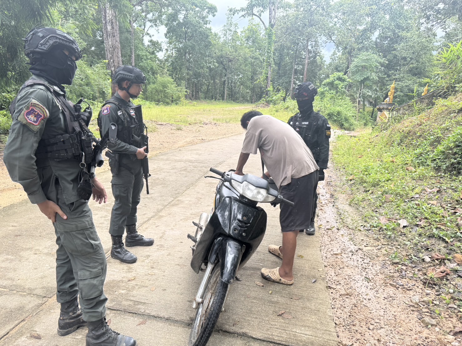 เมื่อ 241400 ก.ย. 68 มว.ตชด.3443 จัดให้ จ.ส.ต.จักรกฤษณ์ ซ้อนเพชร พร้อม กพ. รวม 4 นาย ตั้งจุดสกัด บริเวณเส้นทางรอง บ.เเม่ต้าน ม.1 - บ้านแม่โพ ม.7 ต. แม่ต้าน อ.ท่าสองยาง จว.ตาก (วัดห้วยลึก) พิกัด 47QMV1975805573 พร้อมออกตรวจใน พท.ฯ ม.2 ต.แม่ต้าน อ.ท่าสองยาง จว.ตาก ตามเส้นทาง/ช่องทาง/ท่าข้าม และ พท.สุ่มเสี่ยงก่ออาชญากรรม เพื่อป้องปรามการกระทำผิดกฎหมายตาม พ.ร.บ.ที่มีโทษทางอาญา สกัดกั้นการลักลอบนำเข้า -ส่งออก พืชผลทางการเกษตร สินค้าหนีภาษี และแรงงานต่างด้าวเข้าเมืองโดยผิดกฎหมาย ตรวจสอบเครือข่ายแก๊งคอลเซ็นเตอร์ และป้องกันการลักลอบลำเลียงยาเสพติด สารตั้งต้น และเคมีภัณฑ์