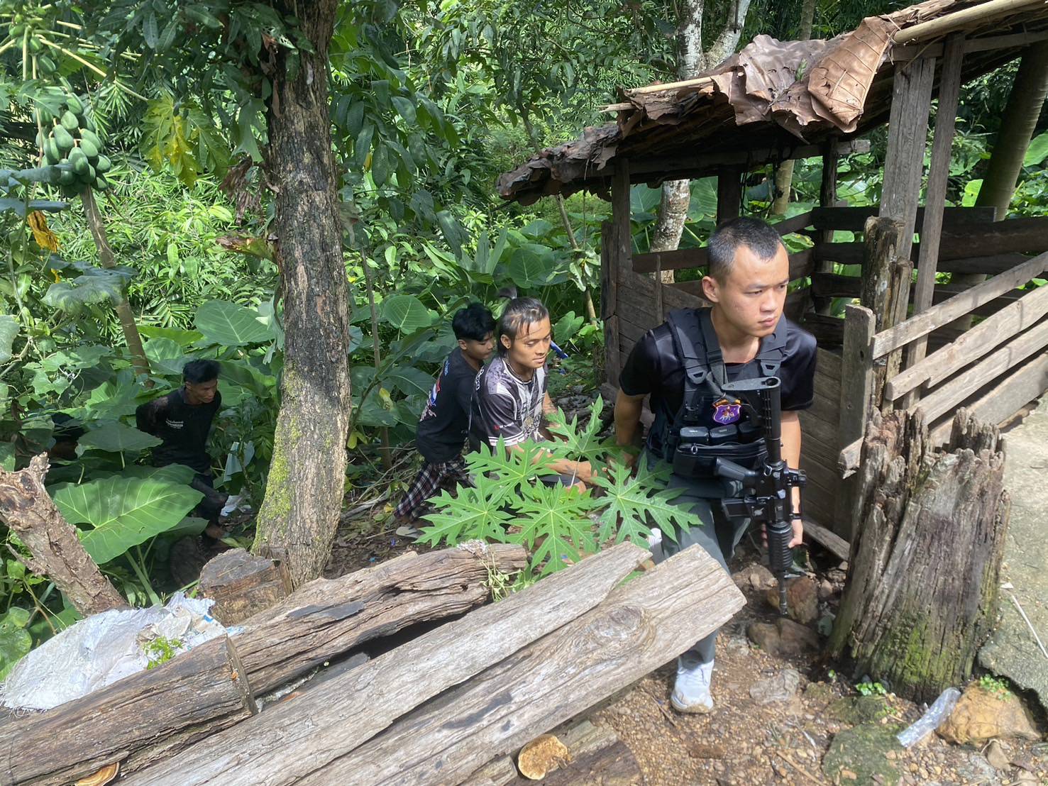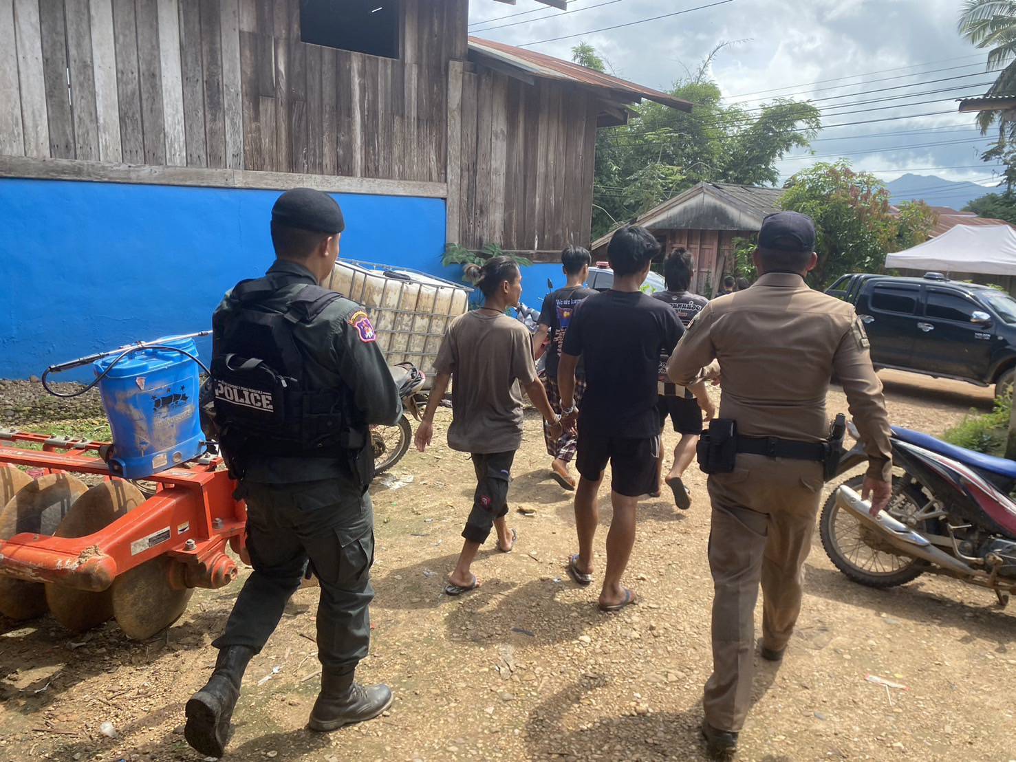 เมื่อ 261400 ก.ย. 68 ส.ต.อ.กมลศักดิ์ กิจโดมกุล พร้อม กพ.ชุด ชปข.มว.ตชด.3442 รวม 4 นาย ร่วมกับ จนท.ตร.สภ.ท่าสองยาง(จุดตตรวจแม่หละ) , ผู้ใหญ่บ้าน-ชรบ.หมู่ 2 ร่วมกันออก ลว.ฯ ภายในหมู่บ้านแม่หละยาง เพื่อตรวจสอบเป้าหมายมั่วสุมเสพยาเสพติด บริเวณห้องน้ำเก่า ข้างกระท่อมไม่มีเลขที่ ภายในหมู่บ้านแม่หละยาง หมู่ 2 ต.แม่หละ อ.ท่าสองยาง จว.ตาก พิกัด 47Q MU271955 พบผู้ต้องหา 4 ราย มั่วสุมเสพยาอยู่ในห้องน้ำดังกล่าว ดังนี้
