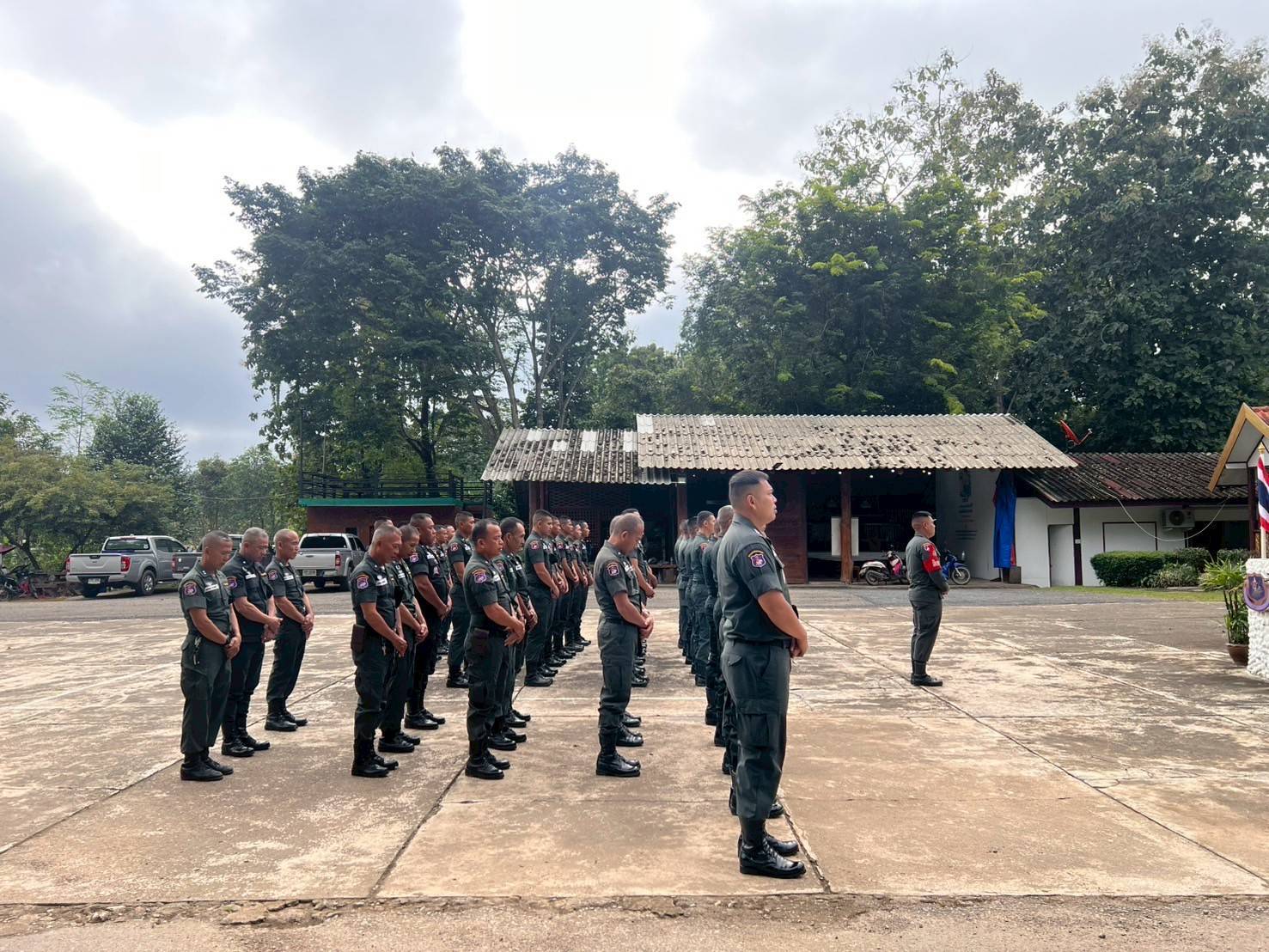 - เวลา 08.30 น. รวมแถว ตรวจจำนวน สวดมนต์ไหว้พระ/แผ่เมตตา/กล่าวคำปฏิญาณตน , พิธีอ่านสาร ผบ.ตร.