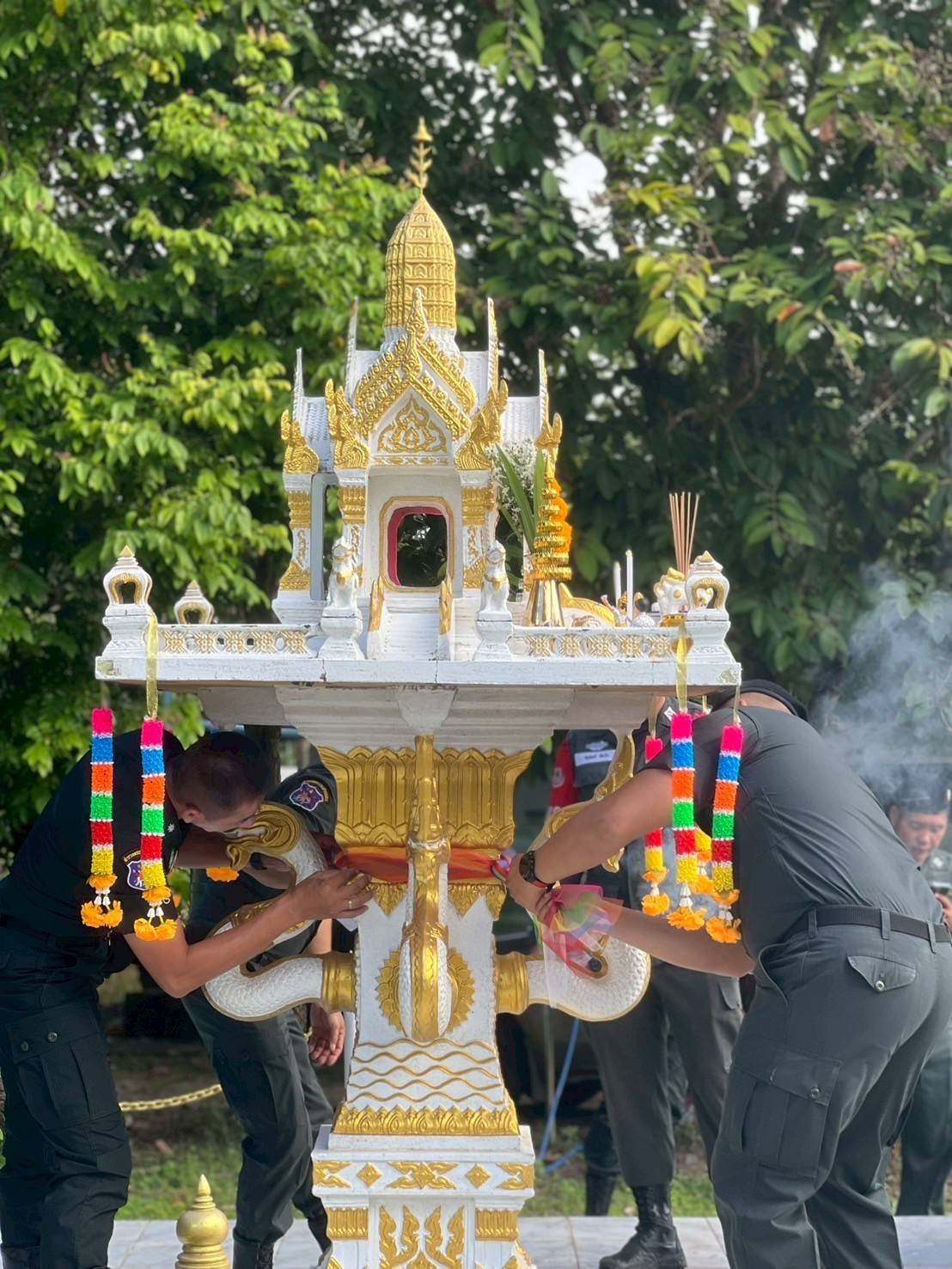 - เวลา 09.00 น พิธีไหว้พระพุทธรูปและ ศาลพระภูมิเจ้าที่ประจำกองร้อยฯ (ถวายเครื่องสักการะ เปลี่ยนเครื่องบริวาร นางรำฯ ศาลพระภูมิฯ )