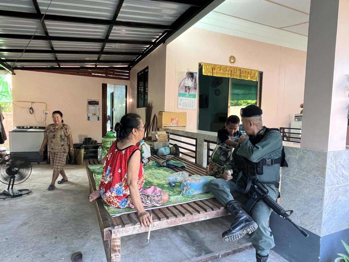 2. เมื่อ 201500 - 201700 ต.ค.68 มว.ตชด.3442 ชป.ตชด.บ้านแม่หละไทย จัดให้ ด.ต.บรรลือ วิชาดี พร้อมพวก รวม 4 นาย ออก ลว.หาข่าวพื้นที่แนวชายแดนเพื่อป้องกันการลักลอบนำสินค้าการเกษตร เข้ามาในราชอาณาจักร การลักลอบโจรกรรมรถยนต์-รถจักรยานยนต์ข้ามฝั่ง การกระทำผิดกฎหมายตาม พ.ร.บ.ที่มีโทษทางอาญา การลักลอบหลบหนีเข้าเมืองโดยผิดกฏหมาย ตรวจสอบเครือข่ายแก๊งคอลเซ็นเตอร์ พบปะชาวบ้าน และป้องกันการลักลอบลำเลียงยาเสพติด สารตั้งต้น และเคมีภัณฑ์ บริเวณช่องทางท่าข้ามตามธรรมชาติ พื้นที่บ้านแม่หละไทย หมู่ 1 ต.แม่หละ อ.ท่าสองยาง จ.ตาก