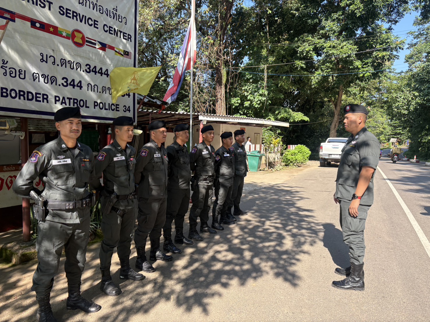 1.เมื่อวันที่ 21 ต.ค.68 เวลา 09.00-10.00 น. พ.ต.ท.ฐัตพล สายโรจน์ ผบ.ร้อย ตชด.344 เดินทางโดย รยบ.ทะเบียนตราโล่หมายเลข 29501 ตรวจเยี่ยม มว.ตชด.3444 ฐานปฏิบัติการบ้านวะแขวะโกร พบ ส.ต.ต.วิศณุ ทองนอก สิบเวรประจำวัน พร้อมมอบเสื้อสะท้อนแสงและกระบอกไฟจราจรให้กับกำลังพล