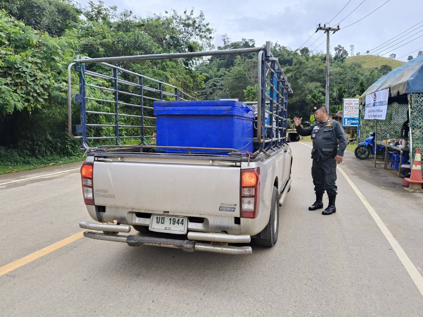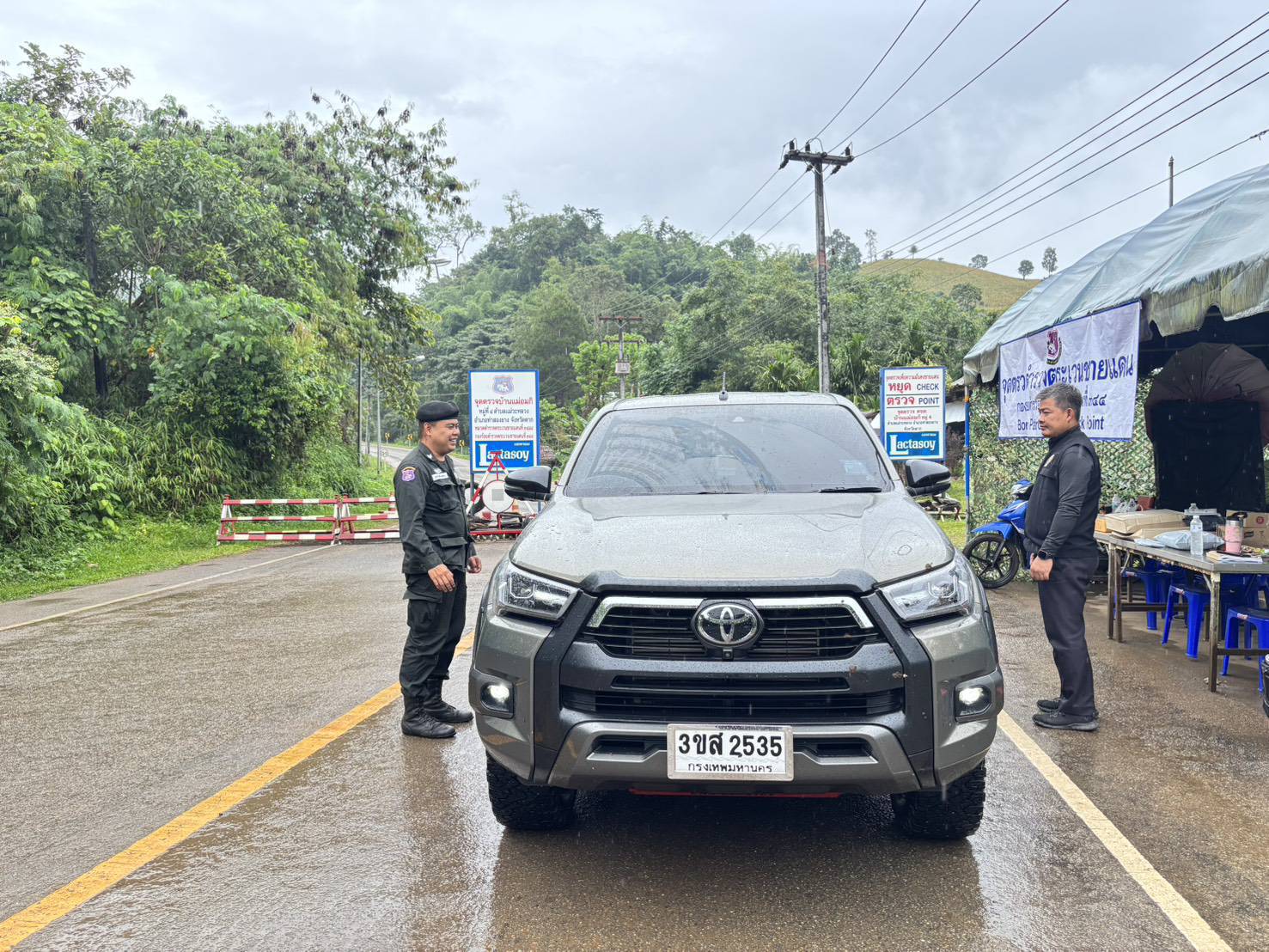 เมื่อ 080800 - 090759 พ.ย.68 ชฝต.บ้านแม่อมกิ​จัด กพ.3 นาย ร่วมกับ เจ้าหน้าที่สารวัตรปศุสัตว์ จ.ประจวบคีรีขันธ์ ทำการตั้งจุดตรวจ-จุดสกัด บนทางหลวงหมายเลข 105 (แม่สอด-แม่สะเรียง) บริเวณหน้าจุดตรวจบ้านแม่อมกิ ม.4 ต.แม่วะหลวง อ.ท่าสองยาง จ.ตาก เพื่อป้องกันปราบปรามอาชญากรรมสำคัญ การลักลอบลำเลียงยาเสพติด สารตั้งต้นและเคมีภัณฑ์,การปราบปรามคนร้ายข้ามชาติและเข้าเมืองโดยผิดกฎหมาย ป้องกันและควบคุมการลักลอบเคลื่อนย้ายสัตว์และซากสัตว์ ประชาสัมพันธ์ให้ประชาชนได้รับทราบ
