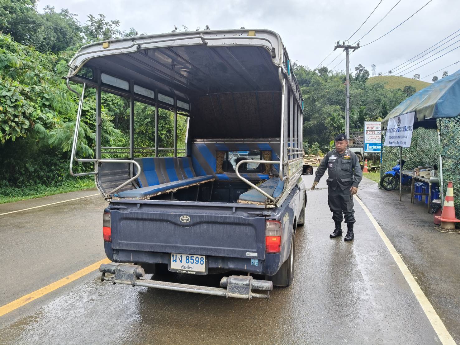 เมื่อ 100800 - 110759 พ.ย. 68 ชฝต.บ้านแม่อมกิ​จัด กพ. 3 นาย ร่วมกับ เจ้าหน้าที่สารวัตรปศุสัตว์ จ.ประจวบคีรีขันธ์ ทำการตั้งจุดตรวจ-จุดสกัด บนทางหลวงหมายเลข 105 (แม่สอด-แม่สะเรียง) บริเวณหน้าจุดตรวจบ้านแม่อมกิ ม.4 ต.แม่วะหลวง อ.ท่าสองยาง จ.ตาก เพื่อป้องกันปราบปรามอาชญากรรมสำคัญ การลักลอบลำเลียงยาเสพติด สารตั้งต้นและเคมีภัณฑ์,การปราบปรามคนร้ายข้ามชาติและเข้าเมืองโดยผิดกฎหมาย ป้องกันและควบคุมการลักลอบเคลื่อนย้ายสัตว์และซากสัตว์ ประชาสัมพันธ์ให้ประชาชนได้รับทราบ ผลการ ปบ.ยานพาหนะที่สัญจรผ่านไป-มา ให้ความร่วมมือในการตรวจค้นเป็นอย่างดี​ ทำการตรวจค้น