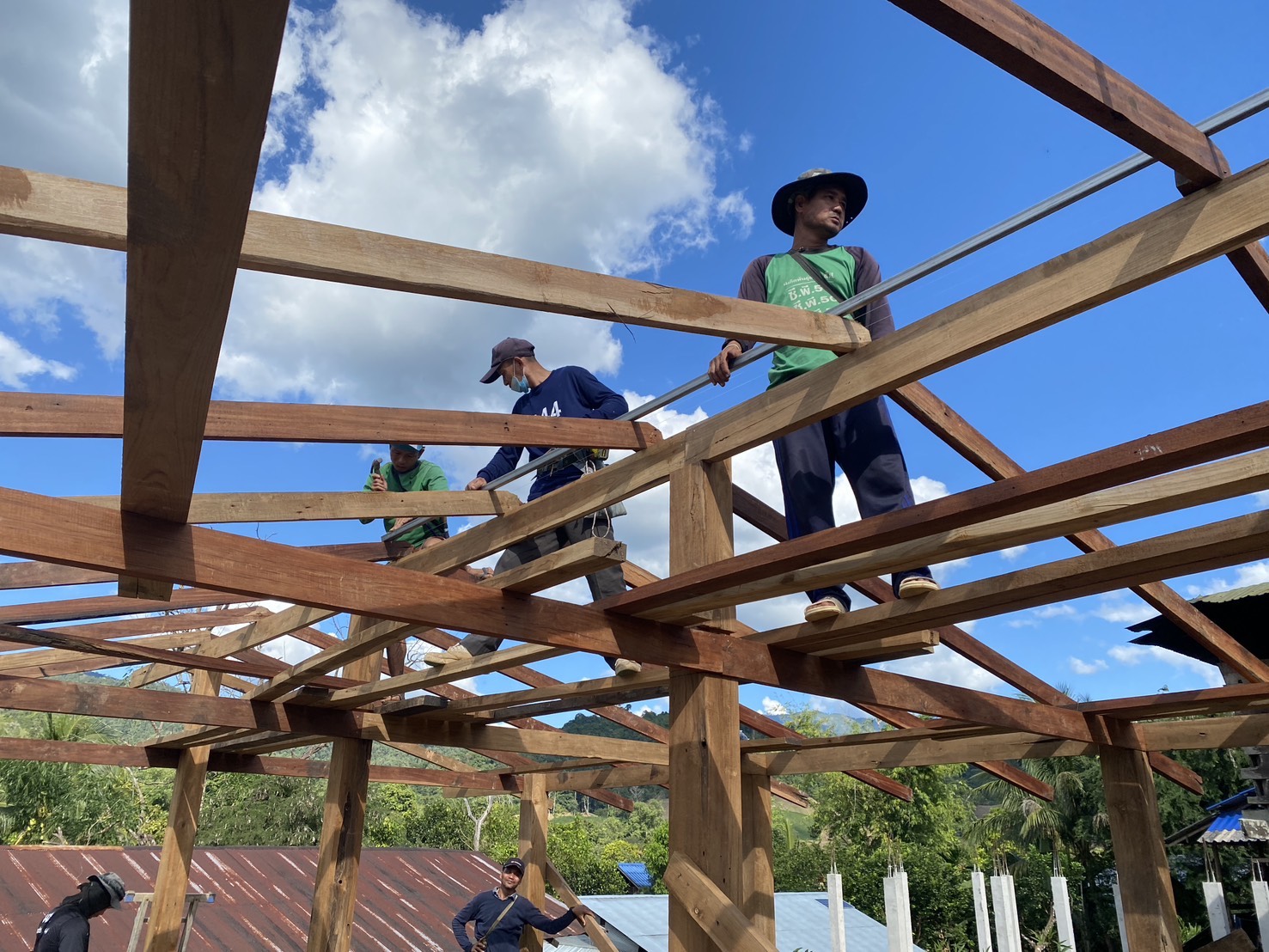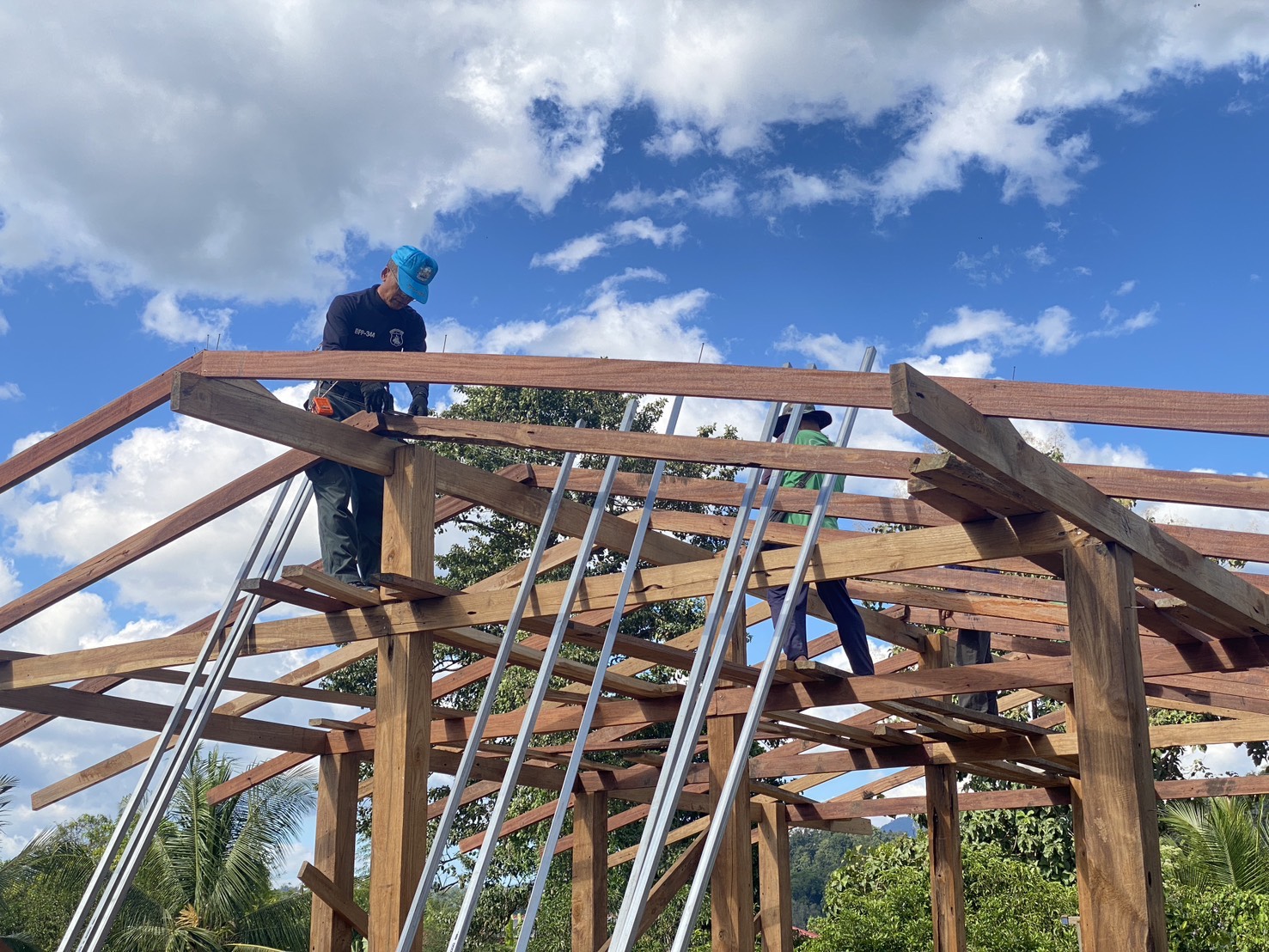 ร้อย ตชด.344 มอบหมายให้ ร.ต.ท. สมจิตต์ สายชลคีรี ผบ.มว.มชส.ร้อย ตชด.344 พร้อม กพ.ชุดจิตอาสาฯ ดำเนินการขึ้นโครงหลังคา ตามโครงการมูลนิธิ ซี.ซี.เอฟ