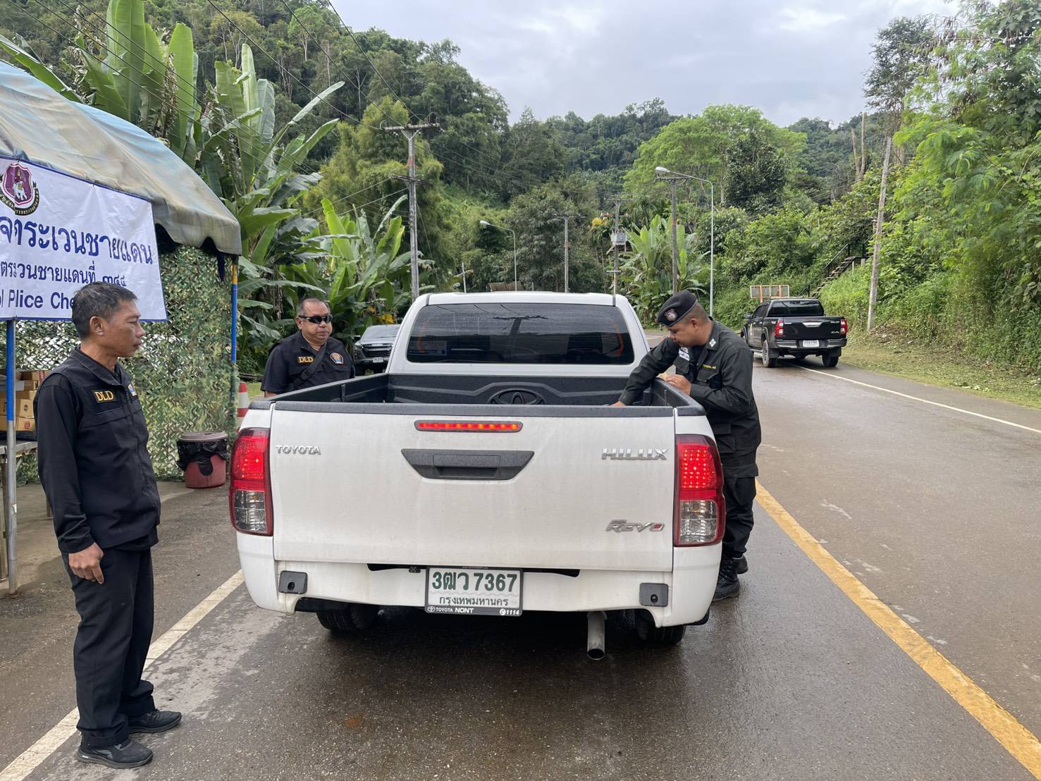 เมื่อ 180800 - 190759 พ.ย.68 ชฝต.บ้านแม่อมกิ​จัด กพ.3 นาย ร่วมกับ เจ้าหน้าที่สารวัตรปศุสัตว์ จ.ประจวบคีรีขันธ์ ทำการตั้งจุดตรวจ-จุดสกัด บนทางหลวงหมายเลข 105 (แม่สอด-แม่สะเรียง) บริเวณหน้าจุดตรวจบ้านแม่อมกิ ม.4 ต.แม่วะหลวง อ.ท่าสองยาง จ.ตาก เพื่อป้องกันปราบปรามอาชญากรรมสำคัญ การลักลอบลำเลียงยาเสพติด สารตั้งต้นและเคมีภัณฑ์,การปราบปรามคนร้ายข้ามชาติและเข้าเมืองโดยผิดกฎหมาย ป้องกันและควบคุมการลักลอบเคลื่อนย้ายสัตว์และซากสัตว์ ประชาสัมพันธ์ให้ประชาชนได้รับทราบ