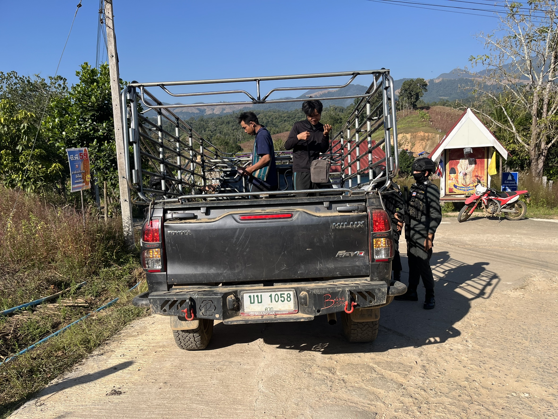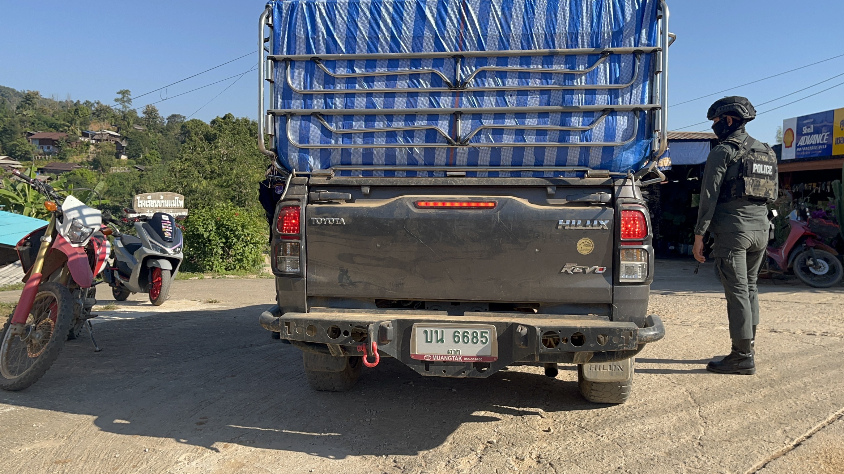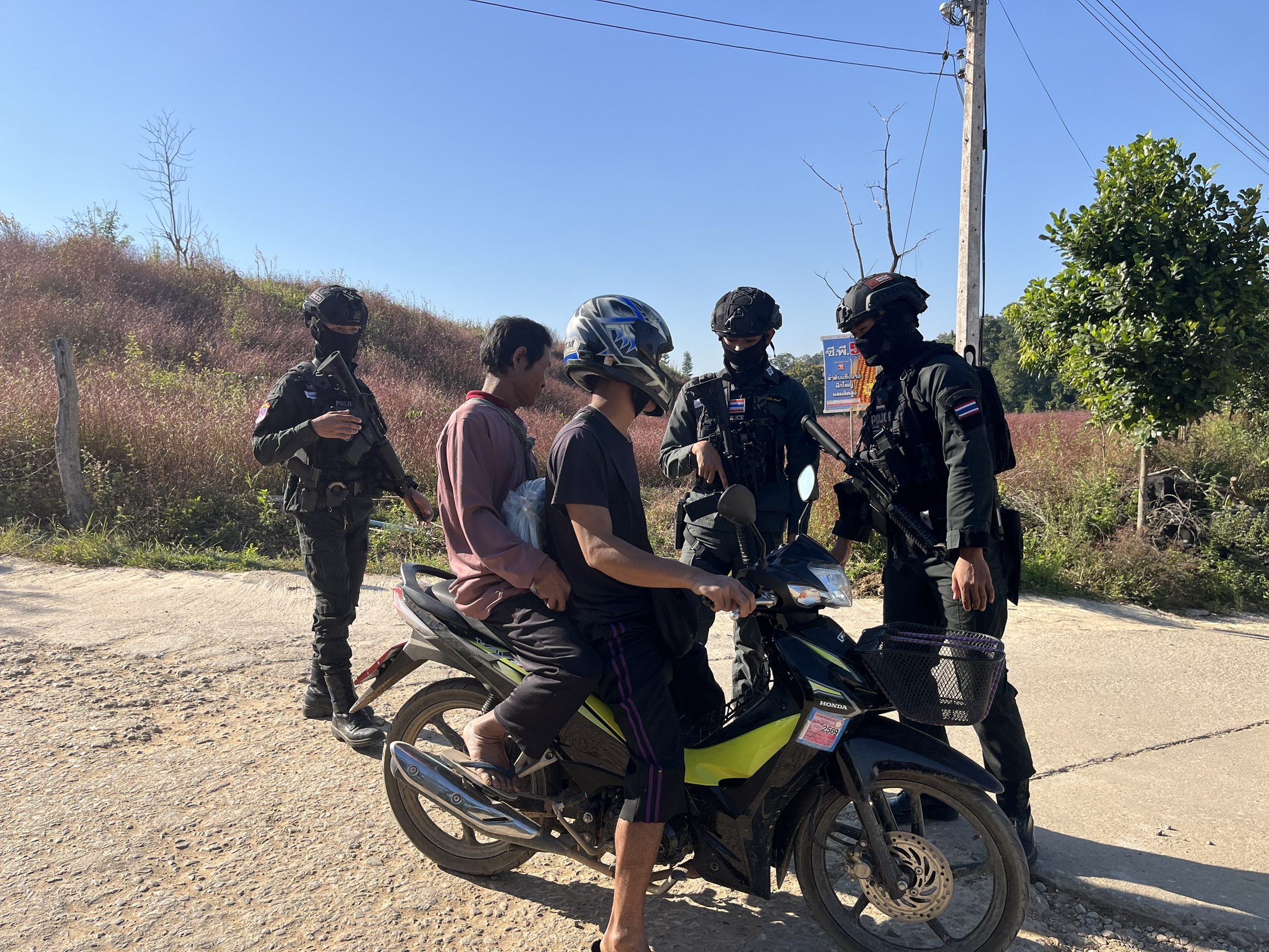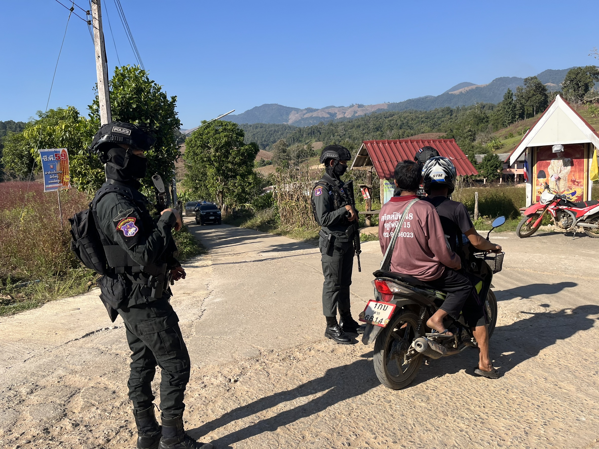เมื่อ 291430 - 291630 พ.ย.68 มว.ตชด.3443 จัดให้ จ.ส.ต.ศิริศักดิ์ เสียงสนั่น พร้อม กพ. รวม 4 นาย ตั้งจุดสกัด บริเวณเส้นทางรอง บ.เเม่โพ ม.7 ต. แม่ต้าน อ.ท่าสองยาง จว.ตาก(โรงเรียนบ้านเเม่โพ)พิกัด 47QMV 2215607329 พร้อมออก ตรวจ ใน พท.ฯ ม.2 ต.แม่ต้าน อ.ท่าสองยาง จว.ตาก ตามเส้นทาง/ช่องทาง/ท่าข้าม และ พท.สุ่มเสี่ยงก่ออาชญากรรม เพื่อตรวจสอบ /ป้องกัน /ป้องปราม การลักลอบนําเข้า - ส่งออก ของโค ,สุกร ,พืชผลทางการเกษตร ,แรงงานต่างด้าว ,เฝ้าระวังการรุกล้ำอธิปไตย ของ กกล. ต่างชาติ และการกระทำผิดตาม พรบ. ที่มีโทษทางอาญา ตรวจสอบเครือข่ายแก็งคอลเซ็นเตอร์ฯ เพื่อป้องกันการลักลอบเข้า/ออกราชอาณาจักรโดยผิดกฎหมาย การลักลอบขนน้ำมันเชื้อเพลิงออกนอกราชอาณาจักร ป้องกันการลักลอบลำเลียงยาเสพติด สารตั้งต้น และเคมีภัณฑ์