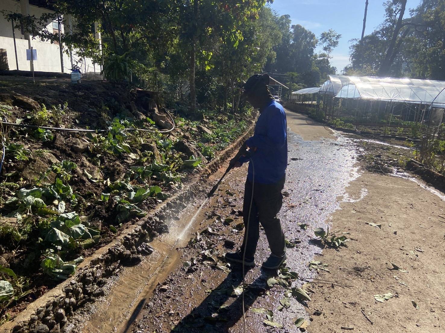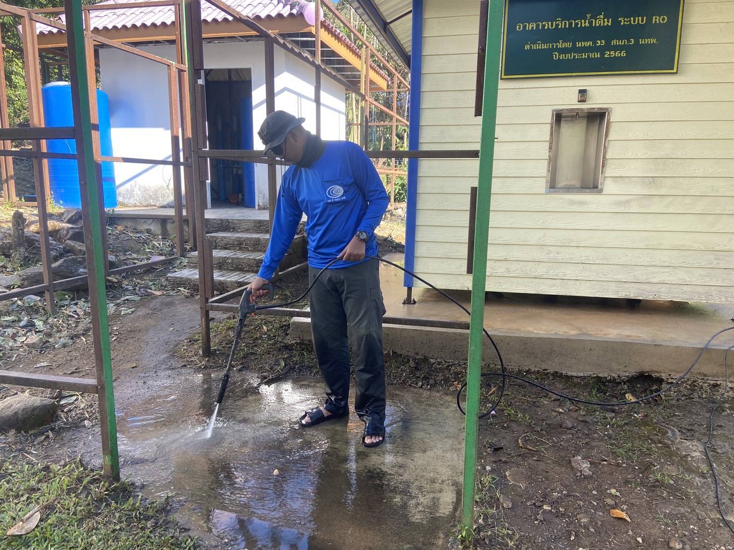 - ฉีดล้าง คราบตะไคร่น้ำบริเวณ ขอบแปลงต้นไม้ต่างๆ