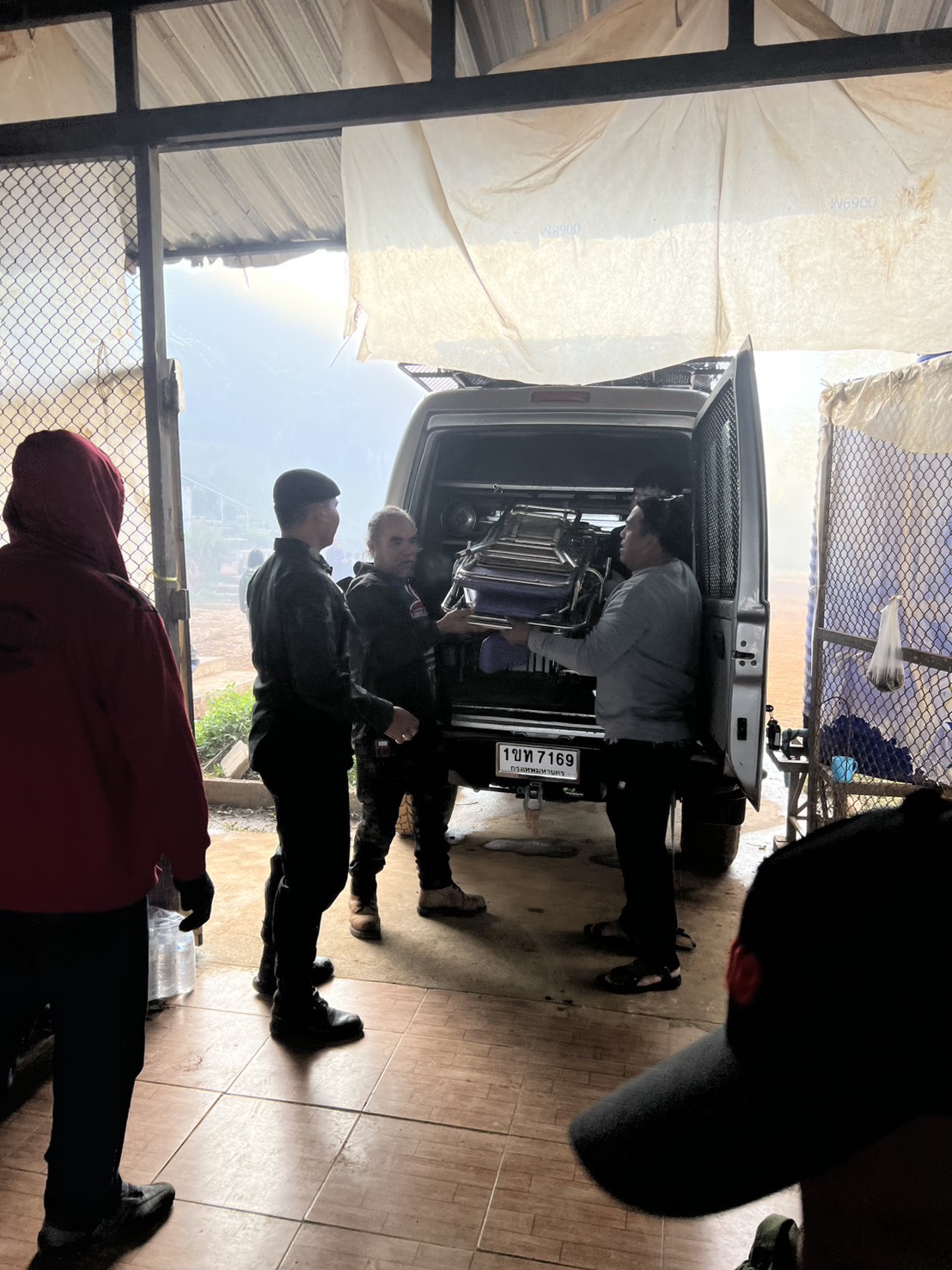 เมื่อ 301200 พ.ย.68 ด.ต.พงษ์สิน โชยรัมย์ จนท.พยาบาล ร้อย ตชด.344 พร้อมด้วย ส.ต.ต.วิศนุ ทองนอก ออกเดินทาง ปบ.งานร่วมหน่วยแพทย์ พอ.สว. ประจำปี งบประมาณ 2569 ณ จุดพักนอน โรงเรียนบ้านแม่ระเมิง ตำบลแม่สอง อำเภอท่าสองยาง จังหวัดตาก ระหว่างวันที่ 30 พ.ย.- 5 ธ.ค.68 เวลา 18.00 นนายวินัย เสนน้ำเที่ยง หัวหน้าชุด พอ.สว. ประชุมชี้แจงการ ปบ.งาน โดยมี ทีมแพทย์อาสา จนท.ทันตกรรมฯ รพ.ท่าสองยาง รพ.สต.แม่ระเมิง รพ.สต.บ้านท่าสองยาง ครู สกร.อำเภอท่าสองยาง ออฟโรด 4*4 อิสระ ออฟโรดเหน่งสแตนเลส จนถึงเวลา 19.00 แล้วเสร็จ
