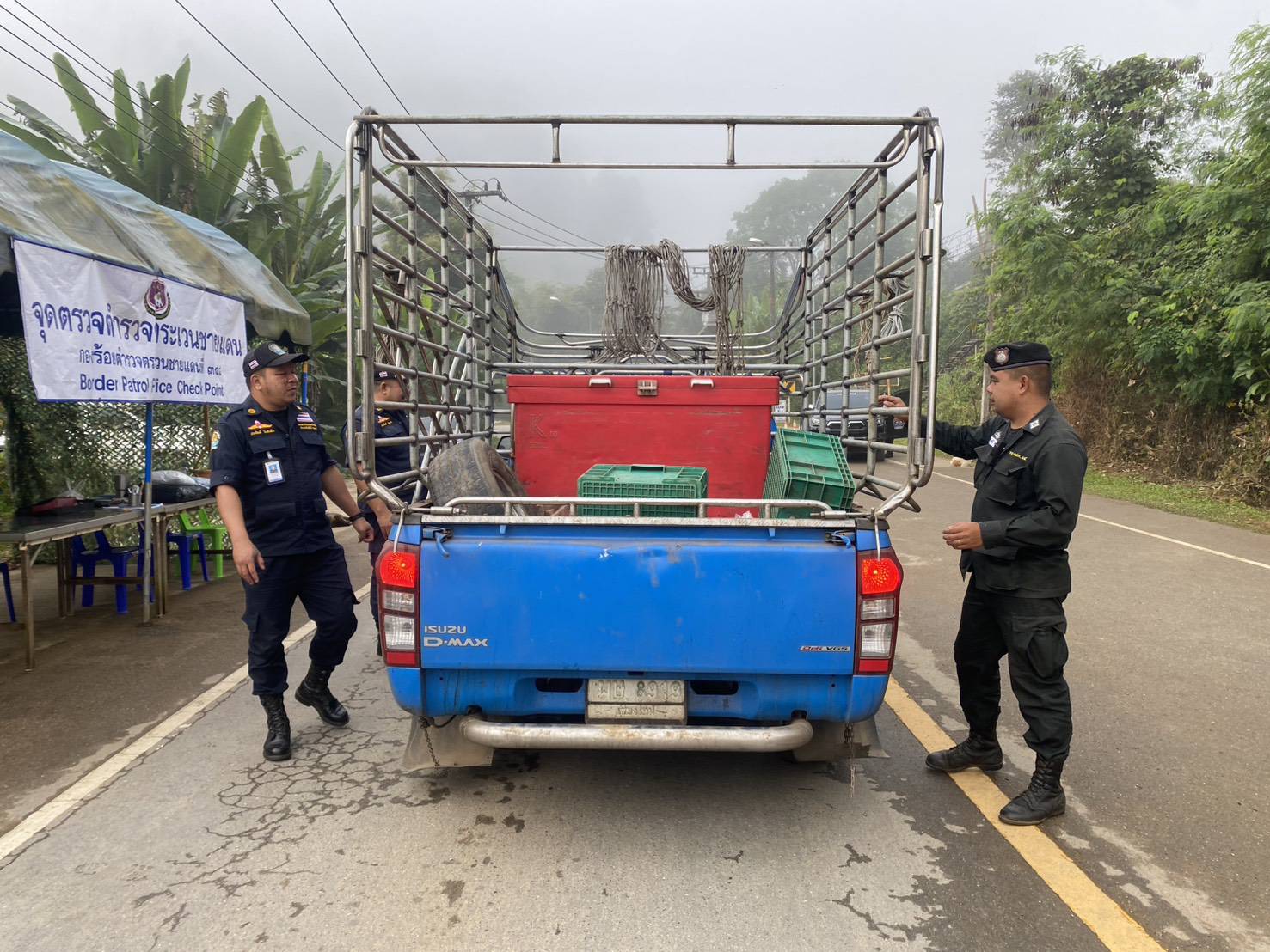 เมื่อ 080800-090759 ธ.ค.68 ชฝต.บ้านแม่อมกิจัด กพ 3 นาย ร่วมกับ เจ้าหน้าที่สารวัตรปศุสัตว์ จ.ลพบุรี ทำการตั้งจุดตรวจ-จุดสกัด บนทางหลวงหมายเลข 105 (แม่สอด-แม่สะเรียง) บริเวณหน้าจุดตรวจบ้านแม่อมกิ ม.4 ต.แม่วะหลวง อ.ท่าสองยาง จ.ตาก เพื่อป้องกันปราบปรามอาชญากรรมสำคัญ การลักลอบลำเลียงยาเสพติด สารตั้งต้นและเคมีภัณฑ์,การปราบปรามคนร้ายข้ามชาติและเข้าเมืองโดยผิดกฎหมาย ป้องกันและควบคุมการลักลอบเคลื่อนย้ายสัตว์และซากสัตว์ ประชาสัมพันธ์ให้ประชาชนได้รับทราบ