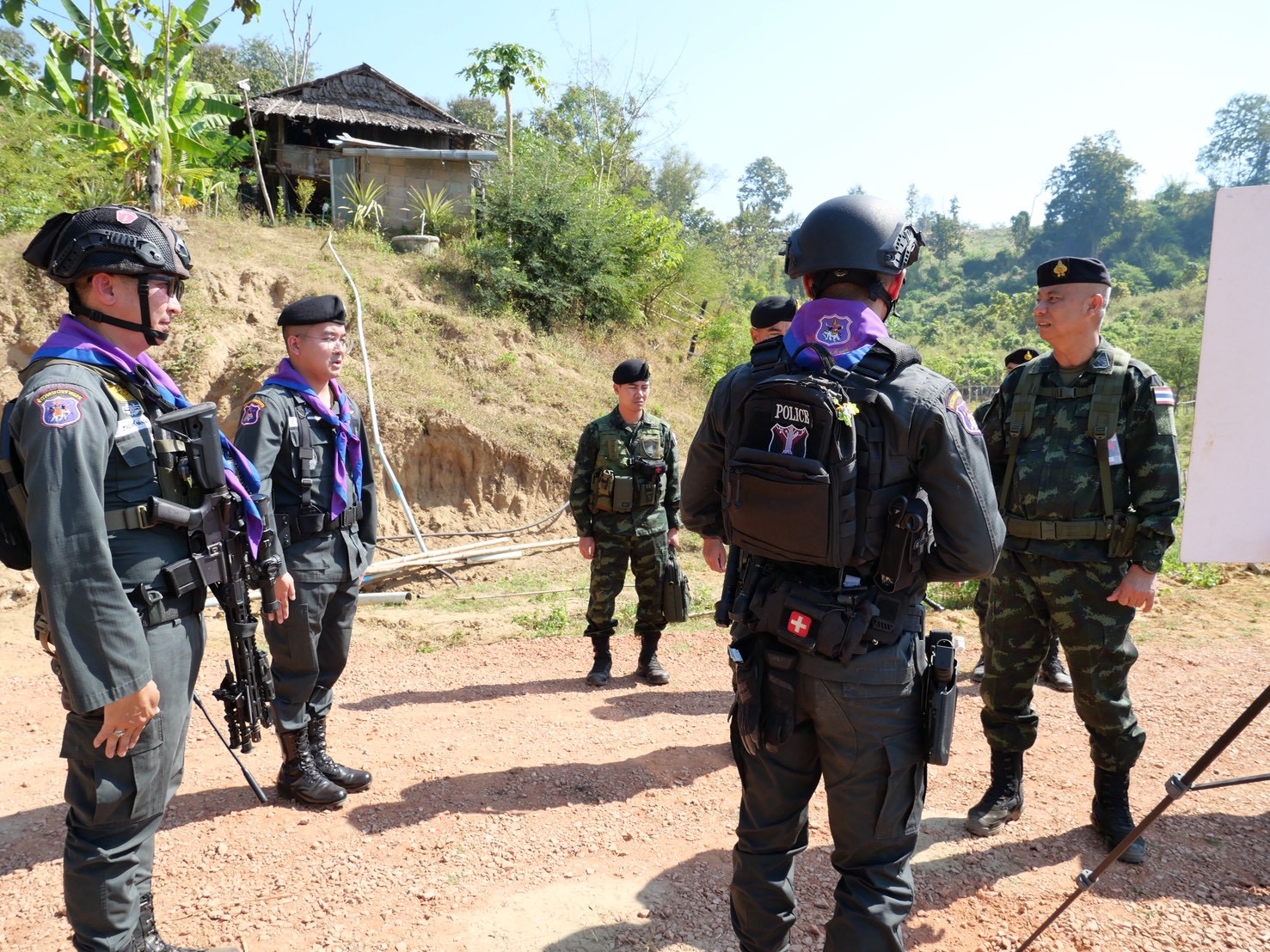- เวลา 10.30 - 11.50 น. ได้เดินทางมาตรวจเยี่ยม มว.ตชด.3442 (ฐานปฏิบัติการบ้านแม่หละยาง) พบ ว่าที่ ร.ต.ท.ธนพนธ์ บุญสุข ผบ.มว.ตชด.3442 พร้อมกำลังพลให้การต้อนรับ พร้อมตรวจท่าข้ามในพื้นที่รับผิดชอบ พร้อมรับฟังบรรยายสรุปสถานการณ์ในพื้นที่