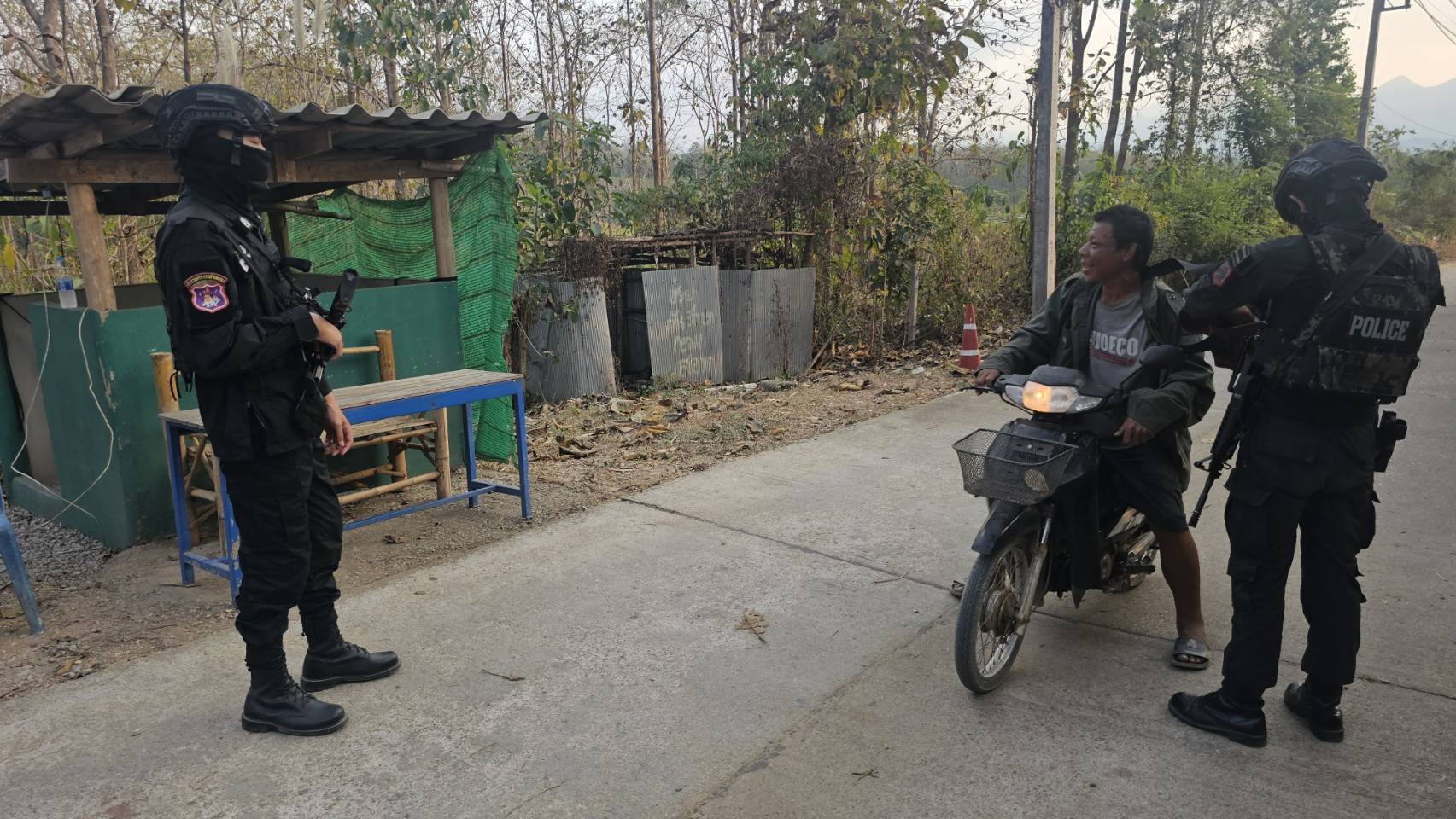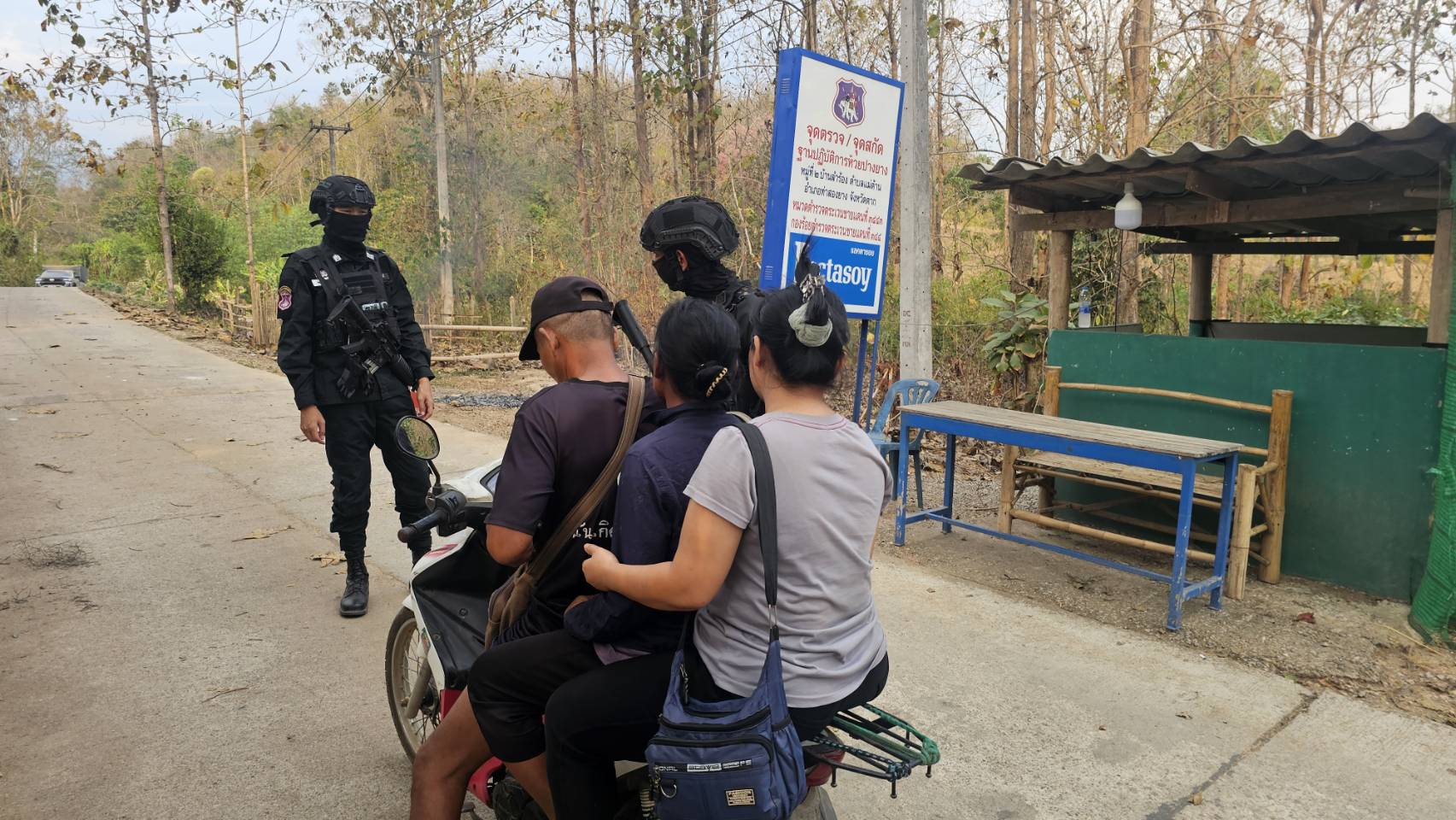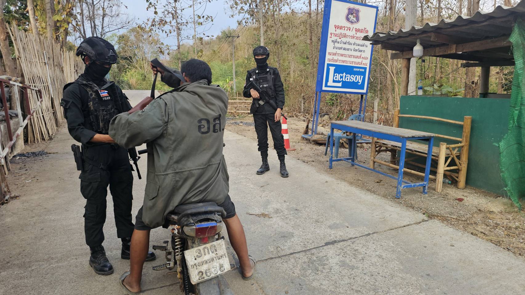 เมื่อ 241600 ก.พ. 69 มว.ตชด.3443 จัด กพ. 1 ชป. ตั้งจุดตรวจ/จุดสกัด บริเวณหน้าฐาน ปบ.ห้วยปางยาง ม.2 ต.แม่ต้าน อ.ท่าสองยาง จว.ตาก เพื่อ ตรวจสอบ /ป้องกัน /ป้องปราม การลักลอบนําเข้า - ส่งออก ของโค ,สุกร ,พืชผลทางการเกษตร ,แรงงานต่างด้าว ,เฝ้าระวังการรุกล้ำอธิปไตย ของ กกล. ต่างชาติ และการกระทำผิดตาม พรบ. ที่มีโทษทางอาญา ตรวจสอบเครือข่ายแก็งคอลเซ็นเตอร์ฯ เพื่อป้องกันการลักลอบเข้า/ออกราชอาณาจักรโดยผิดกฎหมาย การลักลอบขนน้ำมันเชื้อเพลิงออกนอกราชอาณาจักร ป้องกันการลักลอบลำเลียงยาเสพติด สารตั้งต้น และเคมีภัณฑ์