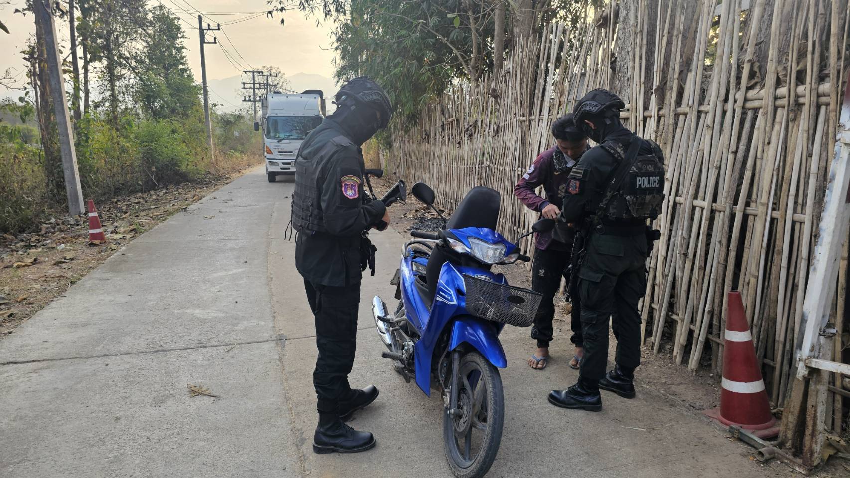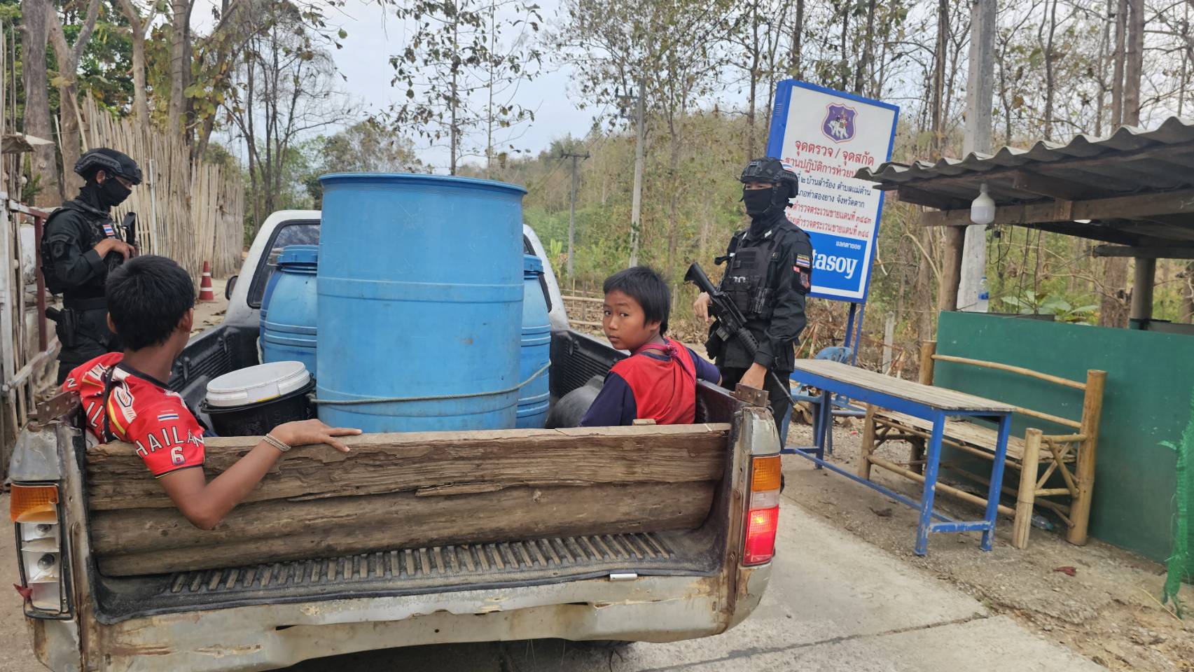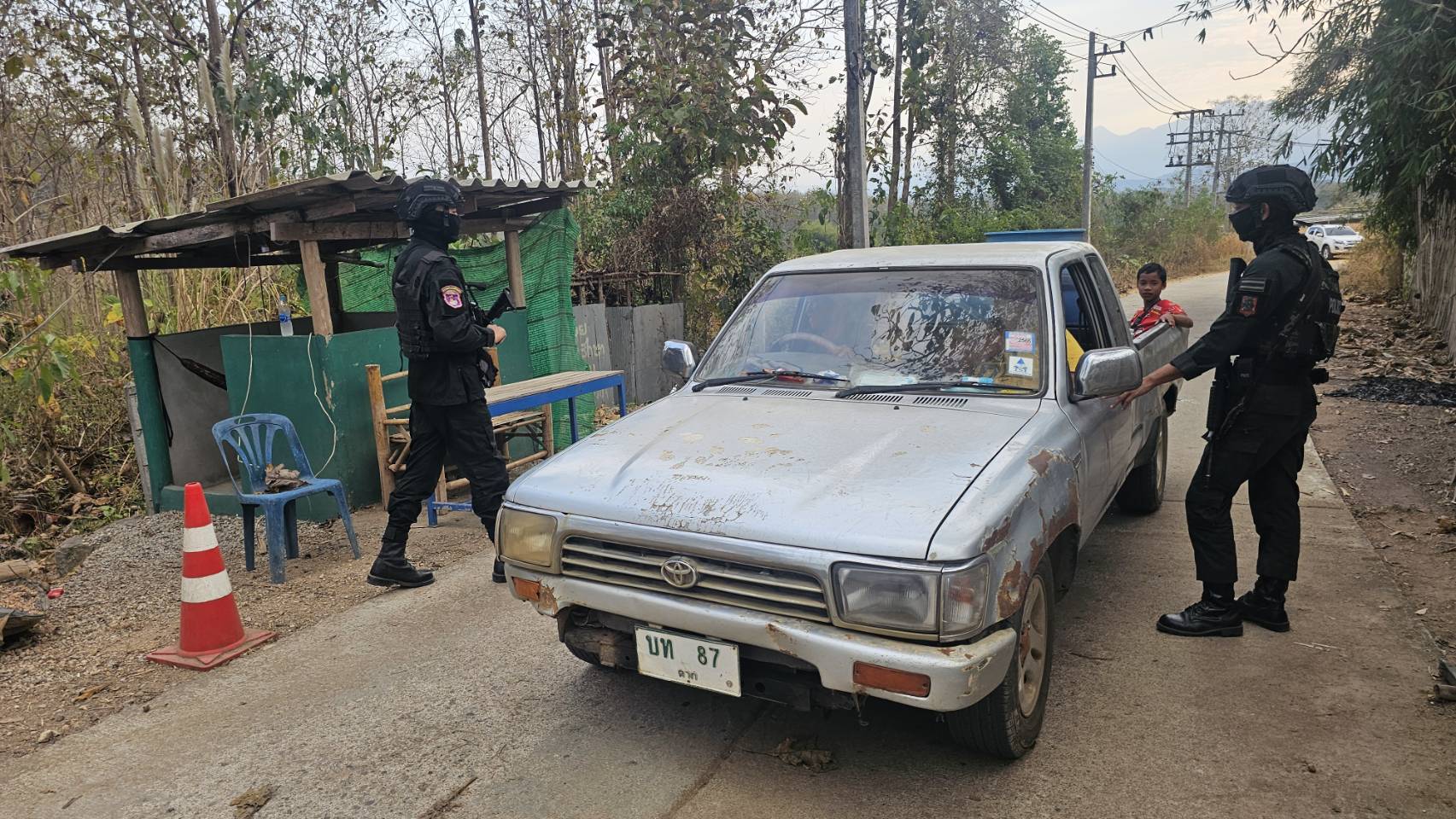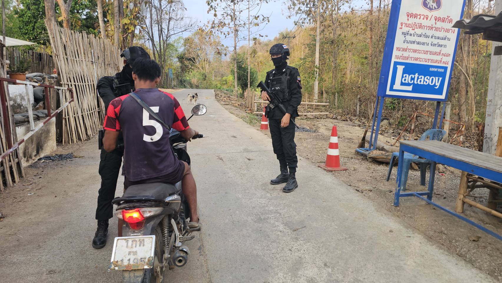 เมื่อ 241600 ก.พ. 69 มว.ตชด.3443 จัด กพ. 1 ชป. ตั้งจุดตรวจ/จุดสกัด บริเวณหน้าฐาน ปบ.ห้วยปางยาง ม.2 ต.แม่ต้าน อ.ท่าสองยาง จว.ตาก เพื่อ ตรวจสอบ /ป้องกัน /ป้องปราม การลักลอบนําเข้า - ส่งออก ของโค ,สุกร ,พืชผลทางการเกษตร ,แรงงานต่างด้าว ,เฝ้าระวังการรุกล้ำอธิปไตย ของ กกล. ต่างชาติ และการกระทำผิดตาม พรบ. ที่มีโทษทางอาญา ตรวจสอบเครือข่ายแก็งคอลเซ็นเตอร์ฯ เพื่อป้องกันการลักลอบเข้า/ออกราชอาณาจักรโดยผิดกฎหมาย การลักลอบขนน้ำมันเชื้อเพลิงออกนอกราชอาณาจักร ป้องกันการลักลอบลำเลียงยาเสพติด สารตั้งต้น และเคมีภัณฑ์