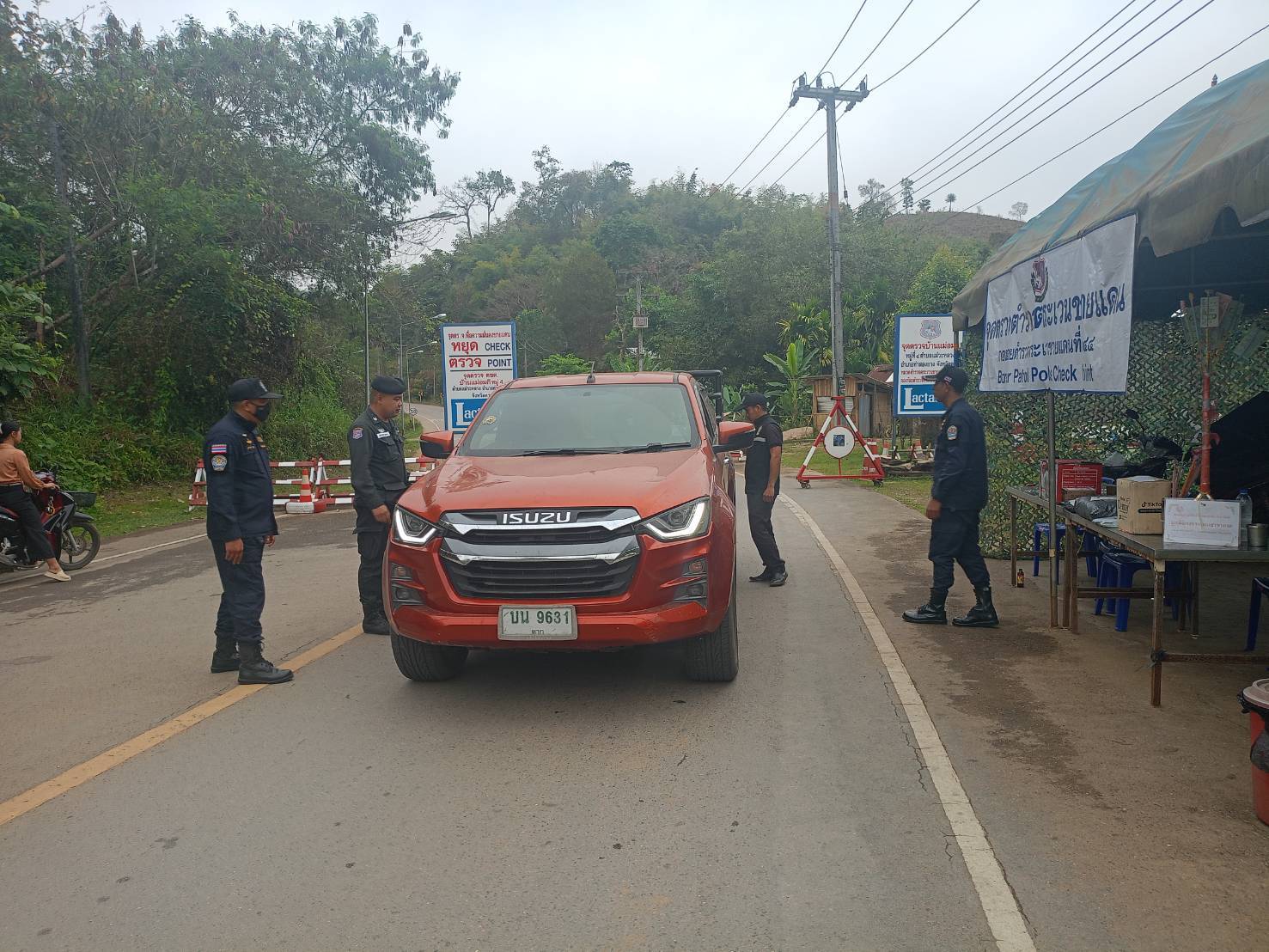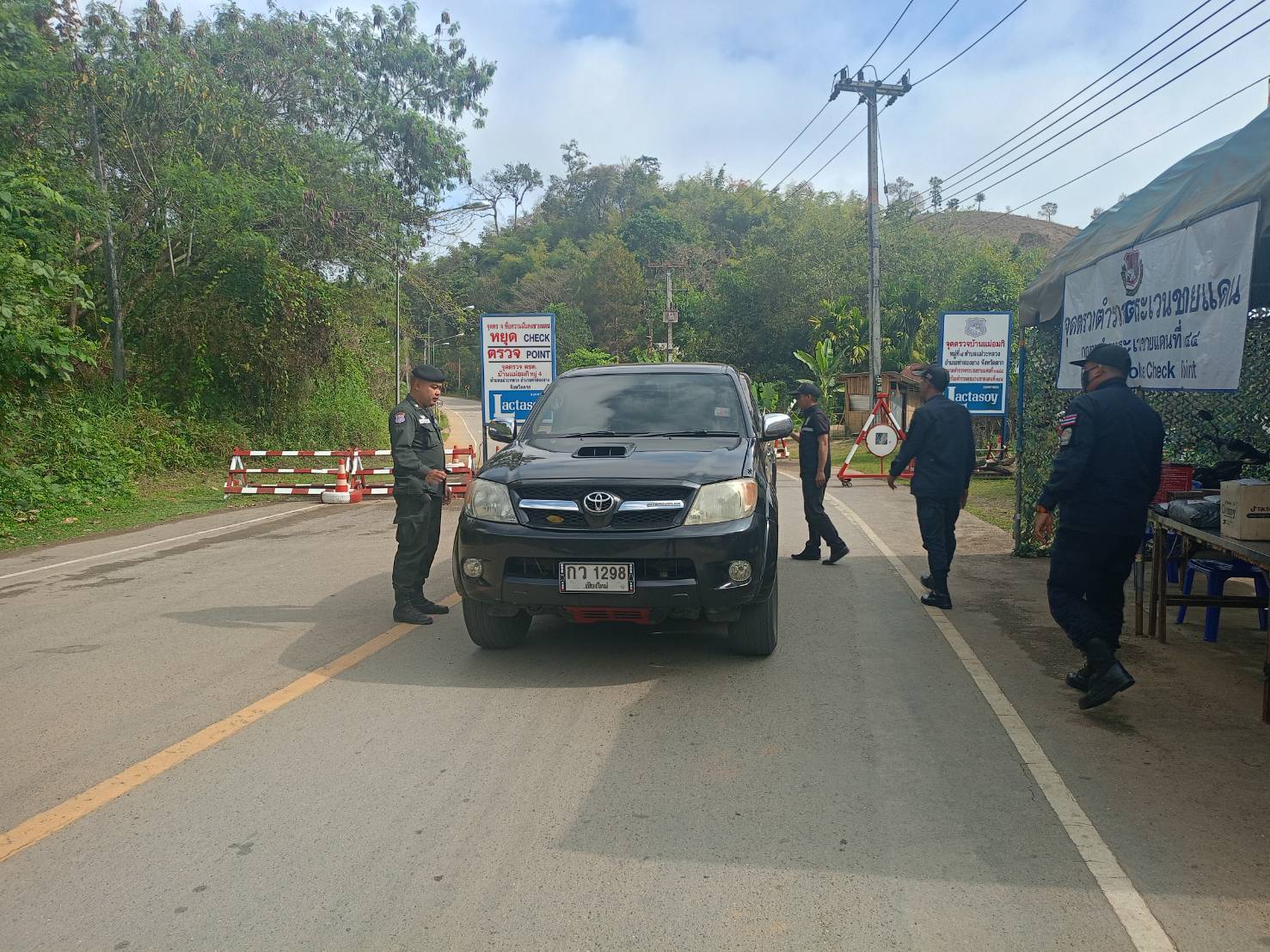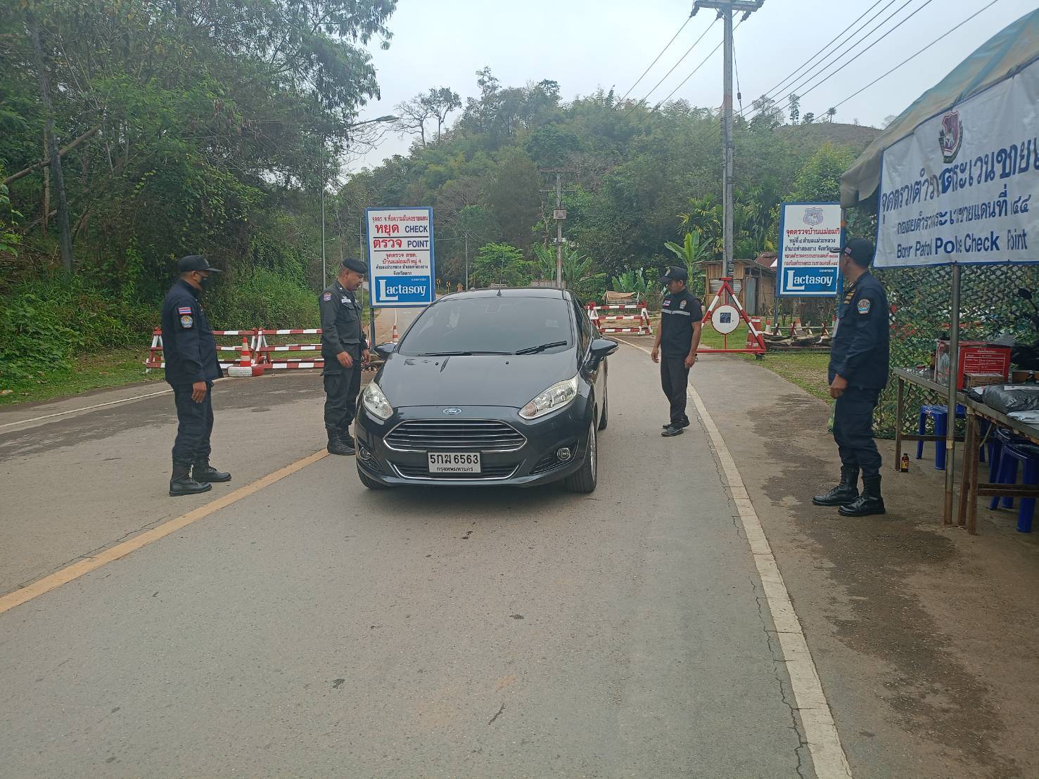 เมื่อ 260800 - 270759 ก.พ. 69 ชฝต.บ้านแม่อมกิจัด กพ.3 นาย ร่วมกับ เจ้าหน้าที่สารวัตรปศุสัตว์ จ.จันทบุรี ทำการตั้งจุดตรวจ-จุดสกัด บนทางหลวงหมายเลข 105 (แม่สอด-แม่สะเรียง) บริเวณหน้าจุดตรวจบ้านแม่อมกิ ม.4 ต.แม่วะหลวง อ.ท่าสองยาง จ.ตาก เพื่อป้องกันปราบปรามอาชญากรรมสำคัญ การลักลอบลำเลียงยาเสพติด สารตั้งต้นและเคมีภัณฑ์,การปราบปรามคนร้ายข้ามชาติและเข้าเมืองโดยผิดกฎหมาย ป้องกันและควบคุมการลักลอบเคลื่อนย้ายสัตว์และซากสัตว์ ประชาสัมพันธ์ให้ประชาชนได้รับทราบ