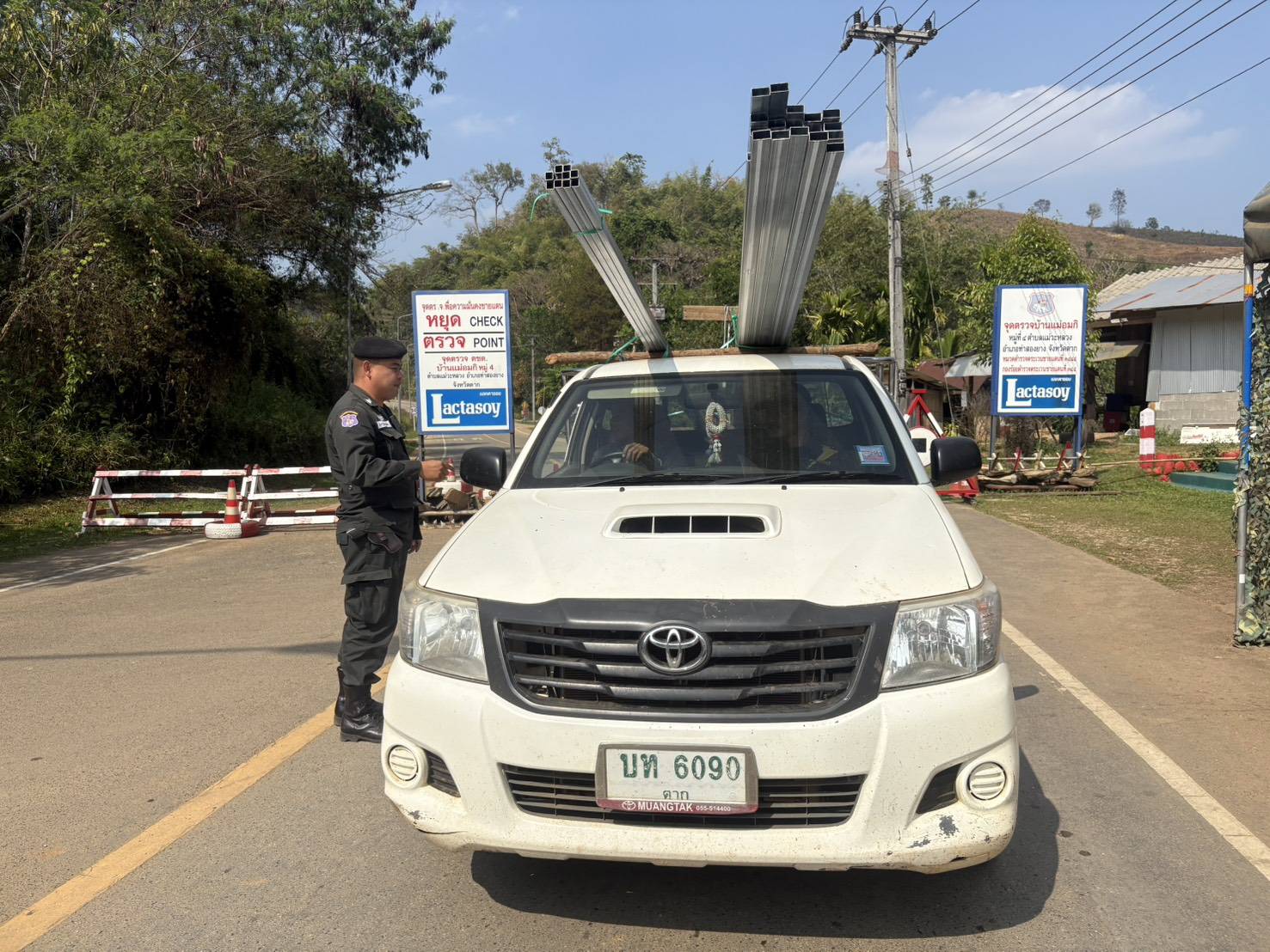 เมื่อ 280800 - 010759 มี.ค.69 ชฝต.บ้านแม่อมกิจัด กพ. 3 นายทำการตั้งจุดตรวจ-จุดสกัด บนทางหลวงหมายเลข 105 (แม่สอด-แม่สะเรียง) บริเวณหน้าจุดตรวจบ้านแม่อมกิ ม.4 ต.แม่วะหลวง อ.ท่าสองยาง จ.ตาก เพื่อป้องกันปราบปรามอาชญากรรมสำคัญ การลักลอบลำเลียงยาเสพติด สารตั้งต้นและเคมีภัณฑ์,การปราบปรามคนร้ายข้ามชาติและเข้าเมืองโดยผิดกฎหมาย ป้องกันและควบคุมการลักลอบเคลื่อนย้ายสัตว์และซากสัตว์ ประชาสัมพันธ์ให้ประชาชนได้รับทราบ