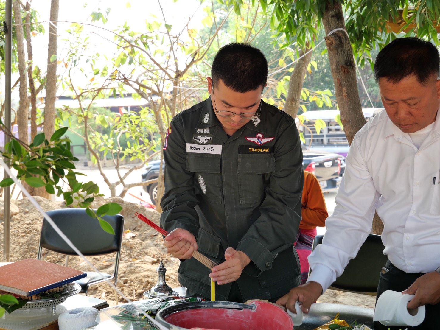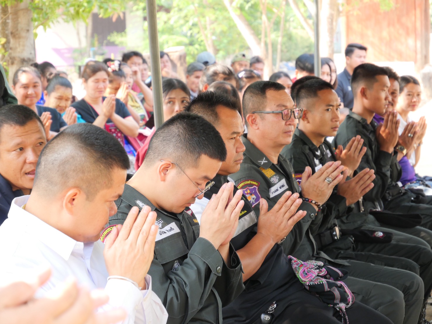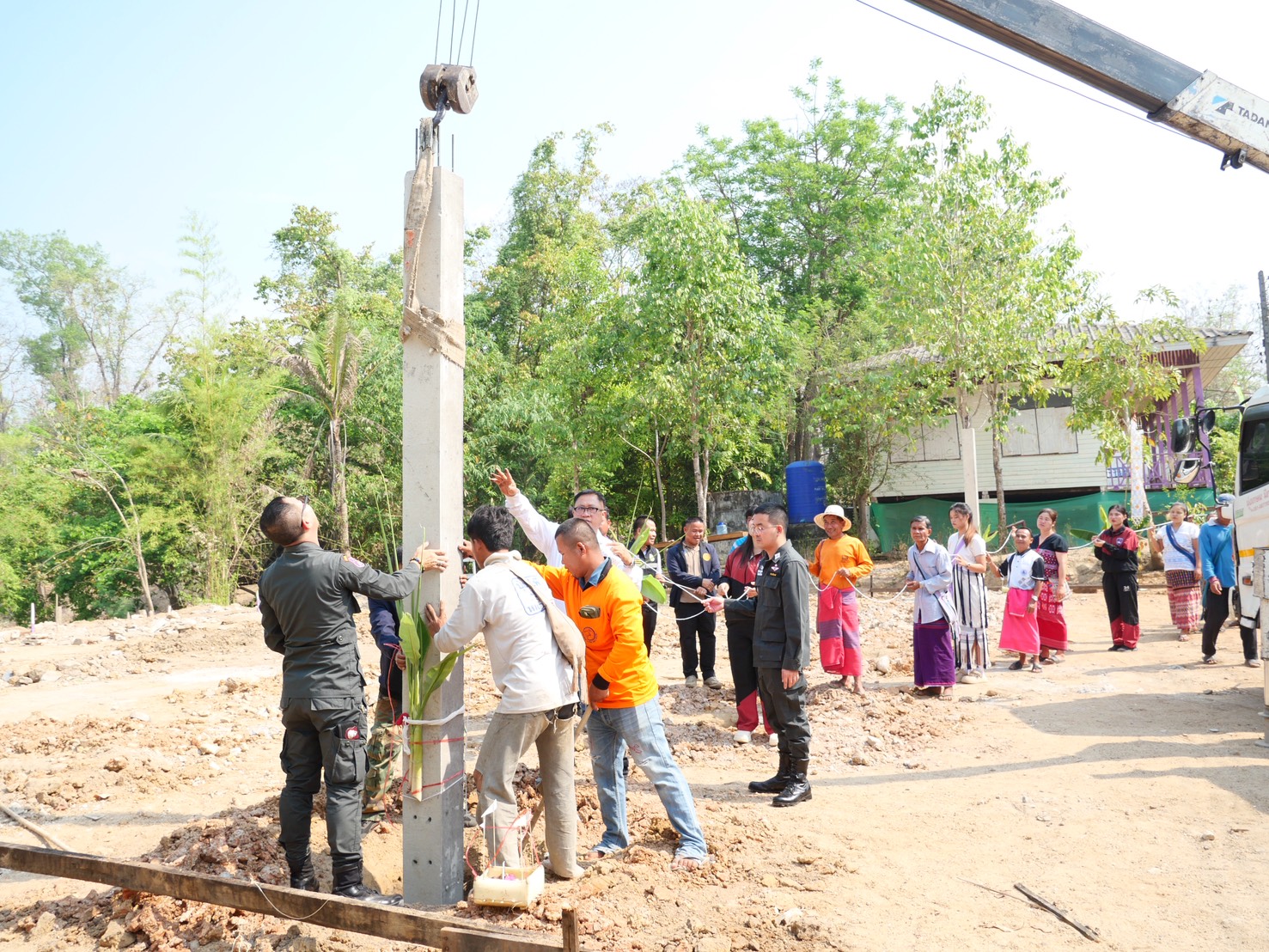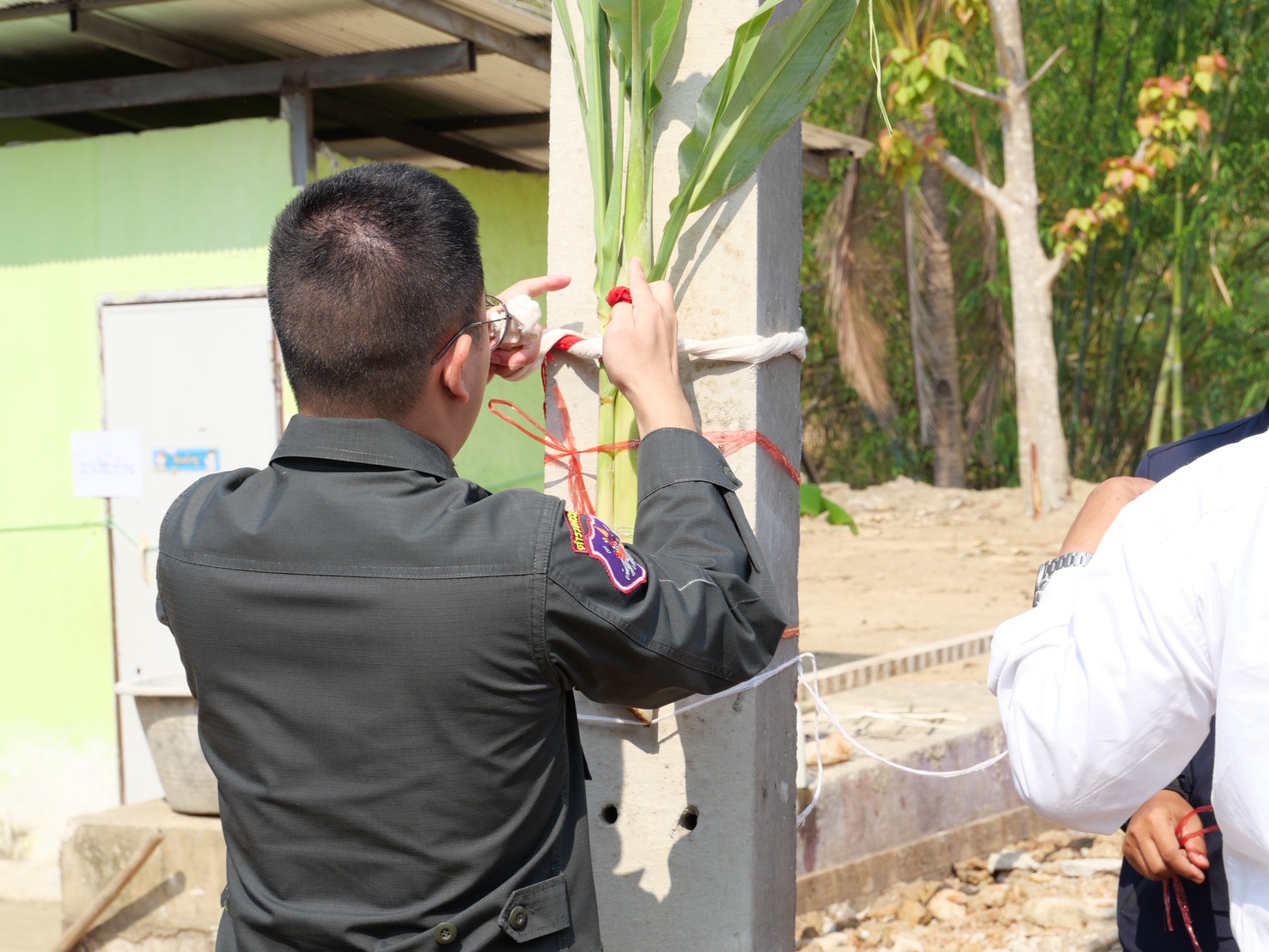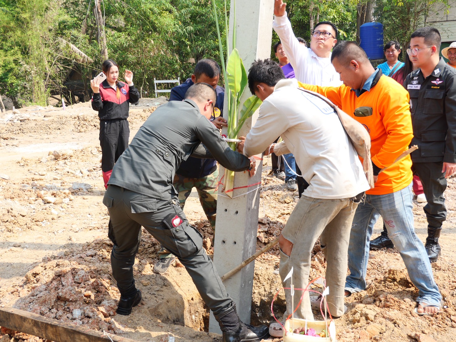 พ.ต.ต.พัชรพล อินเตจ๊ะ ผบ.ร้อย ตชด.344 พร้อมด้วยกำลังพล มว.ตชด.3442 รวม 4 นายได้เดินทางเข้าร่วมพิธีตั้งเสาสร้างโรงอาหาร รร.ตชด.จุฬา-ธรรมศาสตร์ 3