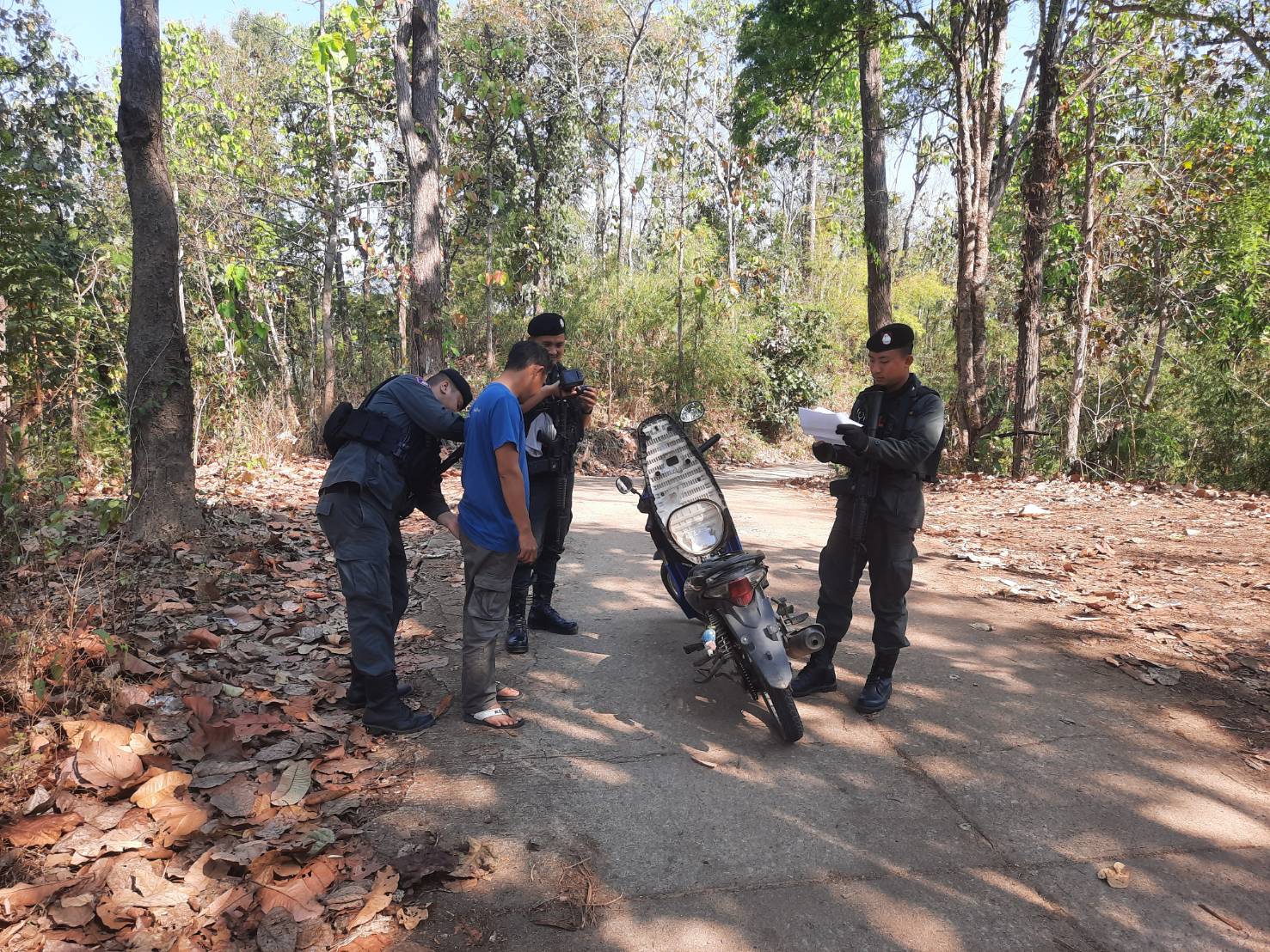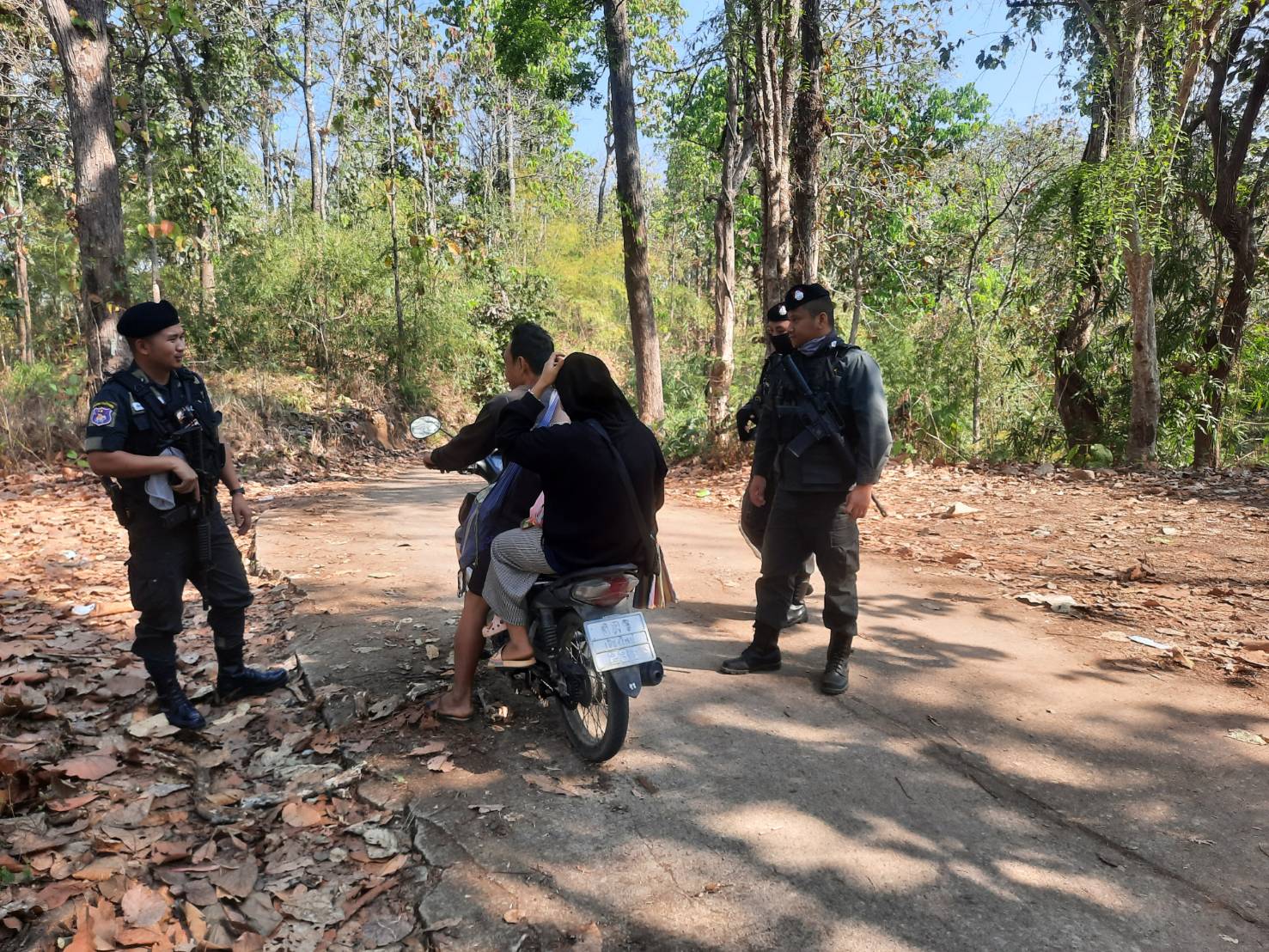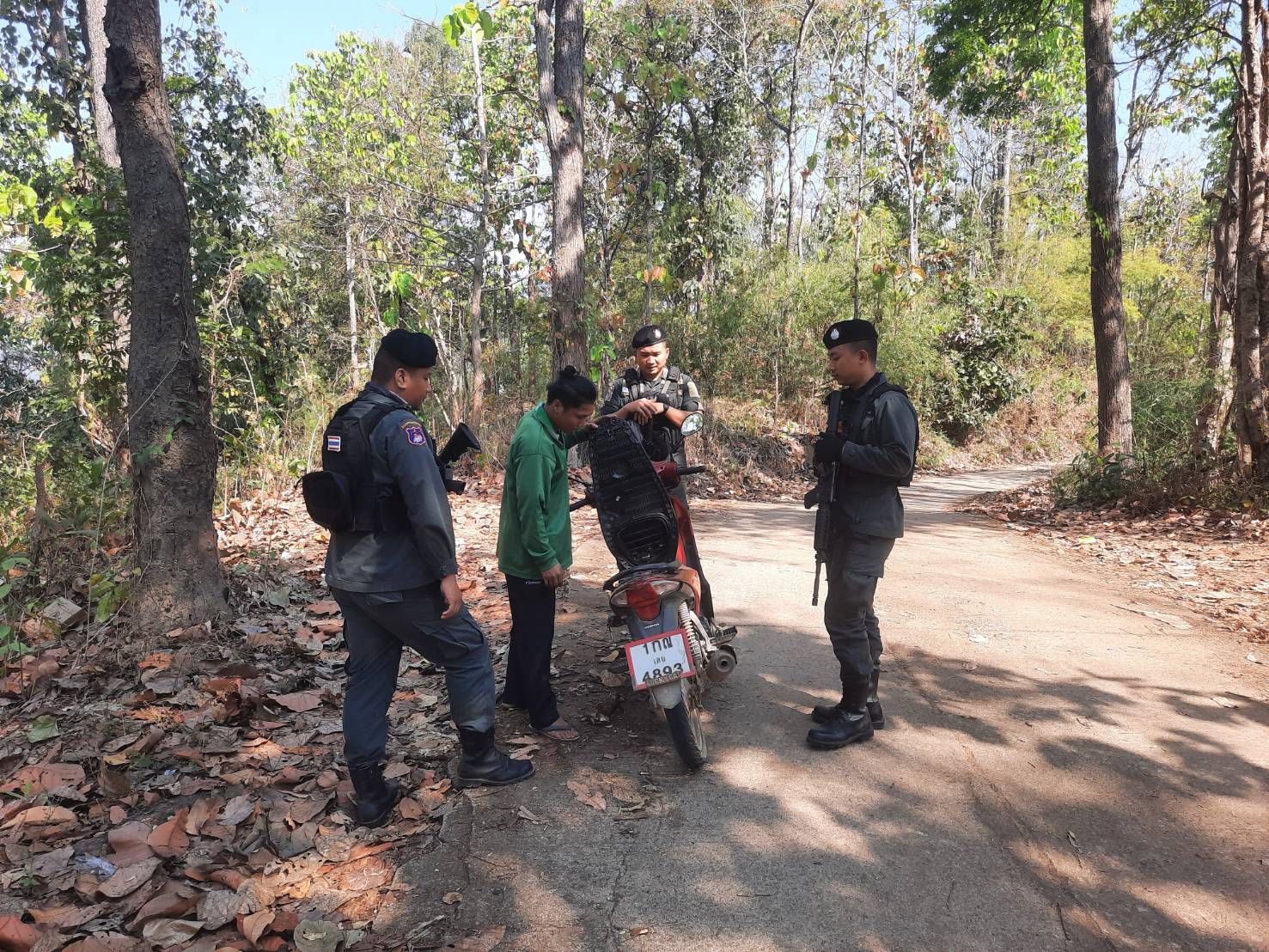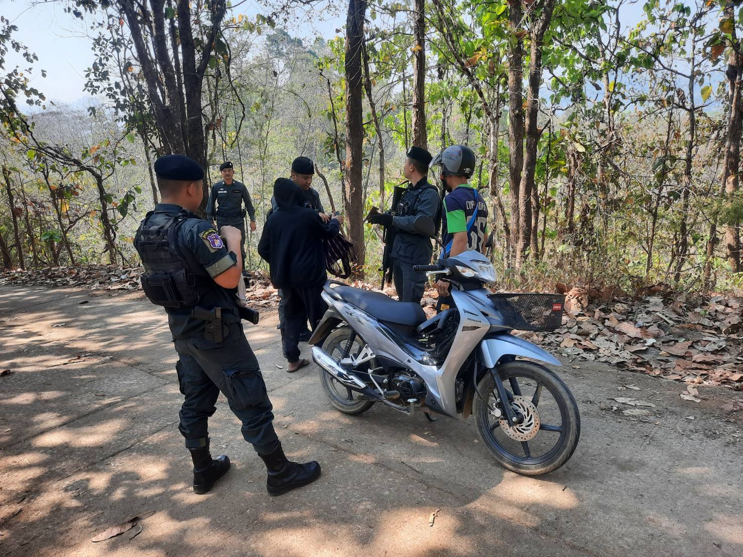 เมื่อ 180930 มี.ค.69 มว.ตชด.3444 จัดให้ จ.ส.ต.เอกชัย คำสินธุ์ พร้อม กพ. ใน มว.ฯ รวม 5 นาย ตั้งจุดตรวจ/จุดสกัด ในพื้นที่เส้นทางรอง พื้นที่สุ่มเสี่ยงล่อแหลม เพื่อป้องกัน สกัดกั้น การกระทำผิดกฎหมายตาม พ.ร.บ.ที่มีโทษทางอาญา ตรวจสอบป้องกันควบคุมการลักลอบเคลื่อนย้ายสัตว์ ซากสัตว์ ตรวจสอบเครือข่ายแก๊งคอลเซ็นเตอร์ เพื่อป้องกันการลักลอบ เข้า-ออก ราชอาณาจักรโดยผิดกฎหมาย ป้องกันการลักลอบลำเลียงยาเสพติด สารตั้งต้น เคมีภัณฑ์ ปราบปรามการค้าอาวุธสงคราม อาวุธปืนผิดกฎหมาย และการโจรกรรมรถข้ามแดน บริเวณถนนทางเข้าหมู่บ้านเชียงแก้ว หมู่ 8 ต.แม่อุสุ อ.ท่าสองยาง จ.ตาก