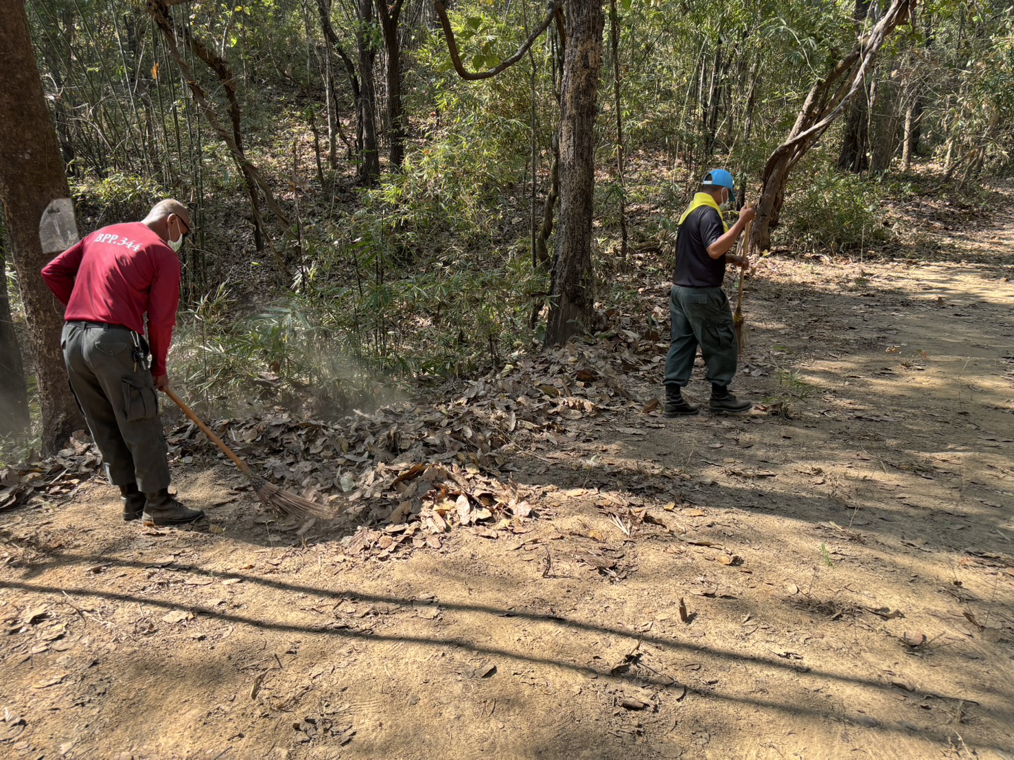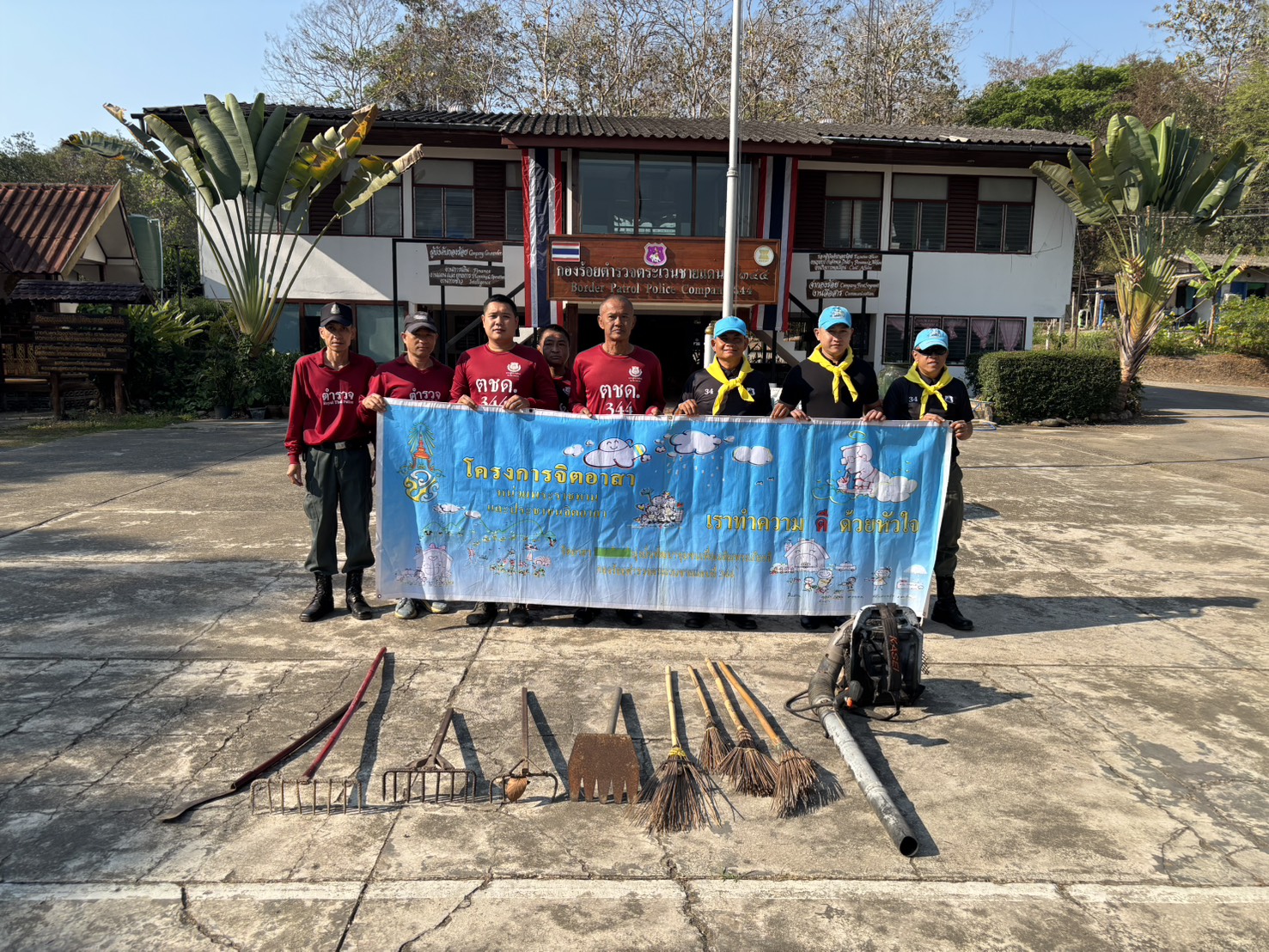 เมื่อ 20 มี.ค.69 เวลา 09.00 - 11.00 น. พ.ต.ต.พัชรพล อินเตจ๊ะ ผบ.ร้อย ตชด.344 จัดกำลังพลชุดจิตอาสาและชุดช่วยเหลือผู้ประสพภัย ร้อย ตชด.344 จำนวน 12 นาย ร่วมทำแนวกันไฟรอบบริเวณ กองร้อย ตชด.344 หมู่ 1 ต.แม่ต้าน อ.ท่าสองยาง จว.ตาก เนื่องจากช่วงนี้เป็นฤดูร้อนเพื่อป้องกันเหตุไฟไหม้ที่จะเกิดขึ้นในบริเวณกองร้อยและบ้านพักข้าราชการตำรวจ ระยะทางประมาณ 2 กม.