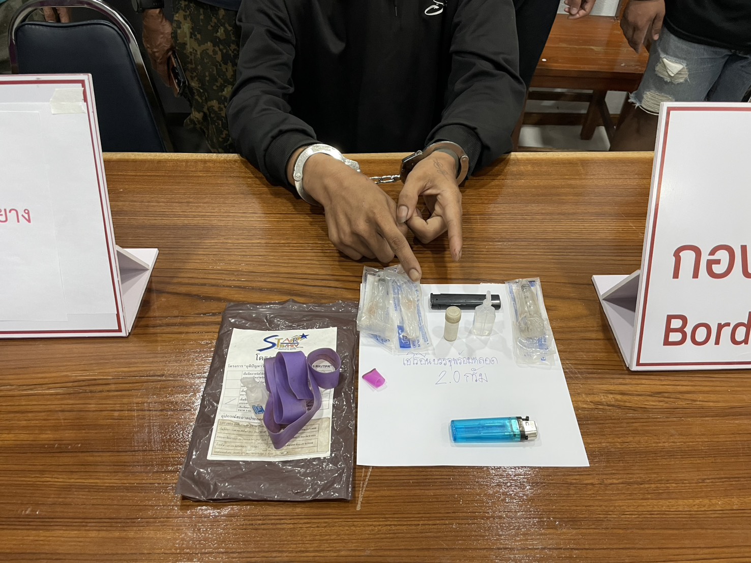 ภายใต้การอำนวยการของ พ.ต.อ.สุระสิทธิ์ สกุลพานิช ผกก.ตชด.34, พ.ต.ต.พัชรพล อินเตจ๊ะ ผบ.ร้อย ตชด.344 สั่งการให้ จนท.ชปข.ร้อย ตชด.344 นำโดย ร.ต.ท.สมจิตต์ สายชลคีรี พร้อม จนท.ชปข.ร้อย ตชด.344 รวม 5 นาย ร่วมกับ สภ.ท่าสองยาง ร่วมกันจับกุม นายบรรจบ อภิวาทนรศรี อายุ 21 ปี ที่อยู่ 27 ม.5 ต.แม่ต้าน อ.ท่าสองยาง จ.ตาก