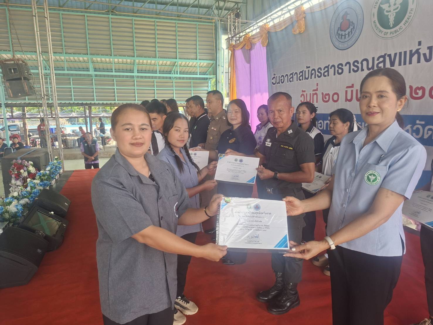 เมื่อ 260900 มี.ค. 69 พ.ต.ต.พัชรพล อินเตจ๊ะ ผบ. ร้อย ตชด. 344 มอบหมายให้ ร.ต.อ.มิตร สมหมาย รอง สว.(ป) กก. ตชด.34 เดินทางเข้าร่วมงาน อสม. แห่งชาติประจำปี 2569 ของ อ.ท่าสองยาง โดยมี นพ.นครินทร์ โสมาบุตร นพ.สสจ.ตาก เป็นประธานในพิธีและมีนายปรีดา ฟุ้งตระกูลชัย นายอำเภอท่าสองยาง พร้อมหัวหน้าส่วนราชการ อ.ท่าสองยาง เข้ารวมพีธีมี อสม ทั้ง 6 ตำบล ของ อ.ท่าสองยาง รวม 700 คน ณ.โดมสวนสุขภาพเทศบาล ต.แม่ต้าน