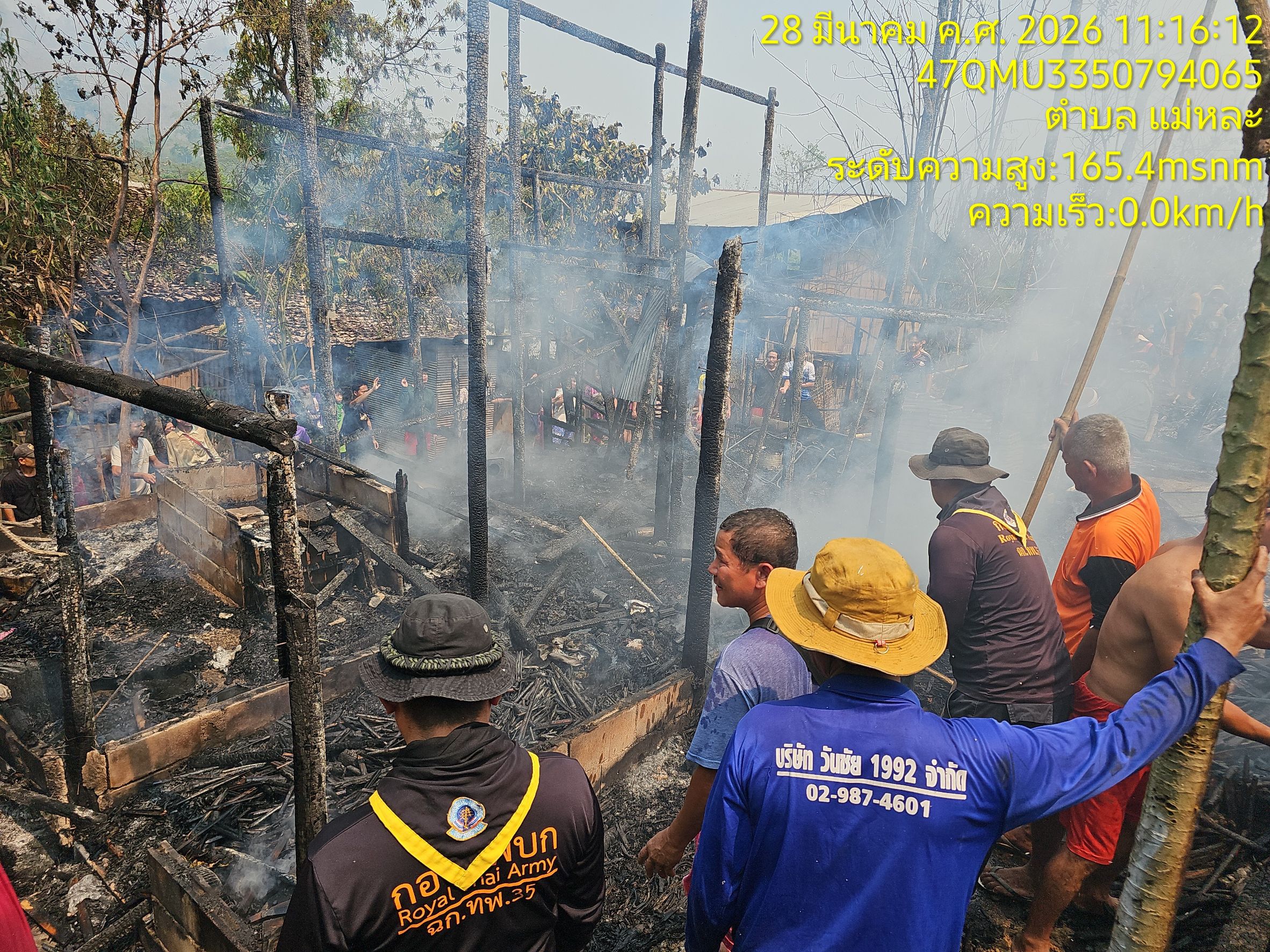 เมื่อ 281030 มี.ค. 69 มว.ตชด.3442 รายงานเหตุเพลิงไหม้จาก จนท.อส.พื้นที่พักพิง ฯ บ.แม่หละ ว่าเกิดเหตุเพลิงไหม้บ้านบริเวณโซน C 1 BB ตรวจพบบ้านถูกเพลิงไหม้จำนวน 8 หลังคาเรือน ดังนี้